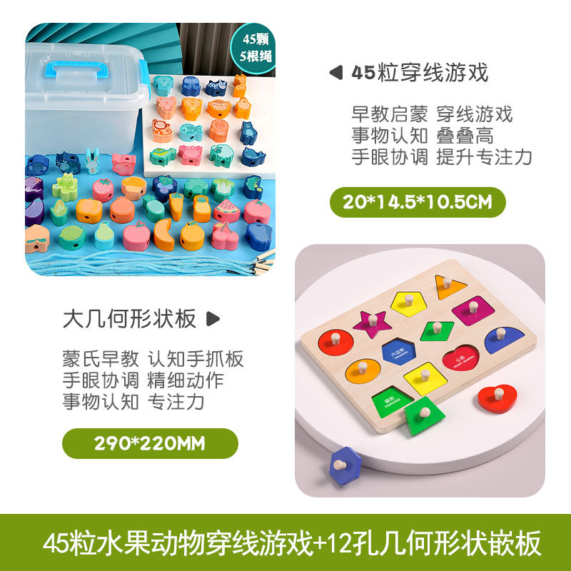 아기 어린이 구슬 훈련 및 집중 아기의 끈 밧줄 1-2 세 3 조기 교육 장난감 빌딩 블록 큰 입자스토어 가기