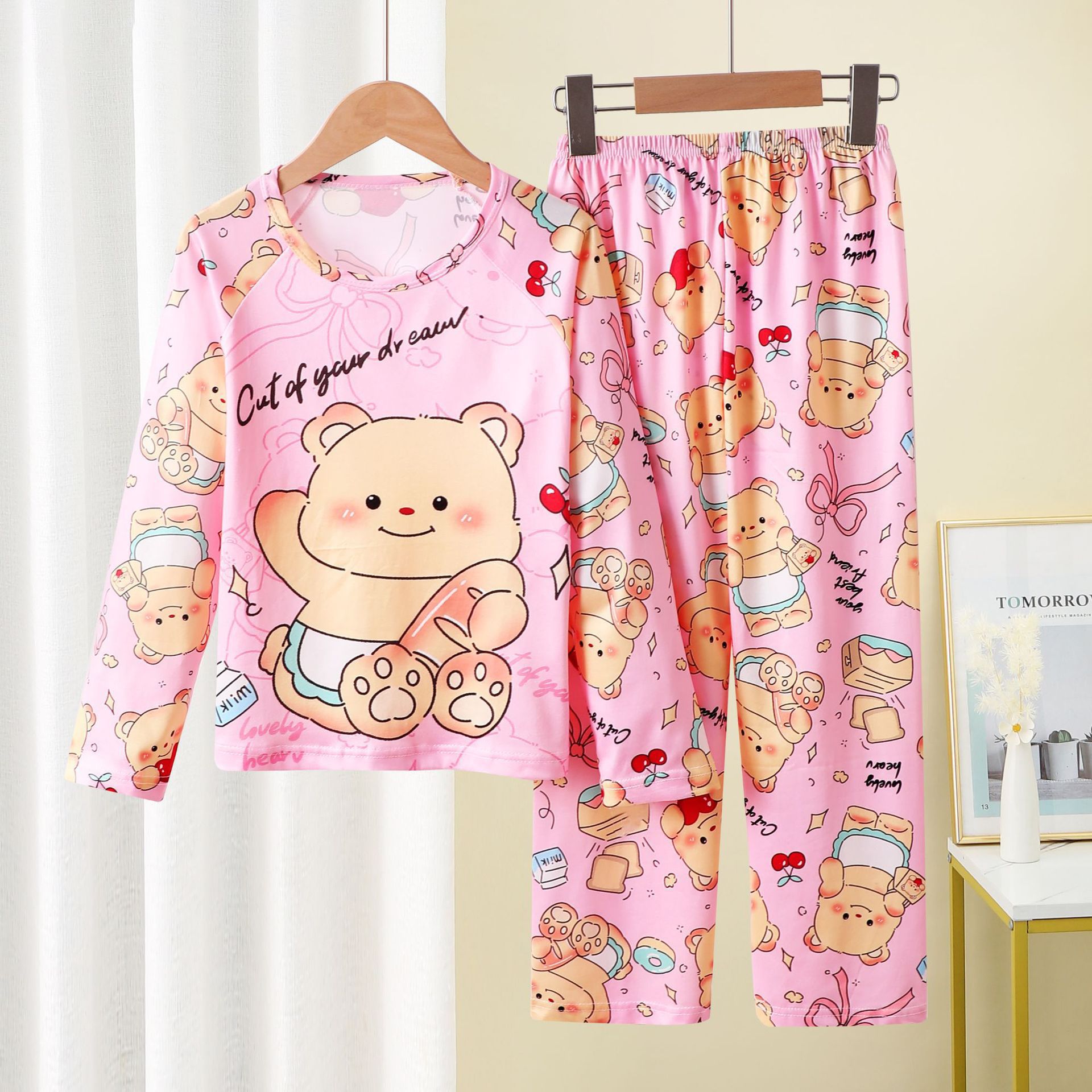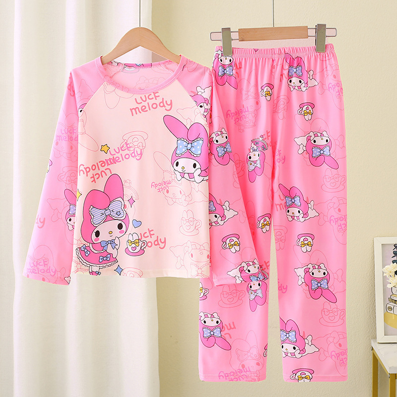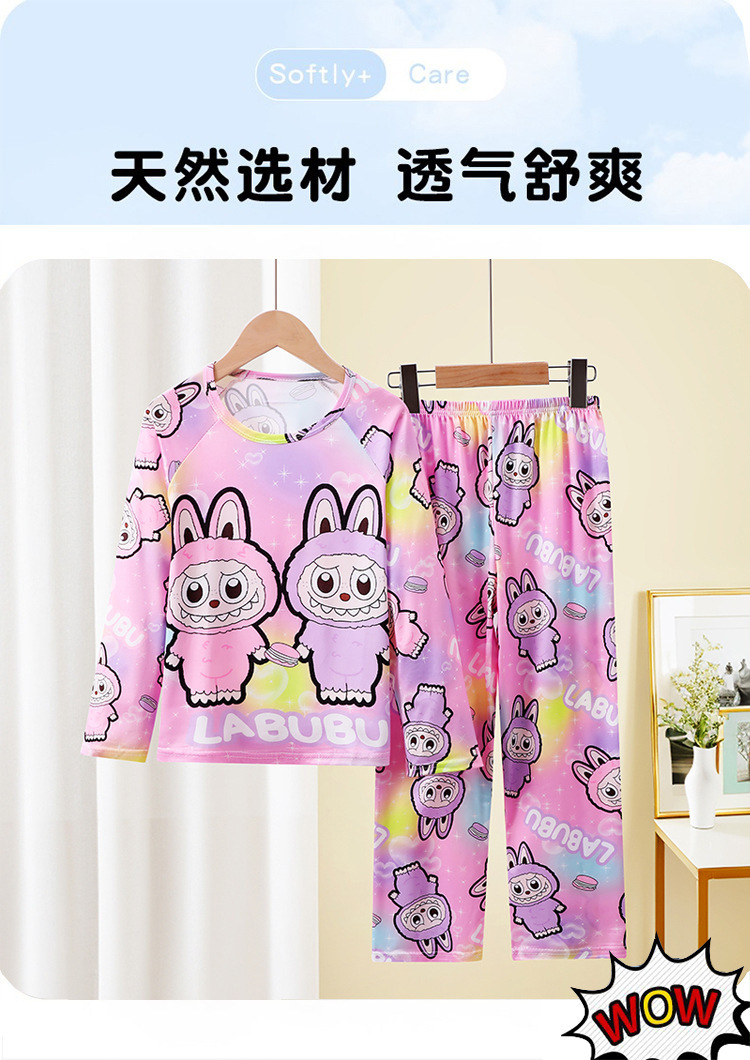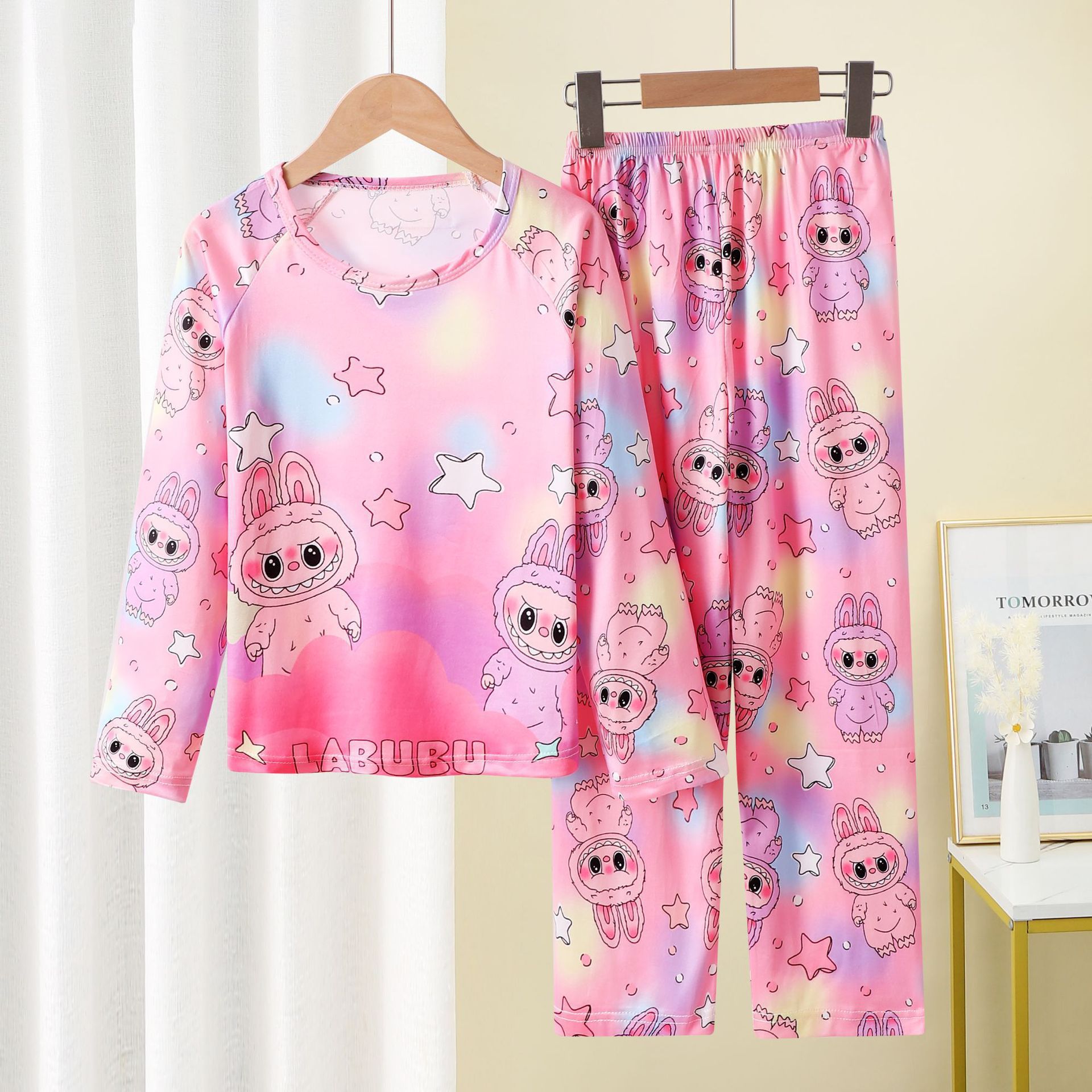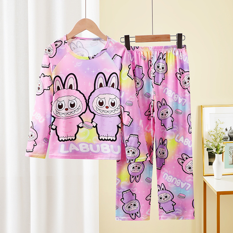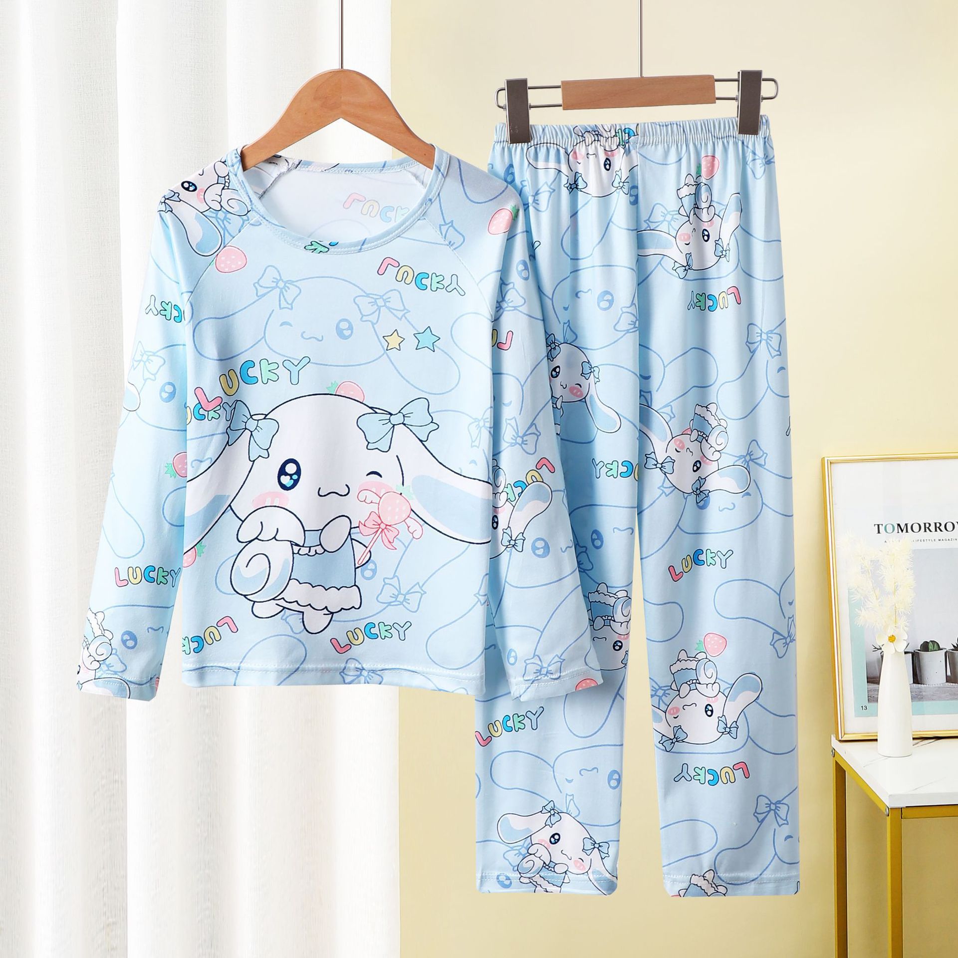 소녀의 봄과 가을 만화 잠옷 둥근 목 풀오버 중년 및 큰 어린이와 아기 소녀의 가을 홈 세트 긴 소매스토어 가기