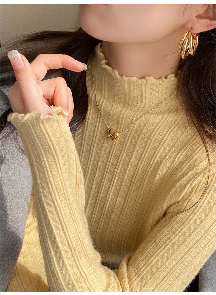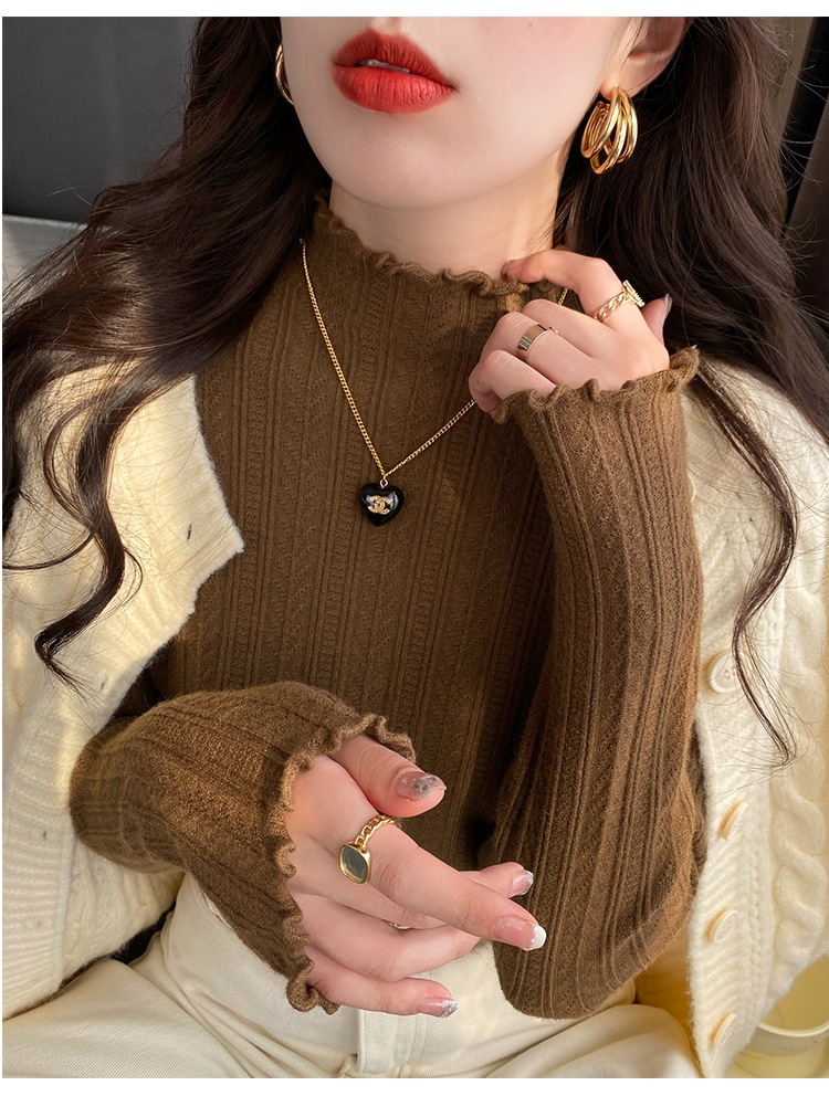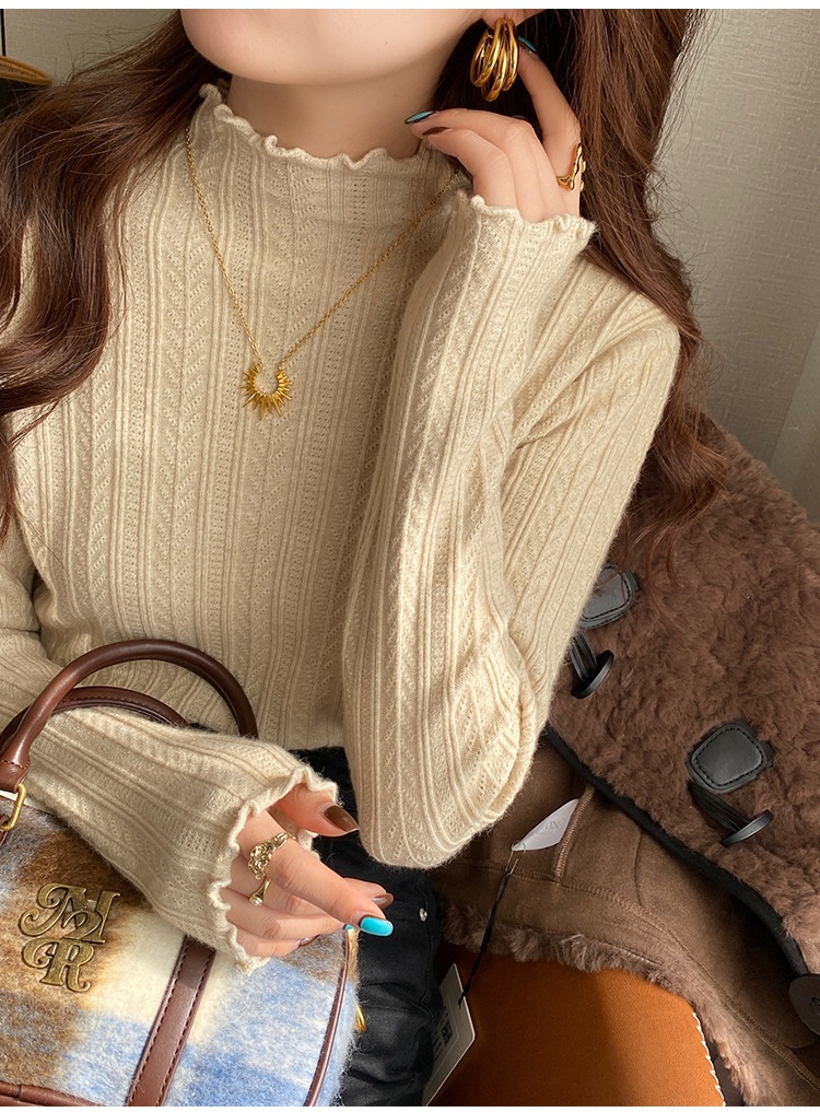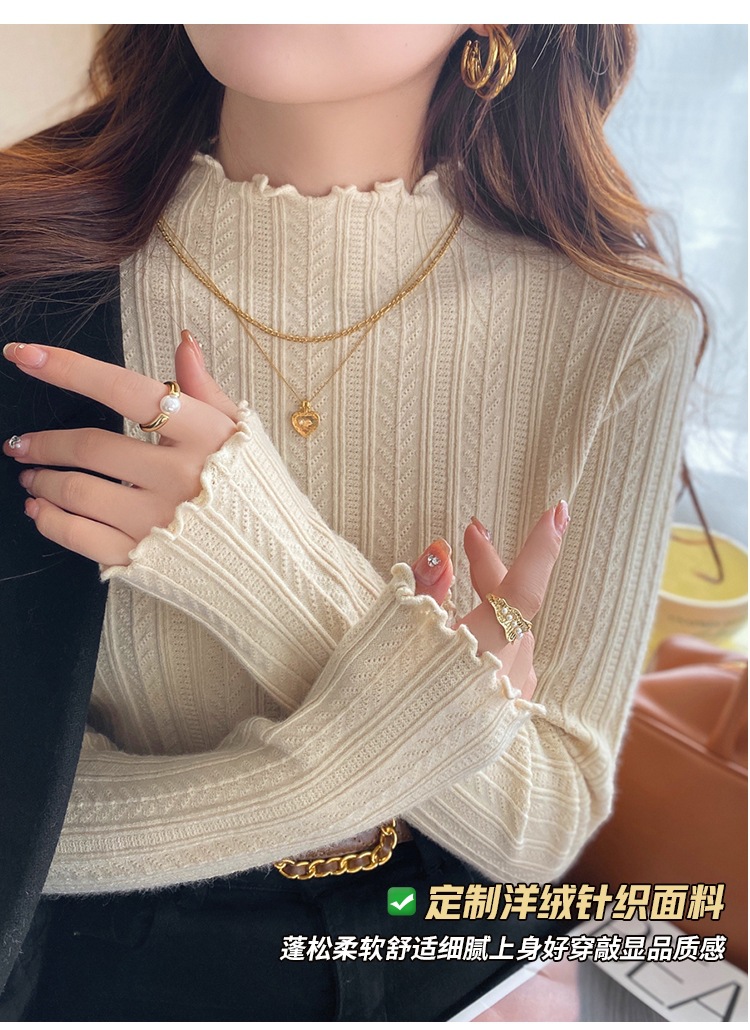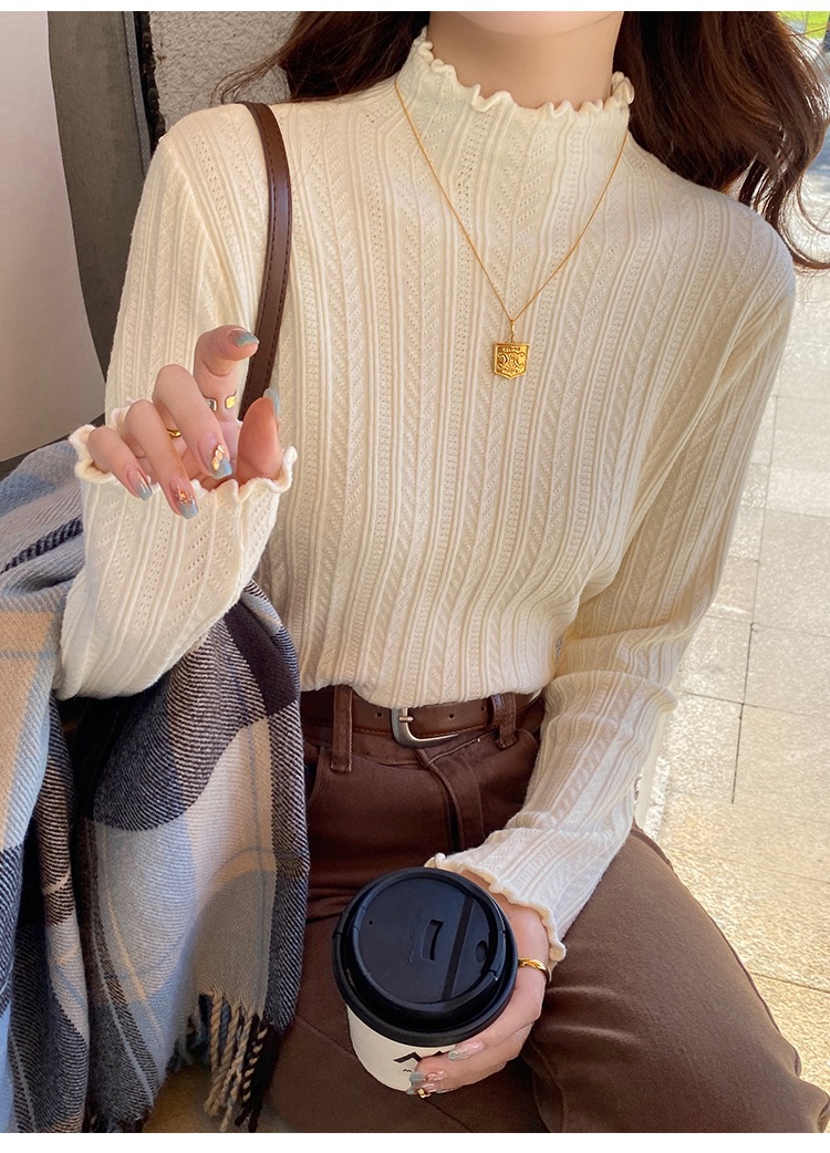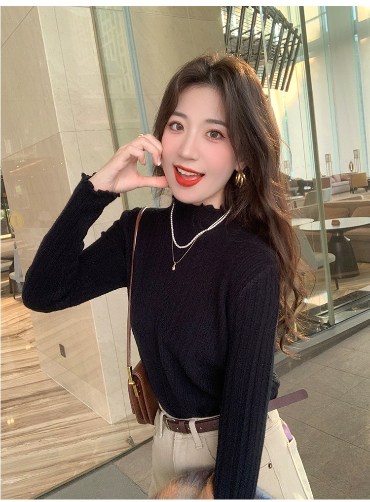 살구색 니트 스웨터 하프 터틀넥베이스 셔츠 여성의 봄과 가을 새로운 스웨터 센스 탑