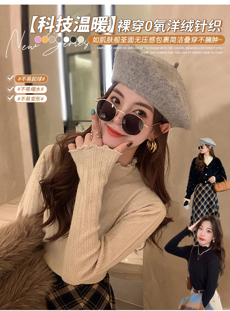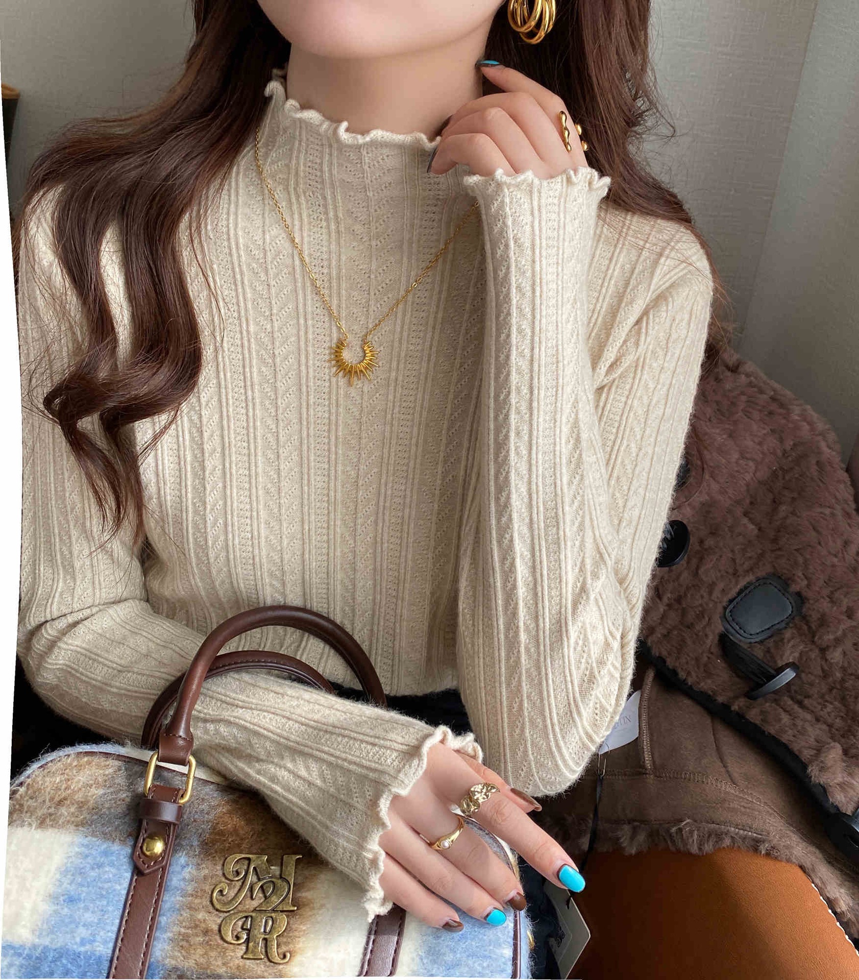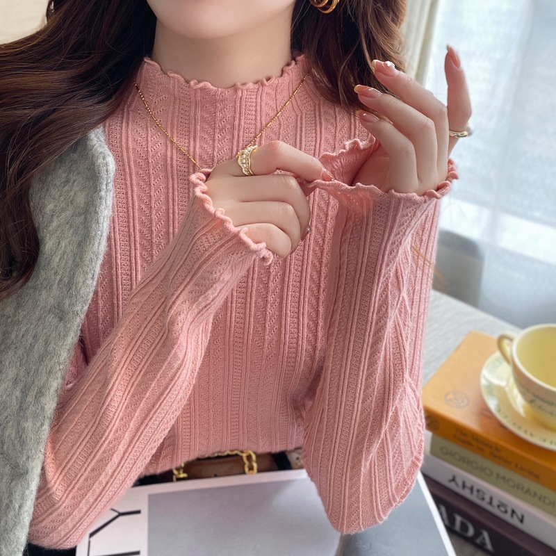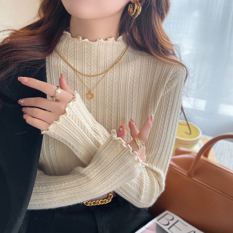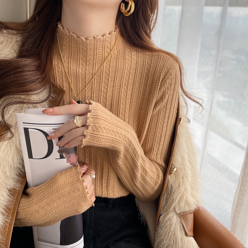 살구색 니트 스웨터 하프 터틀넥베이스 셔츠 여성의 봄과 가을 새로운 스웨터 센스 탑스토어 가기