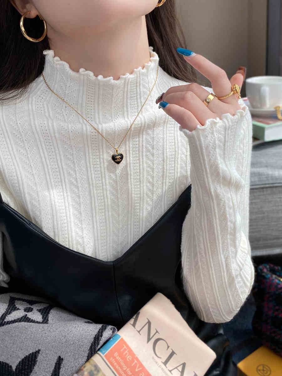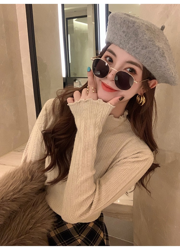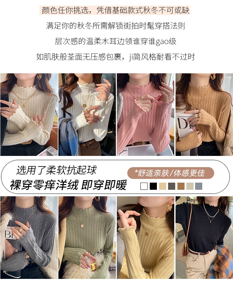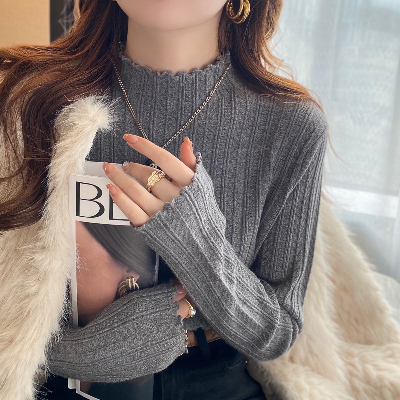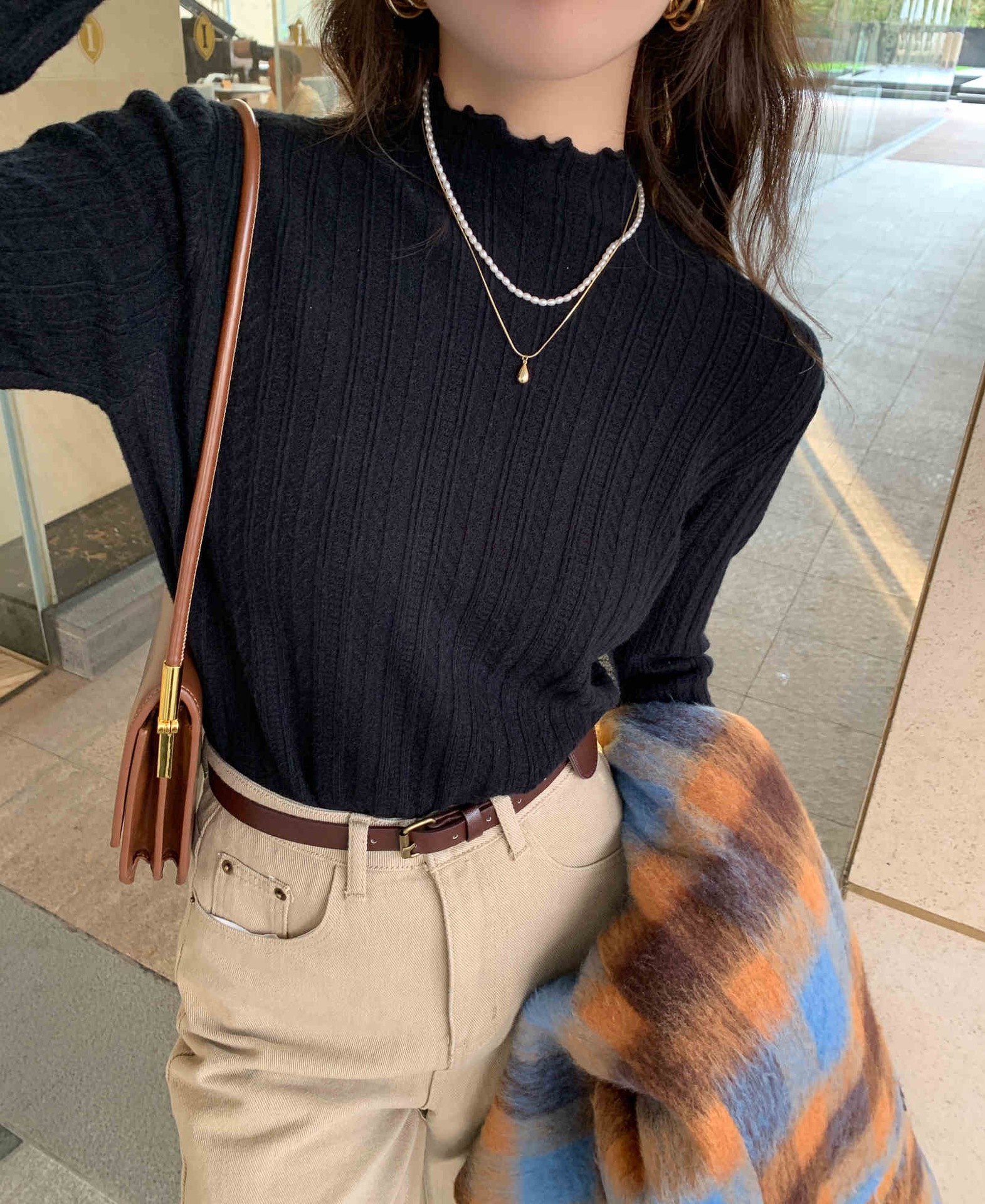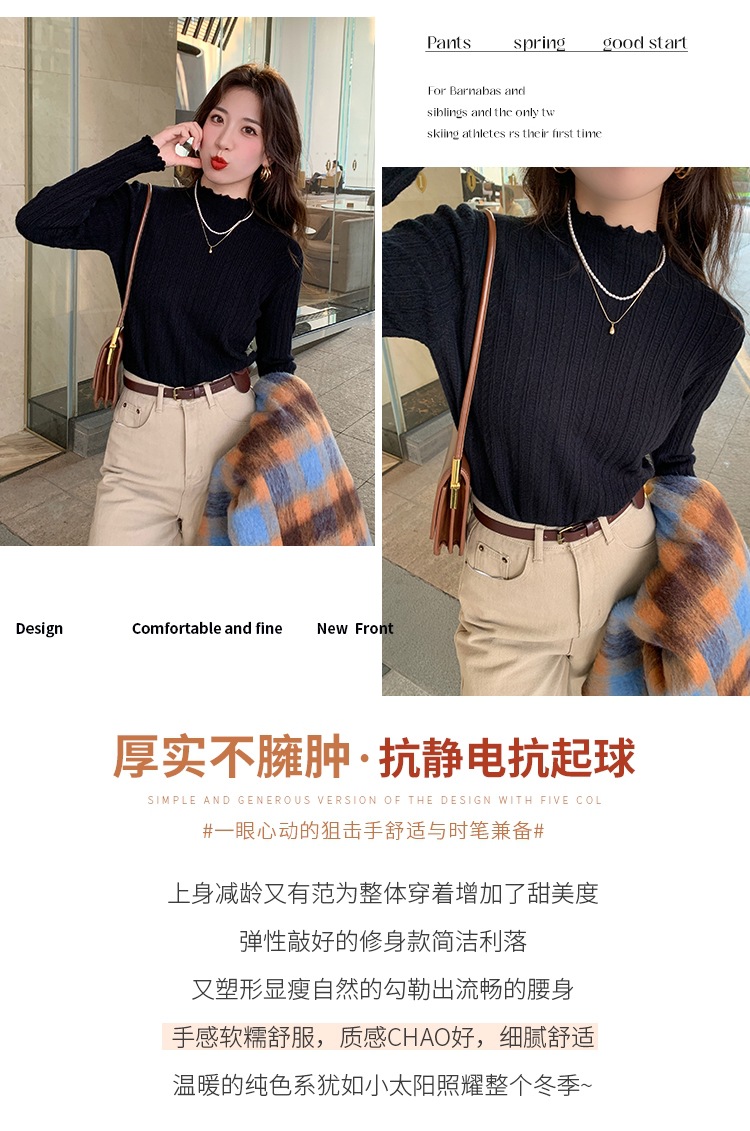 살구색 니트 스웨터 하프 터틀넥베이스 셔츠 여성의 봄과 가을 새로운 스웨터 센스 탑스토어 가기