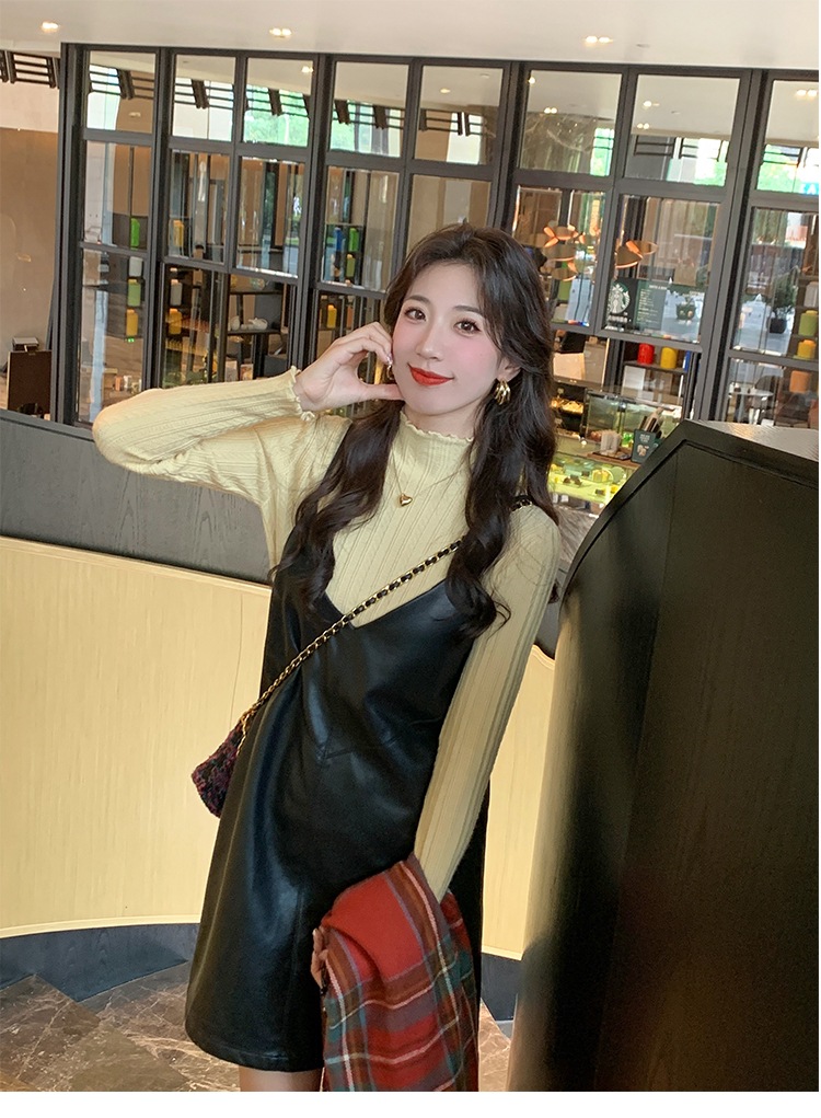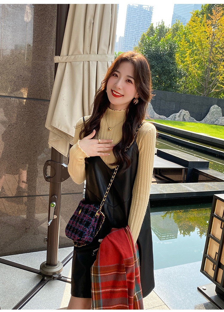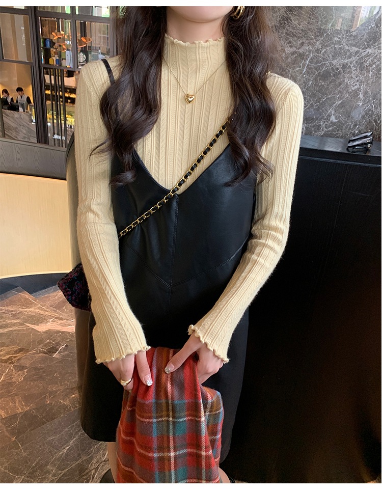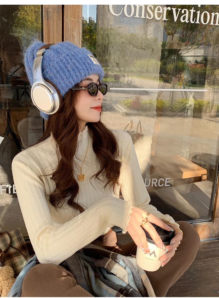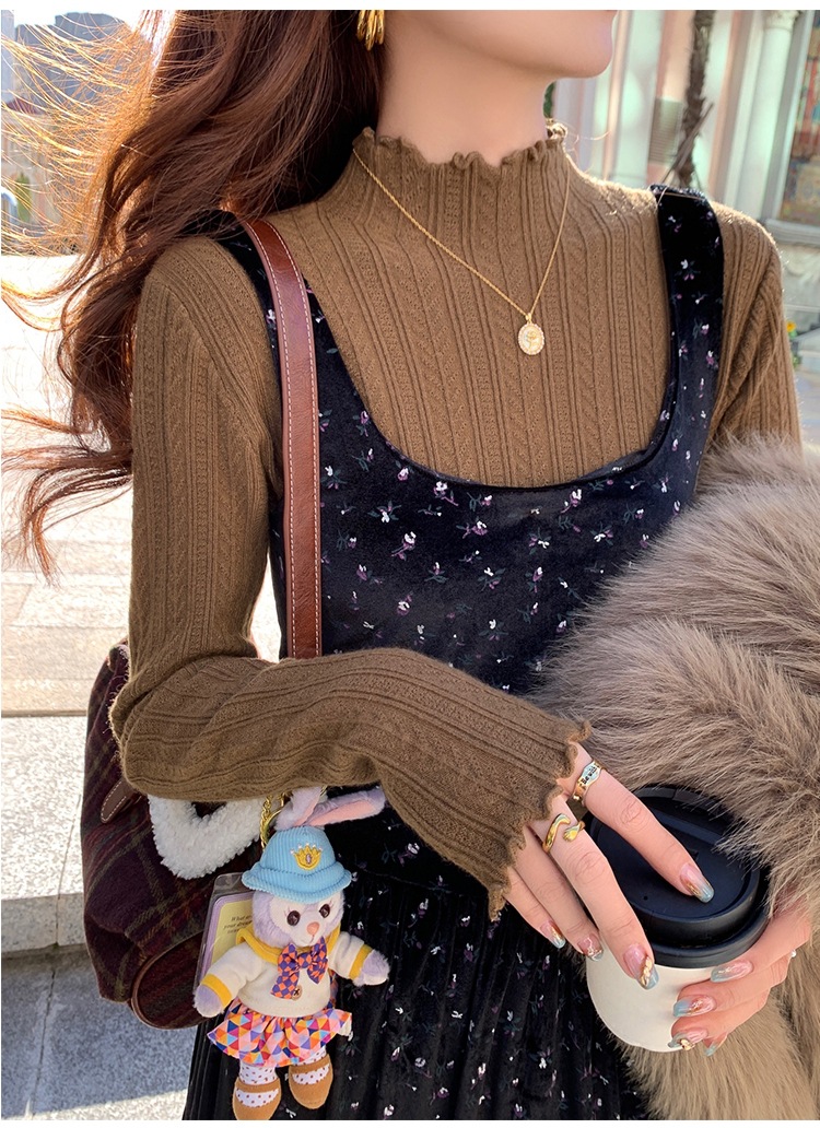 살구색 니트 스웨터 하프 터틀넥베이스 셔츠 여성의 봄과 가을 새로운 스웨터 센스 탑스토어 가기
