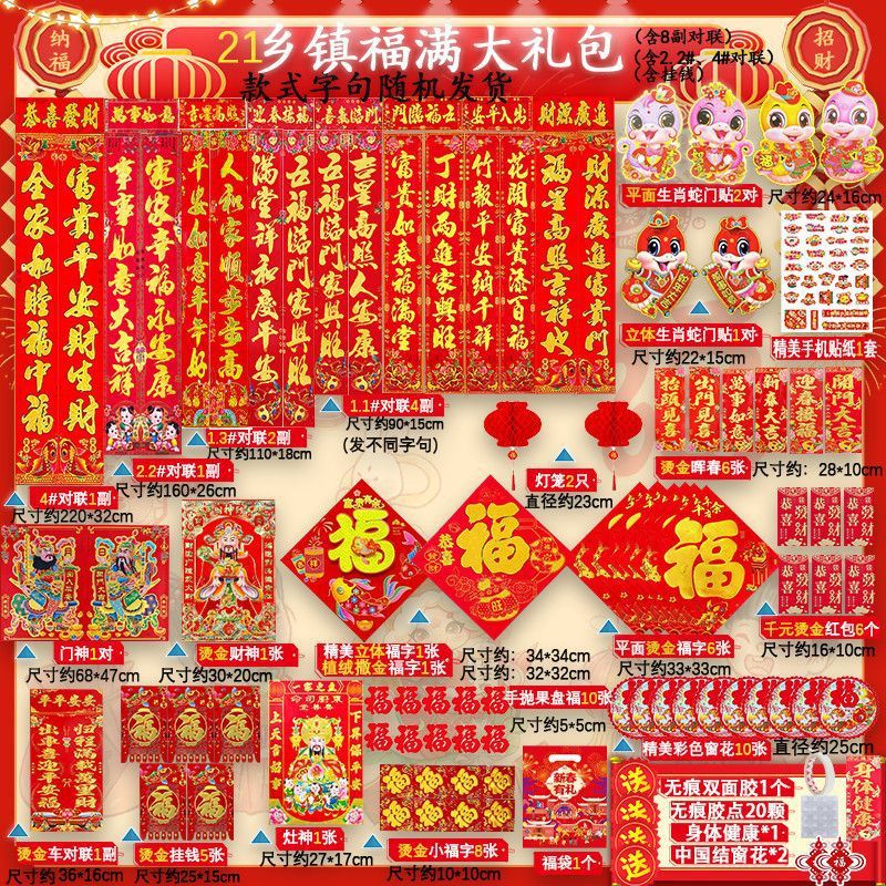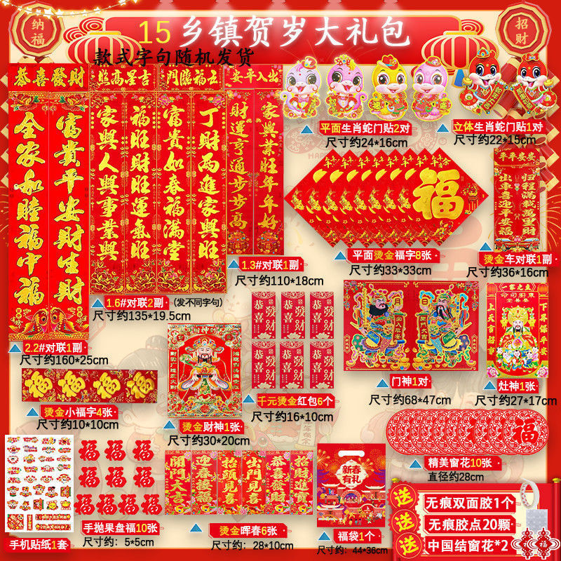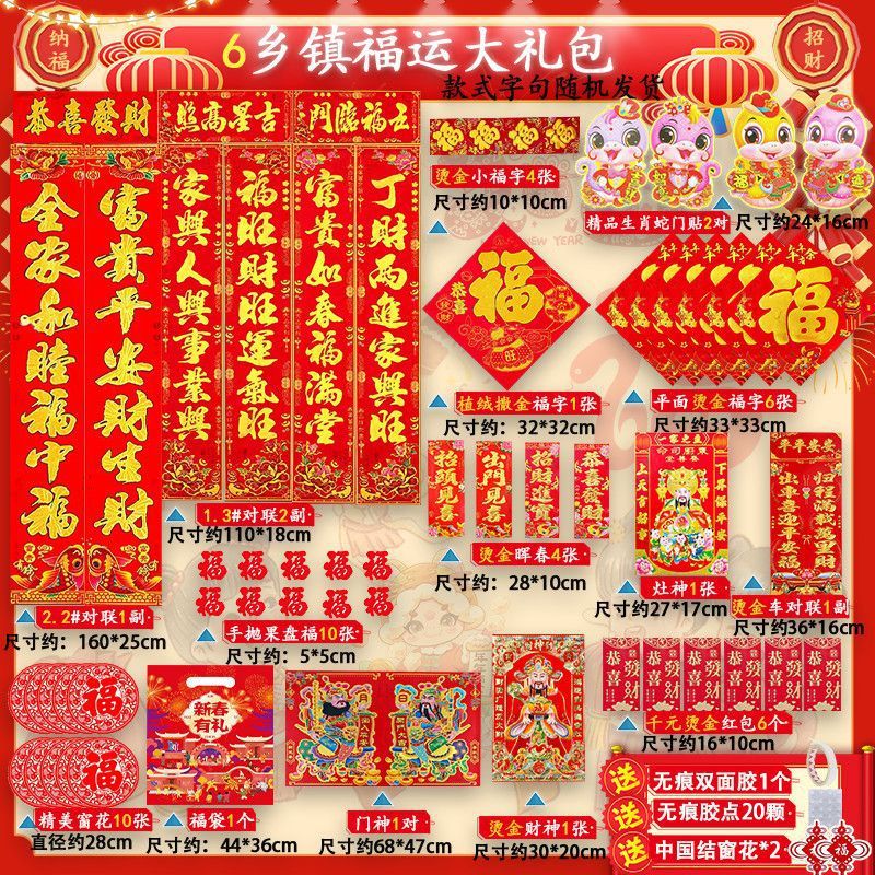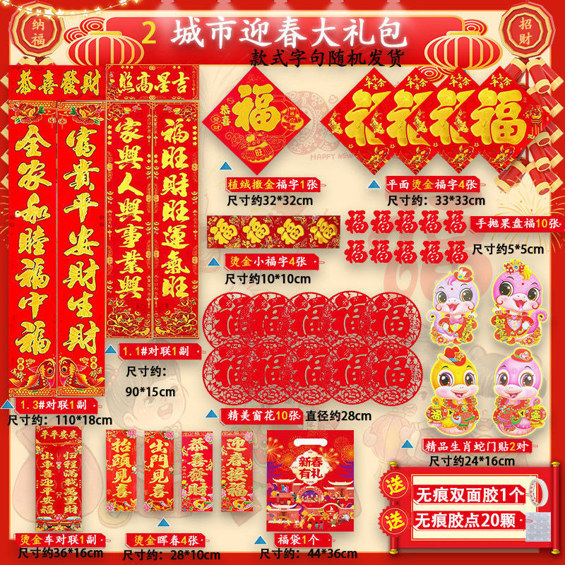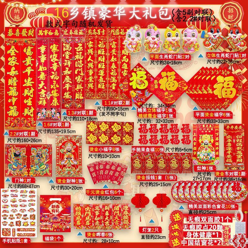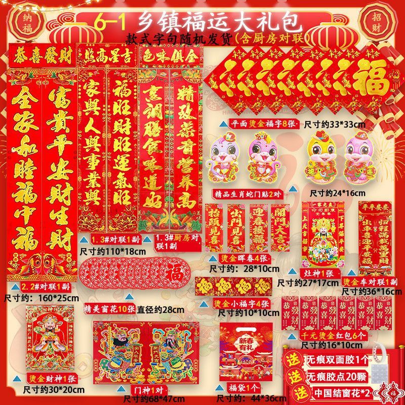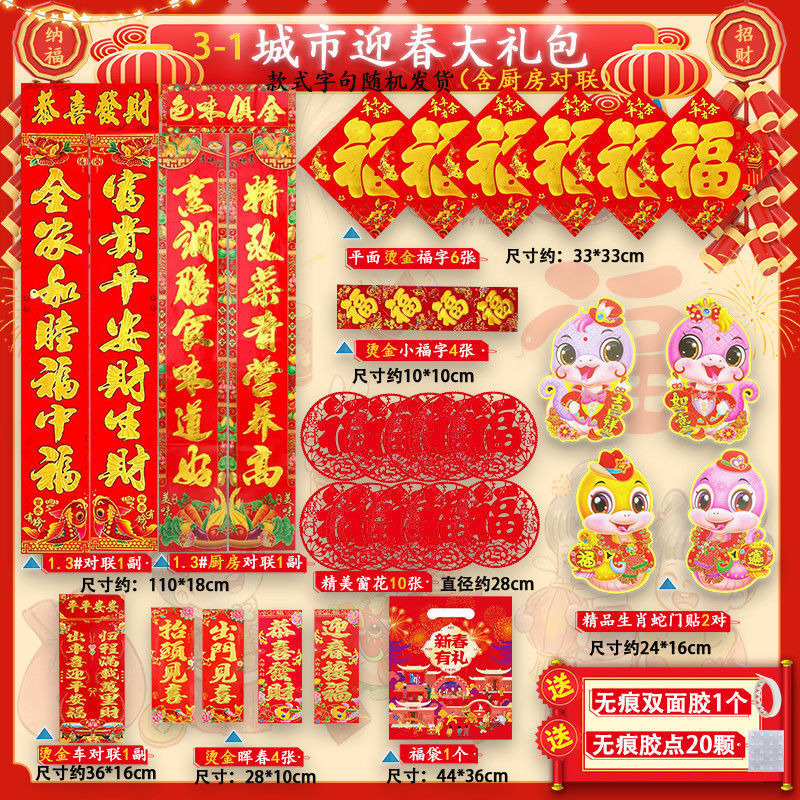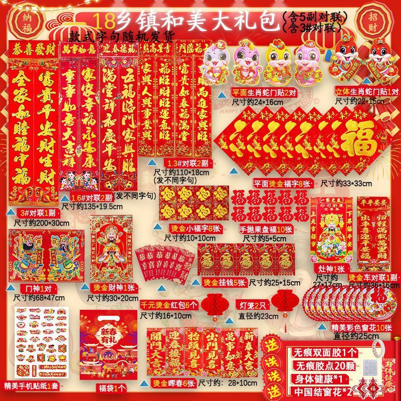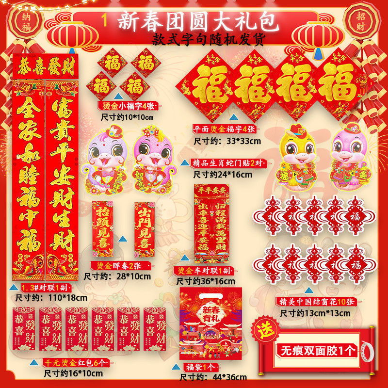 새해 사진 일괄 세트 2025 년 뱀 봄 축제 새해 선물 가방 도매 고급 신년 문 스티커 Fu Zi 스티커 커플