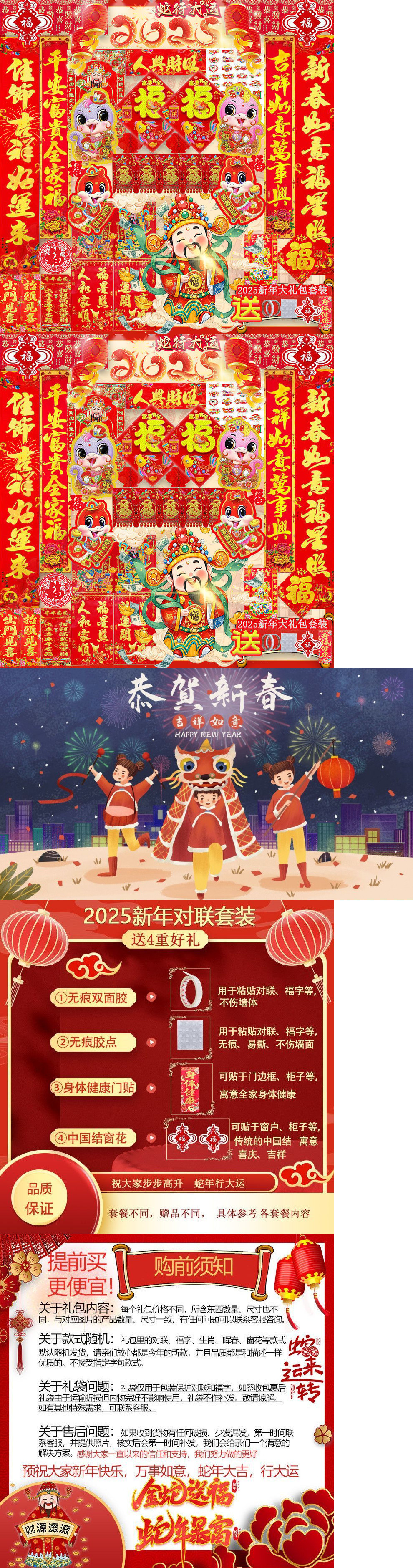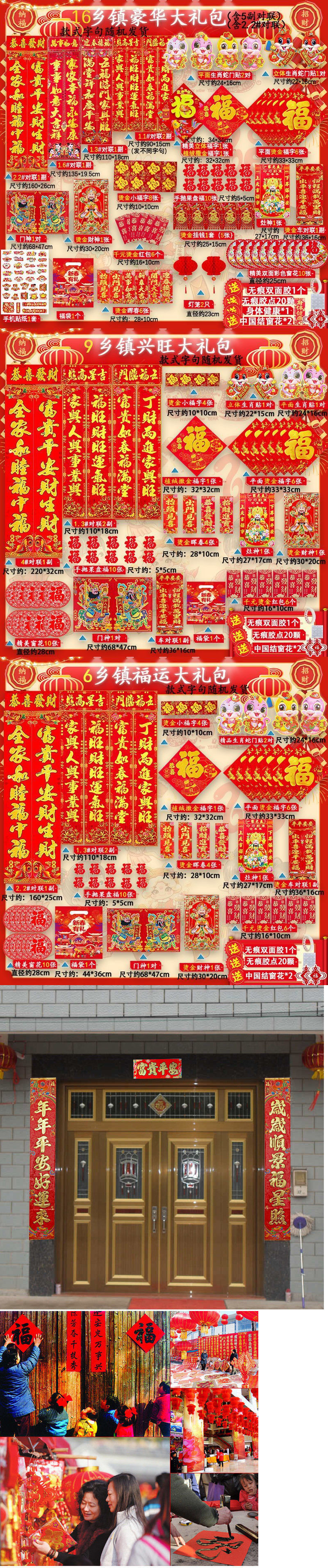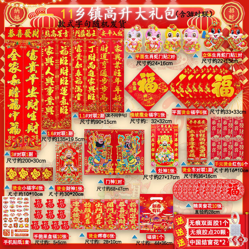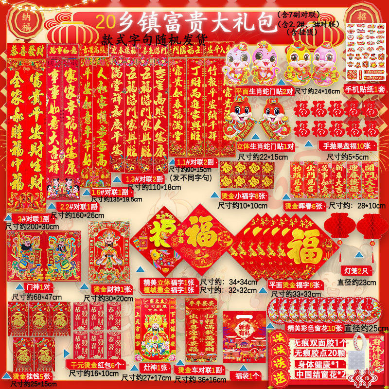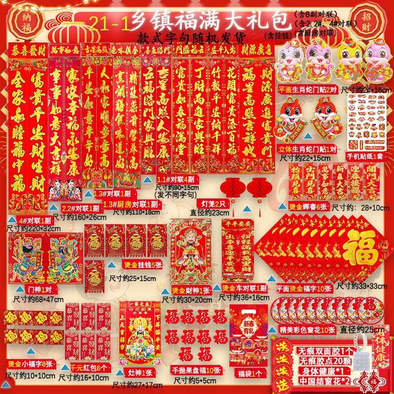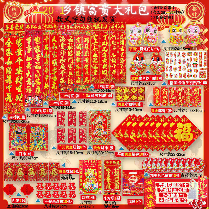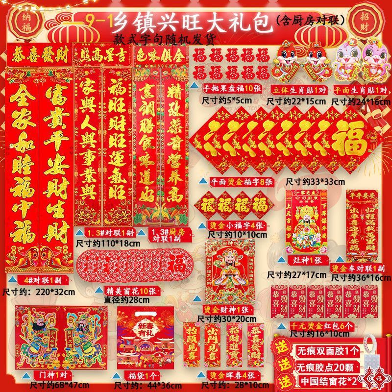 새해 사진 일괄 세트 2025 년 뱀 봄 축제 새해 선물 가방 도매 고급 신년 문 스티커 Fu Zi 스티커 커플