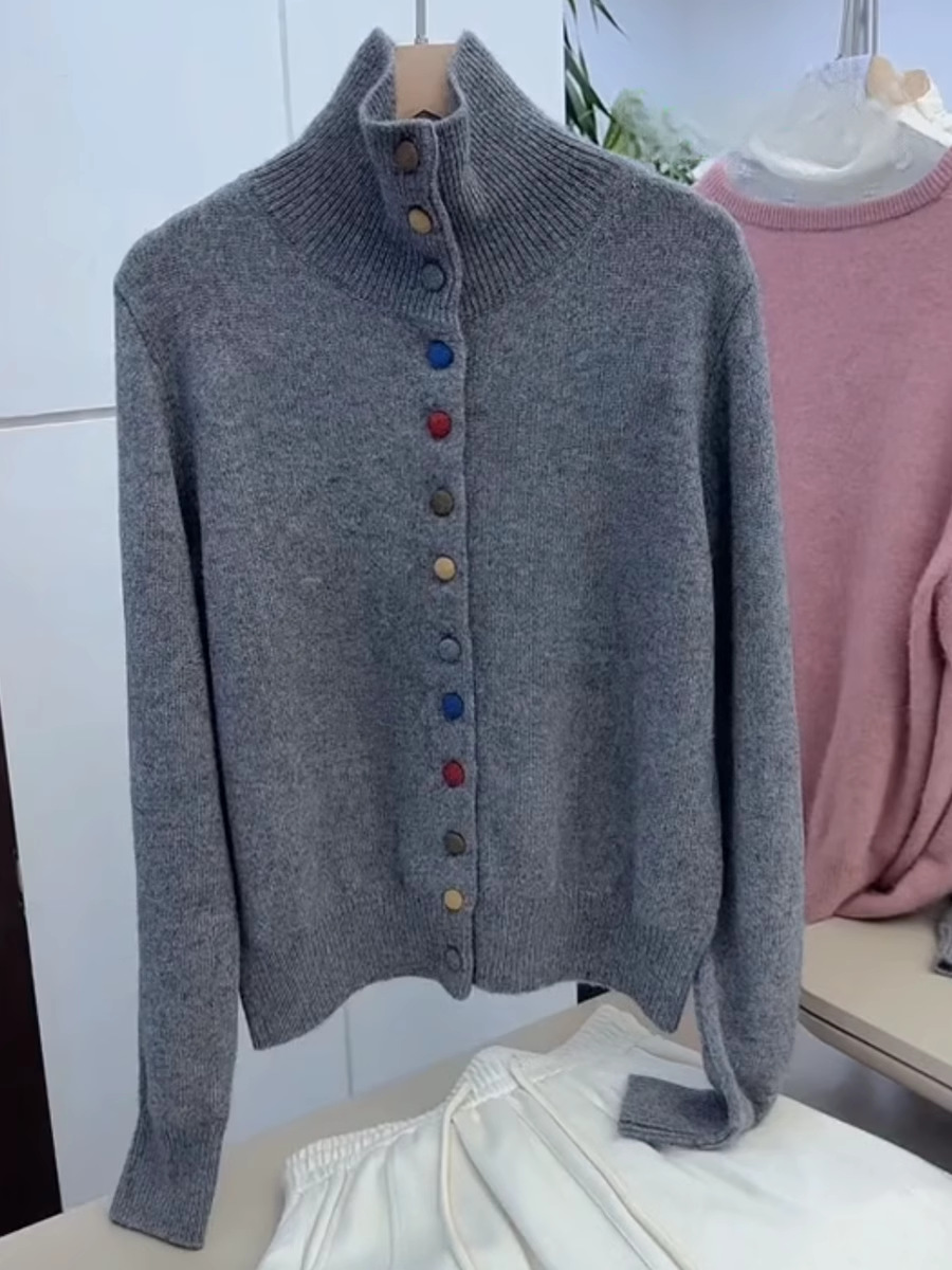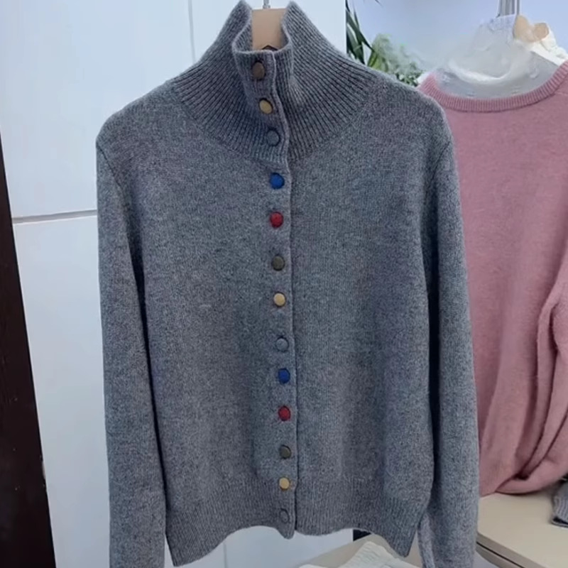 플러스 사이즈 여성의 높은 목 스웨터 여성의 가을 및 겨울 새로운 통통녀 컬러 버클 스웨터 게으른 스웨터 긴 소매 탑