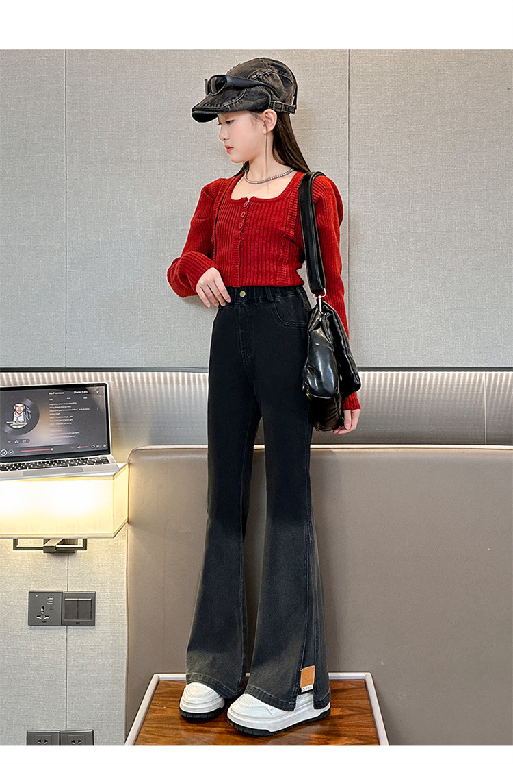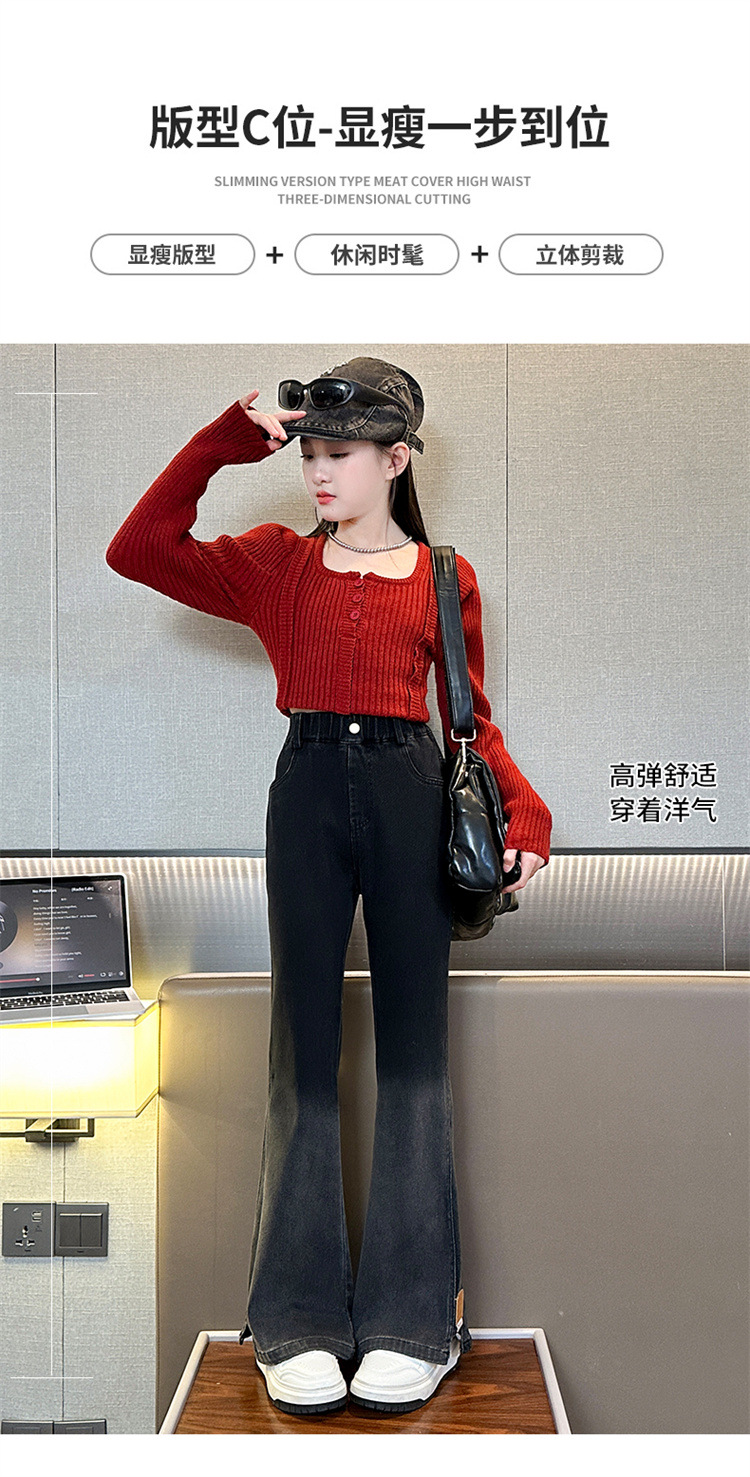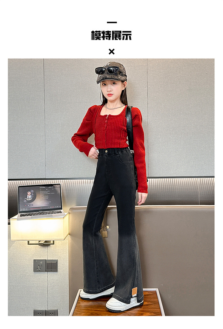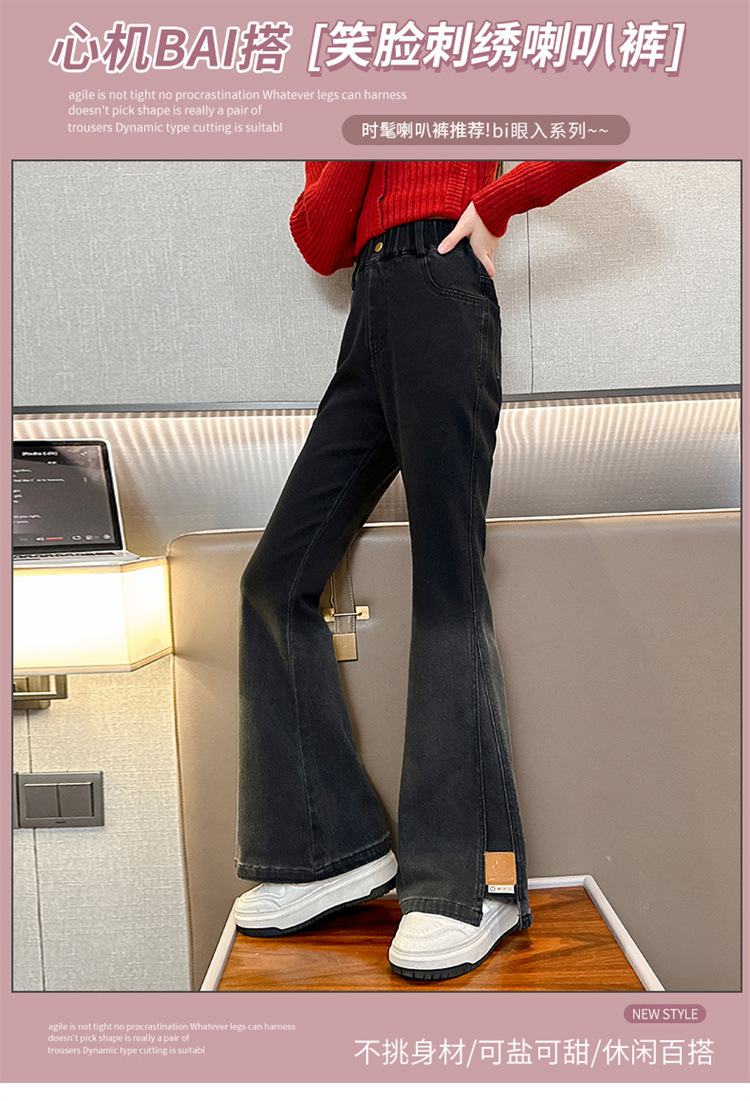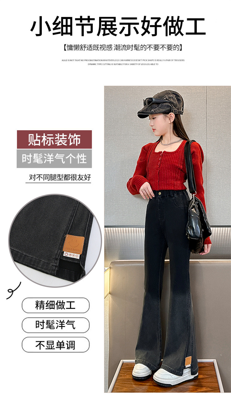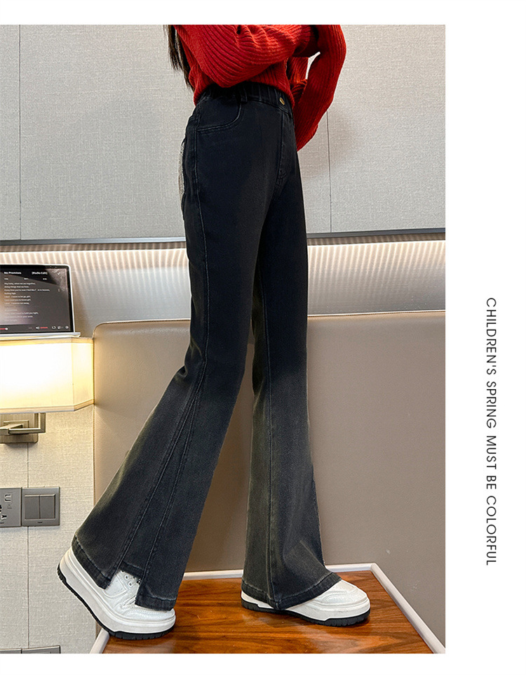 걸스 플래 팬츠 봄 새로운 한국 스타일 어린이 서양식 올 매치 슬림 핏 걸스 마이크로 핏 청바지 Huzhou Zhili
