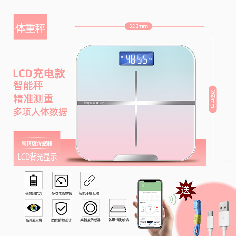 • 스마트 체중계/휴대폰 상호 연결/LCD/충전식 모델