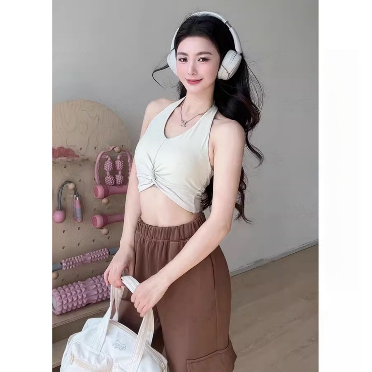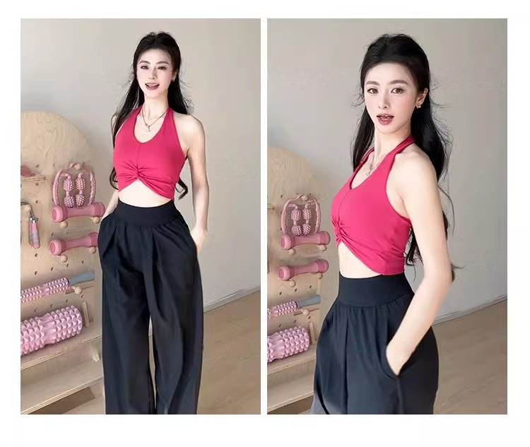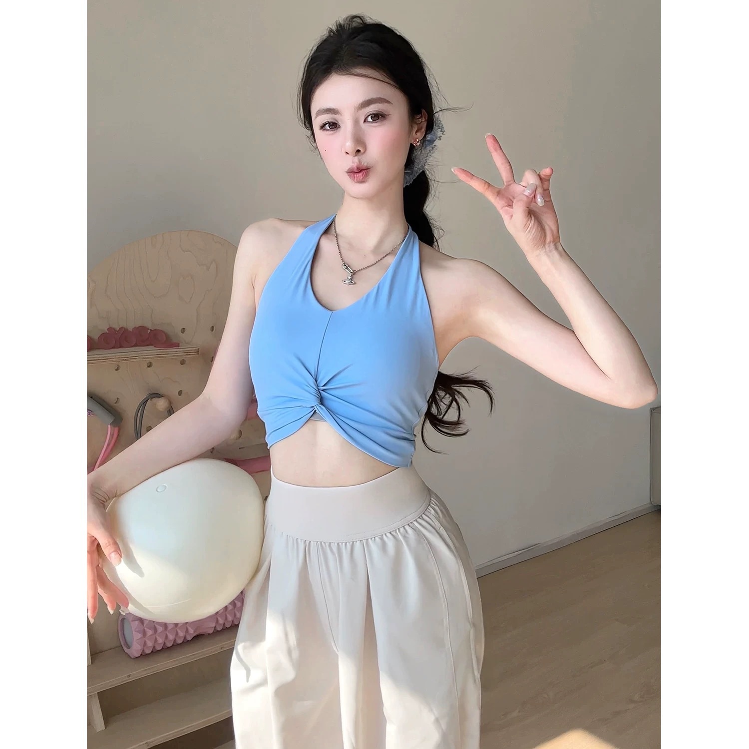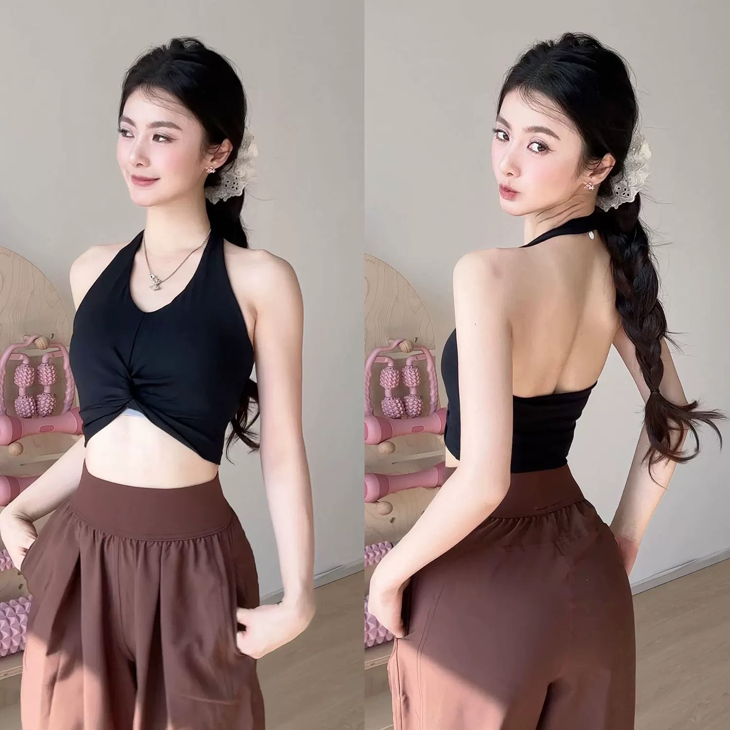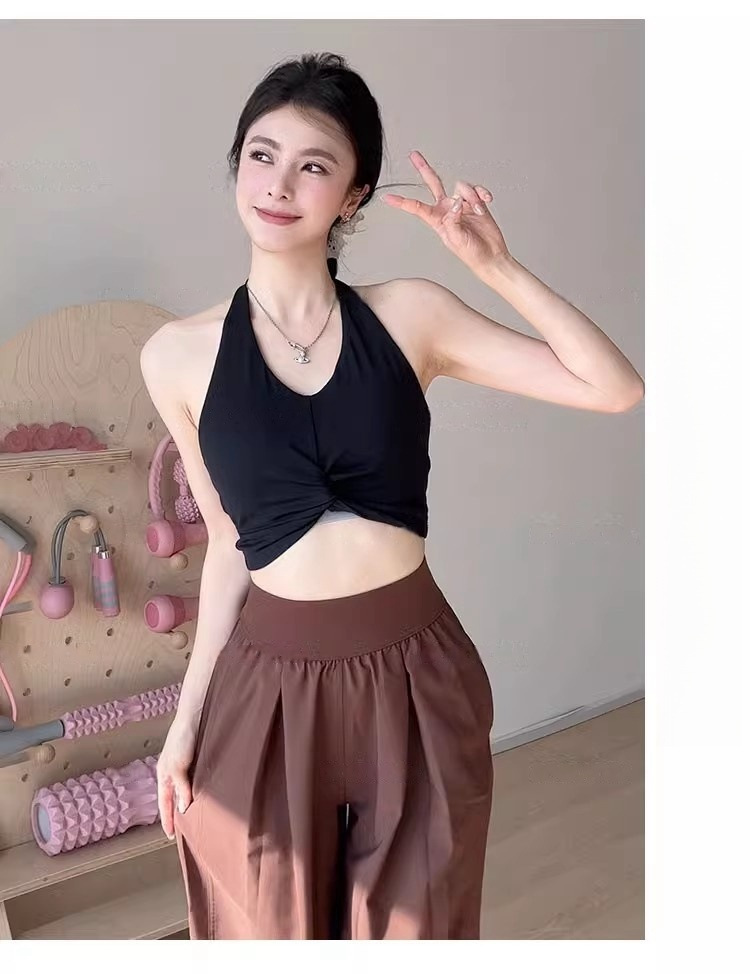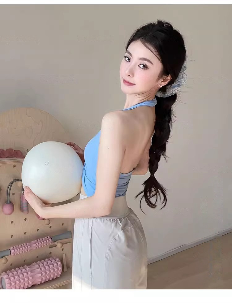 가슴 패드가 있는 올인원 요가 홀터넥 조끼, 아름다운 등 운동, 충격 방지 트레이닝, 피트니스 스포츠 주름 속옷 1701스토어 가기