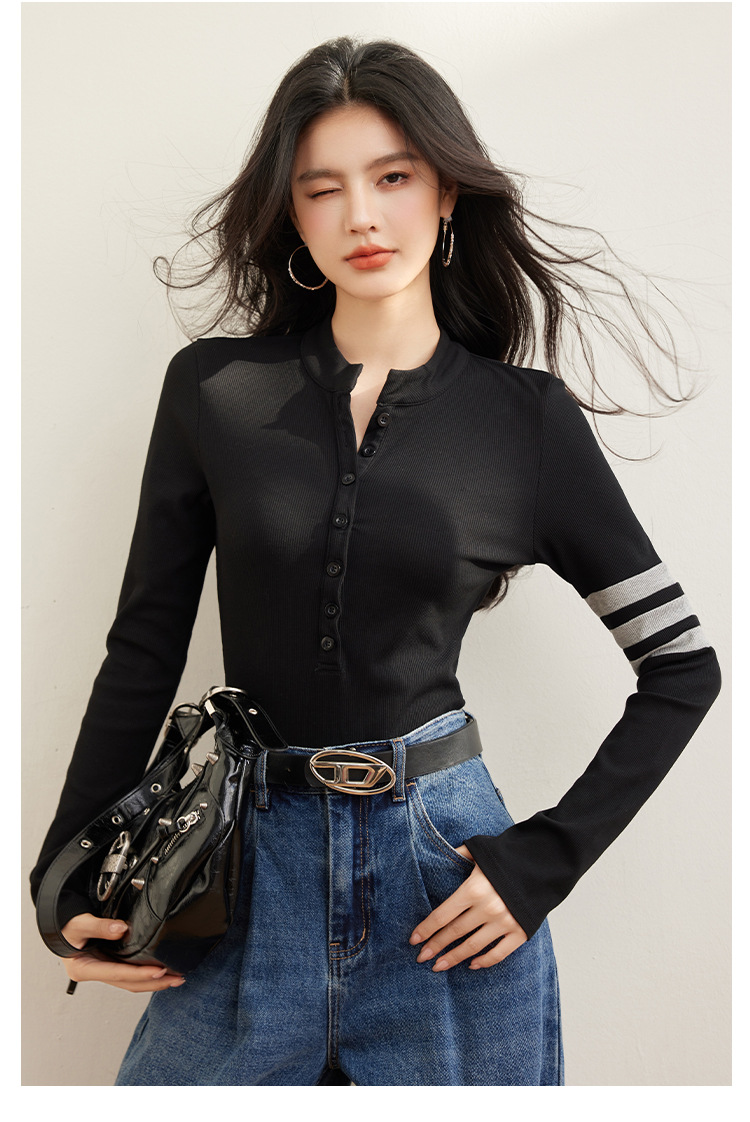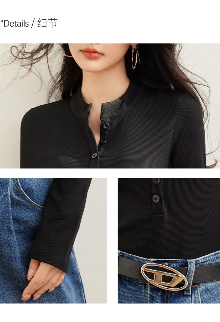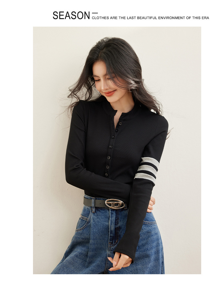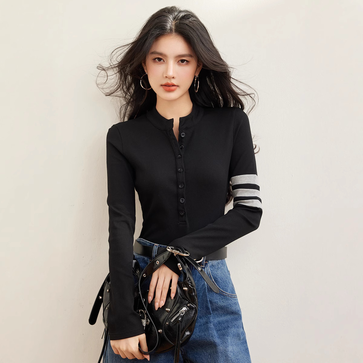 2025 봄 새로운 한국 패션 패션 가슴 디자인 달콤한 쿨 니트 풀오버 긴 소매 라운드 넥 여성스토어 가기