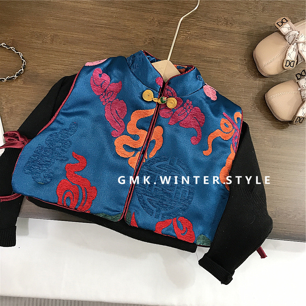 여자 겨울 조끼 여자 아기 소녀 유행 당나라 코트 작은 소녀 서양식 어린이 의류 중국 년 의류스토어 가기
