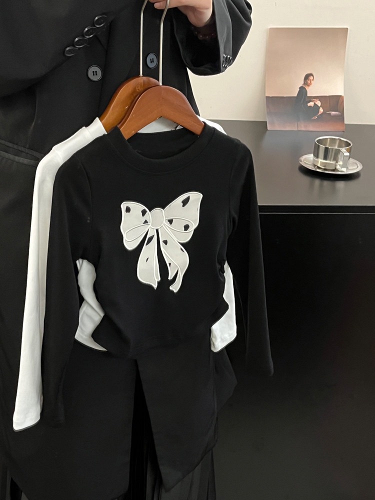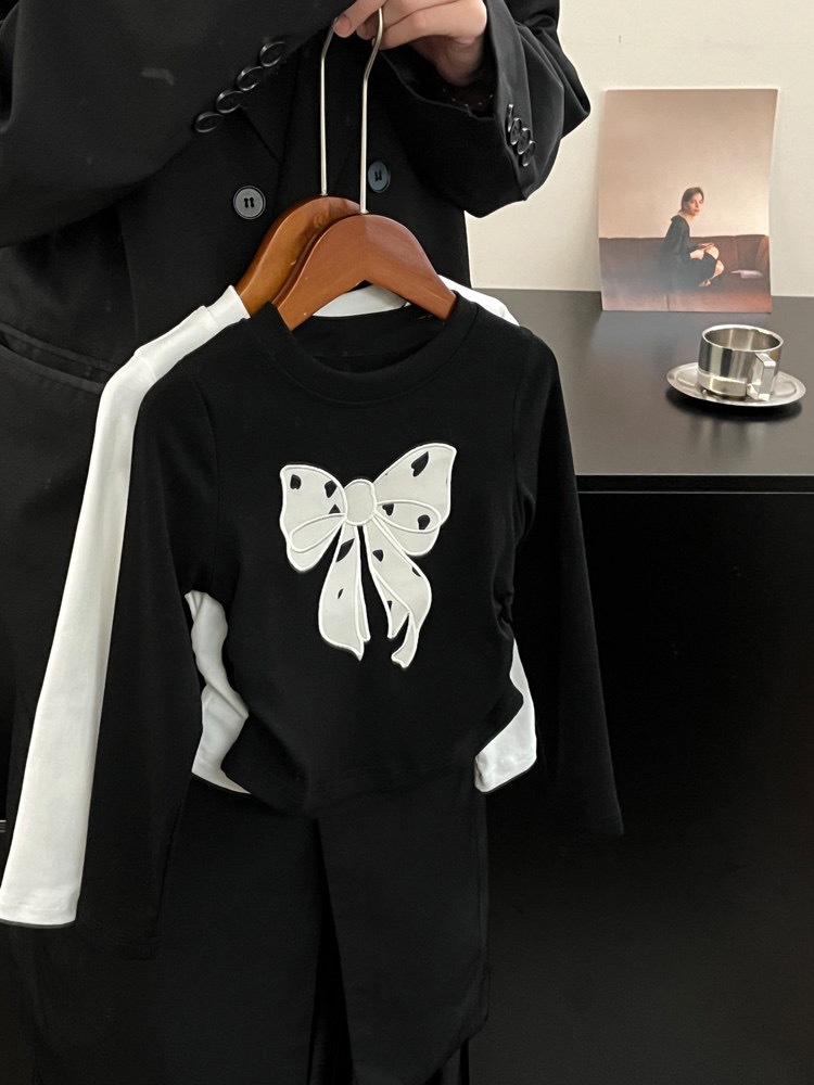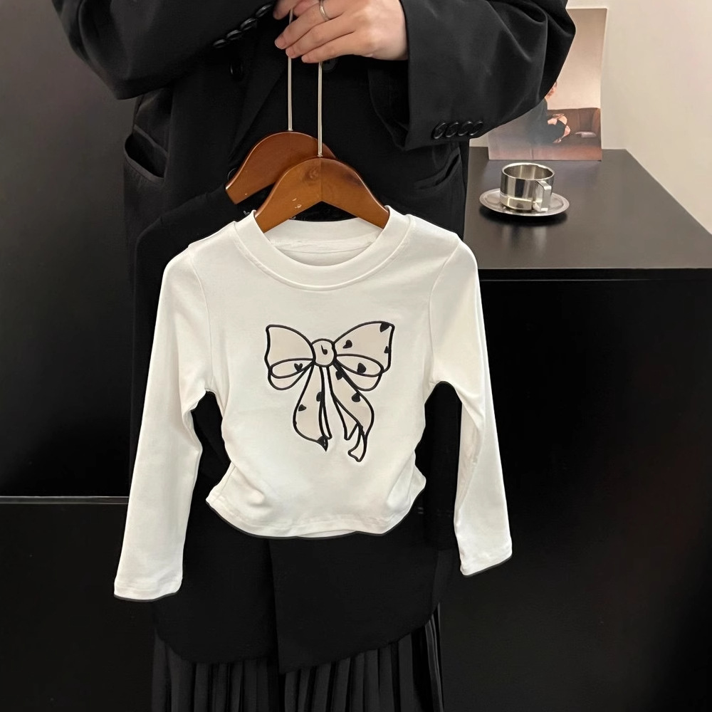 Xiaozhong 아동복 소녀 티셔츠 2024 새로운 스타일 어린이 활 긴 소매베이스 셔츠 아기의 가을 탑