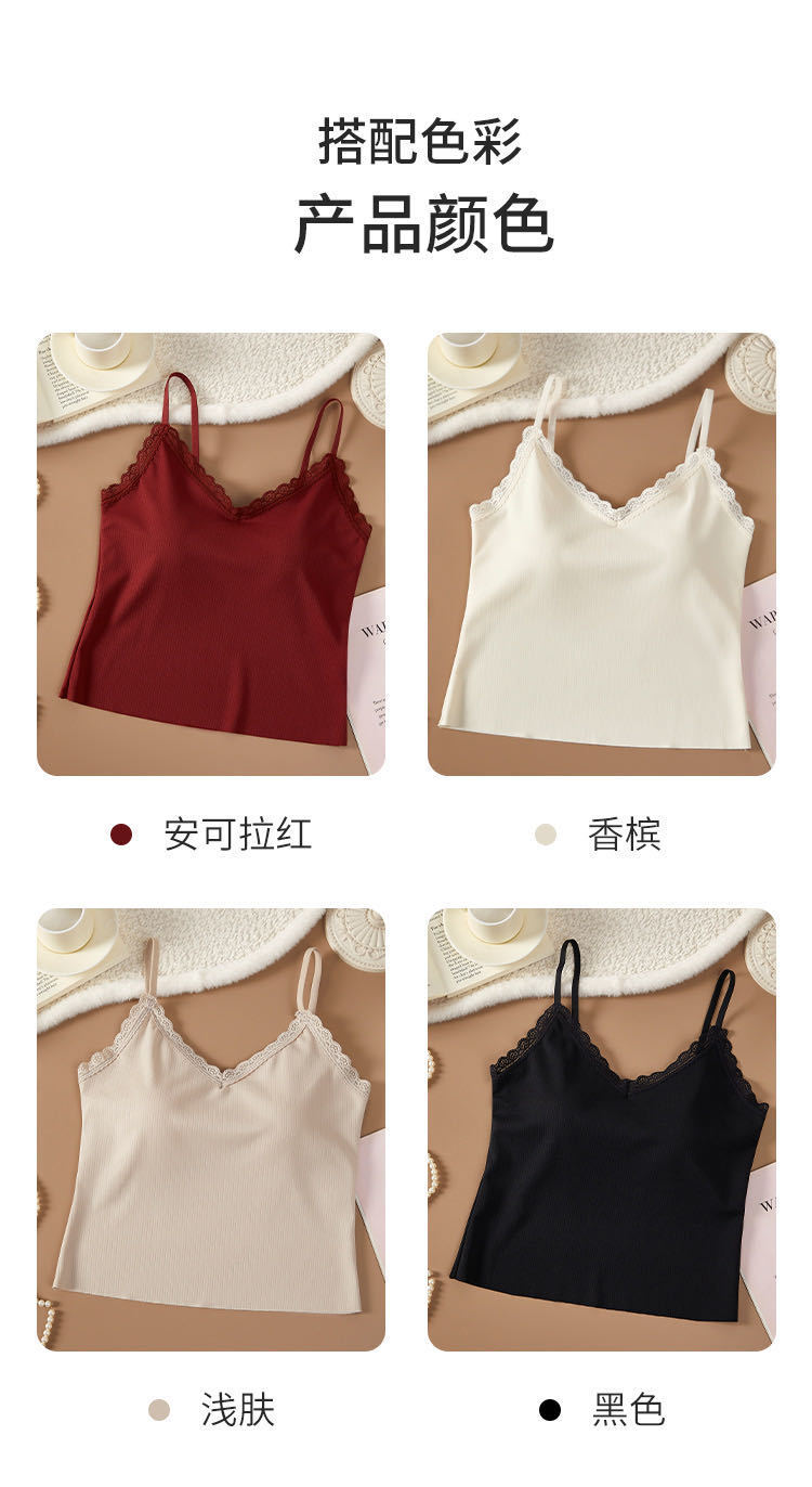 봄과 여름 2025 새로운 V 넥 레이스 카미 솔 조끼 통합 가슴 패드 올매치 뷰티 백 속옷 외신베이스 조끼