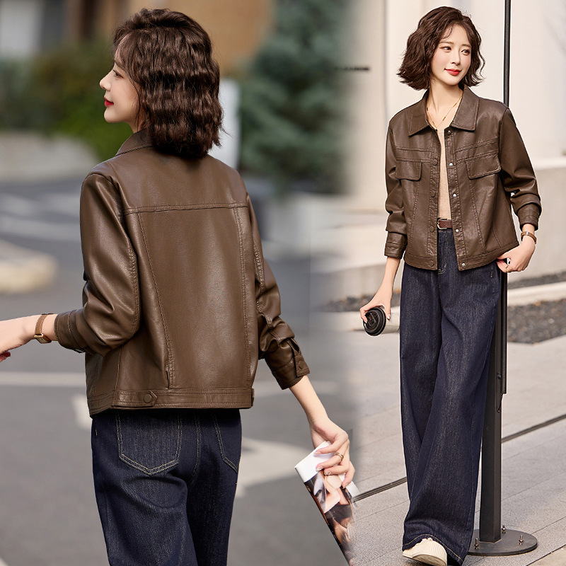 여성 가죽 의류 여성 쇼트 2025 봄과 가을 새로운 우아한 올 매치 바이커 의류 PU 가죽 자켓 코트 ZH1168스토어 가기