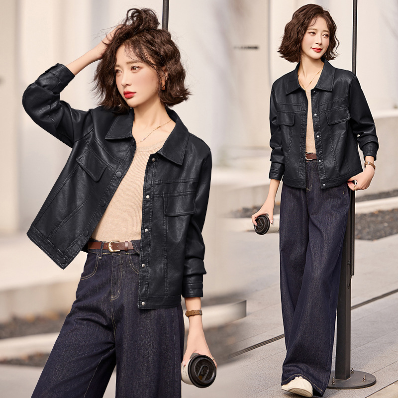 여성 가죽 의류 여성 쇼트 2025 봄과 가을 새로운 우아한 올 매치 바이커 의류 PU 가죽 자켓 코트 ZH1168