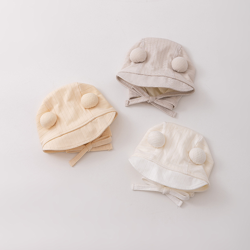 Benhui 더블 볼 오리 혀 귀 보호 캡 아기 모자 얇은 귀여운 슈퍼 귀여운 가방 얼굴 모자 작은 달 된 순면 어린이 모자