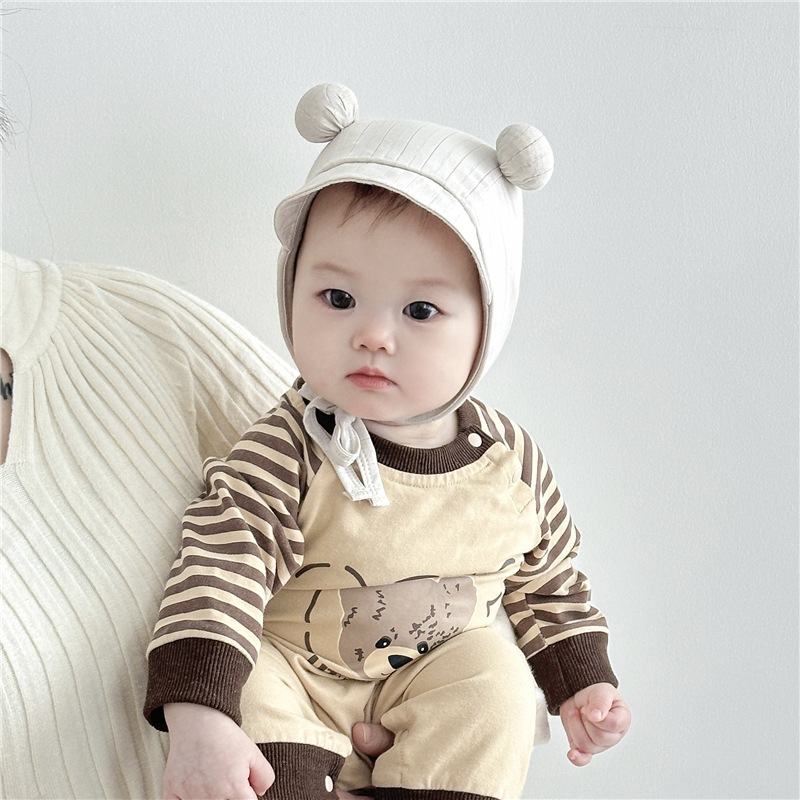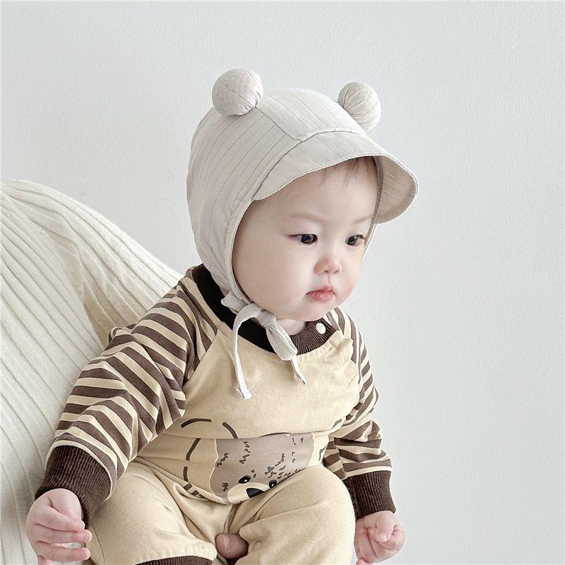 Benhui 더블 볼 오리 혀 귀 보호 캡 아기 모자 얇은 귀여운 슈퍼 귀여운 가방 얼굴 모자 작은 달 된 순면 어린이 모자스토어 가기