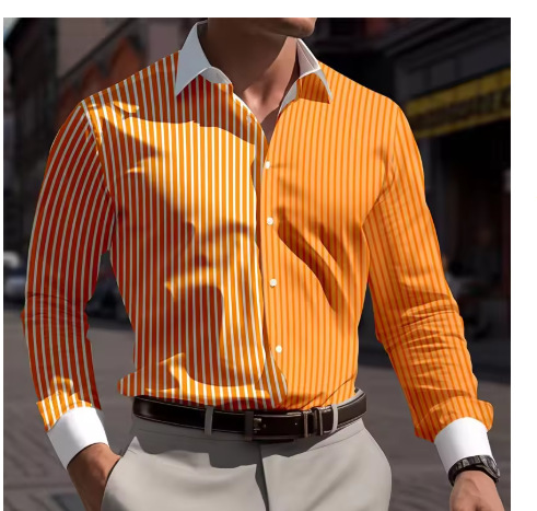 유럽과 미국 국경 아마존 줄무늬 남성 패션 긴 소매 셔츠 창조적 인 요소 3D 디지털 인쇄 셔츠