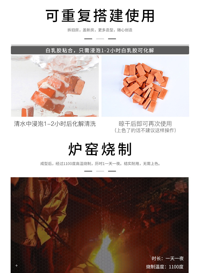 1 ~ 12 모델 작은 벽돌 세라믹 빌딩 블록 교육 장난감 작은 메이슨 빌딩 하우스 레드 벽돌 수제 샵