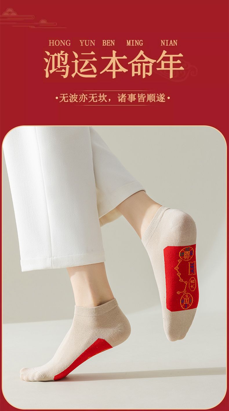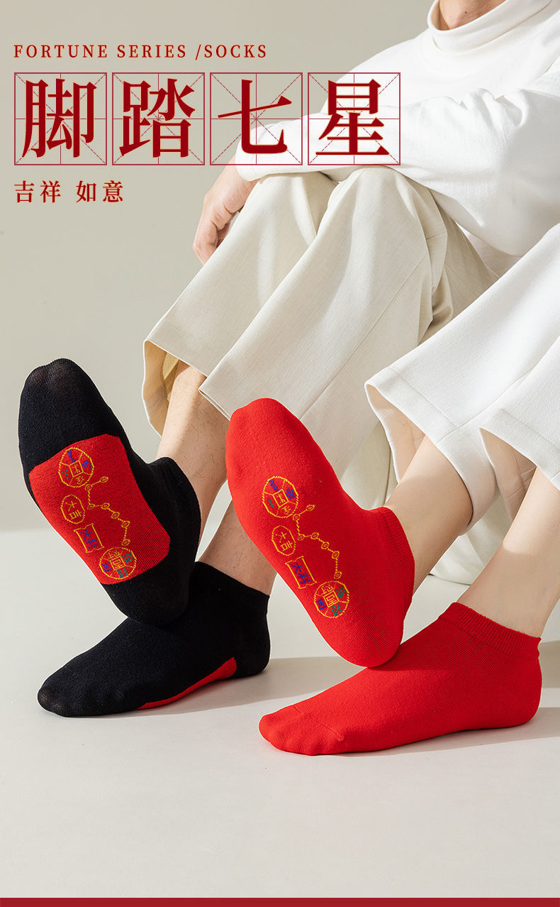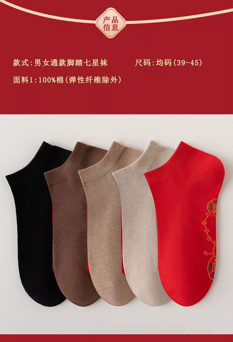 페달 세븐 스타 양말 일곱 스타 비즈 짧은 양말 남자와 여자 빨간 양말 벤밍니 포춘 양말 보트 양말 냄새 방지 코튼 양말