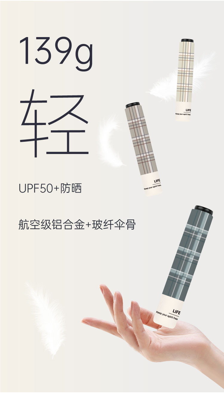 Daguang 138g 울트라 라이트 우산 수동 접히는 격자 무늬 태양 우산 태양 보호 자외선 보호 햇빛 비 이중 목적 양산 우산스토어 가기