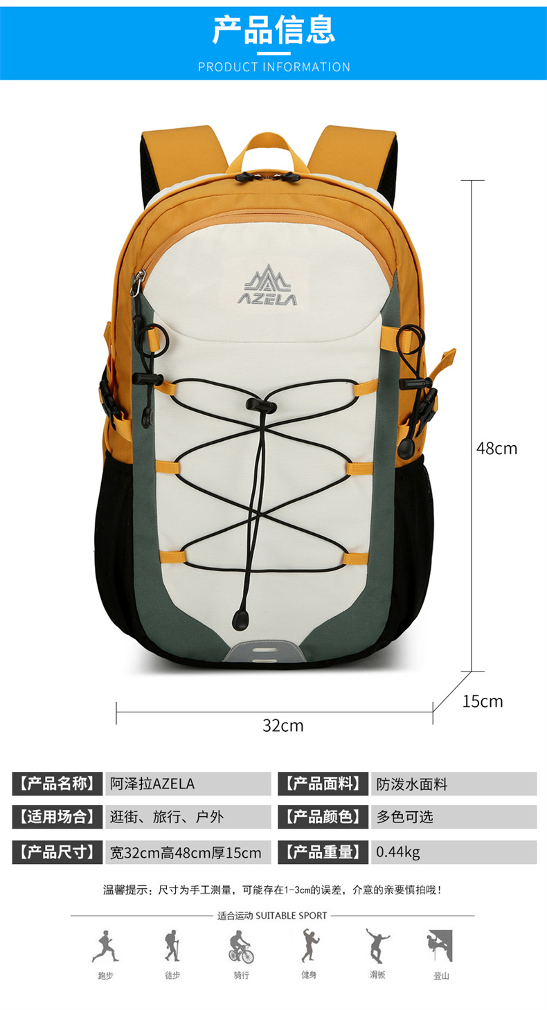 Azera 배낭 스포츠 야외 등산 배낭 라이트급 캐주얼 대용량 하이킹 등산 가방 국경