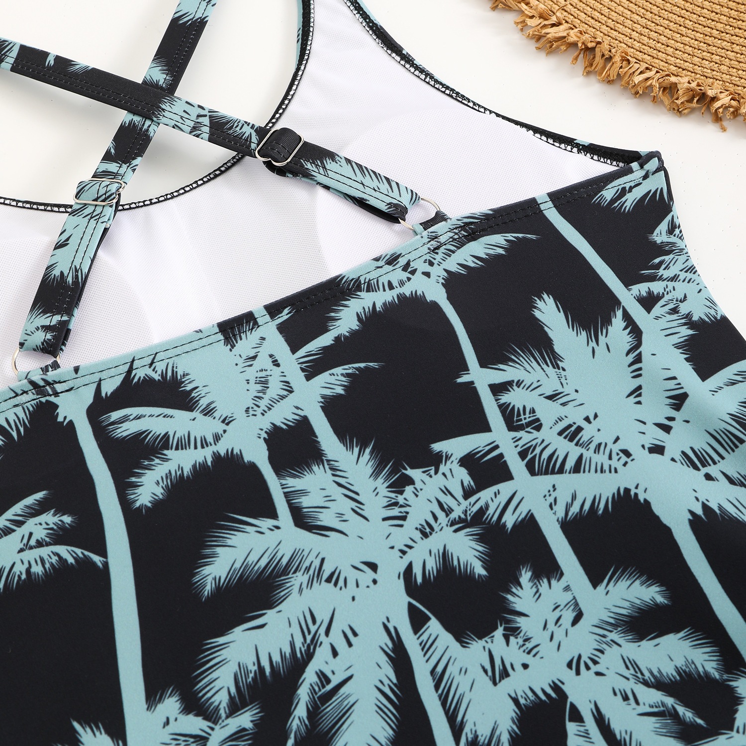 2025 유럽과 미국의 새로운 대외 무역 국경 간 인쇄 스파이스 걸스 타이트한 백리스 드로우 스트링 벨리 커버 슬리밍 스플릿 수영복 여성