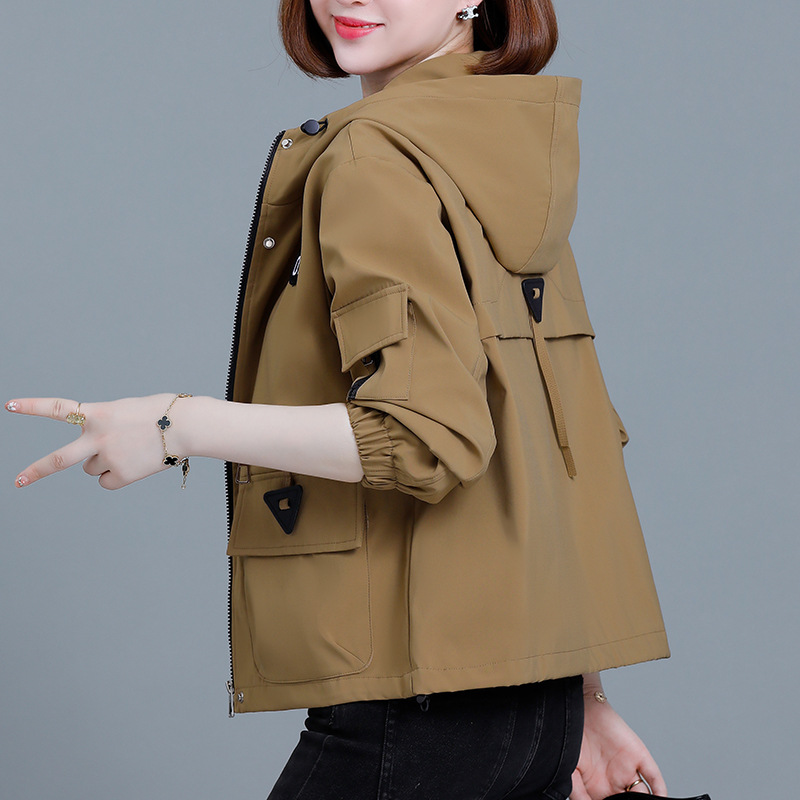 짧은 캐주얼 재킷 코트 여자 봄과 가을 2025 새로운 후드 윈드 브레이커 작은 느슨한 올 매치 탑스토어 가기