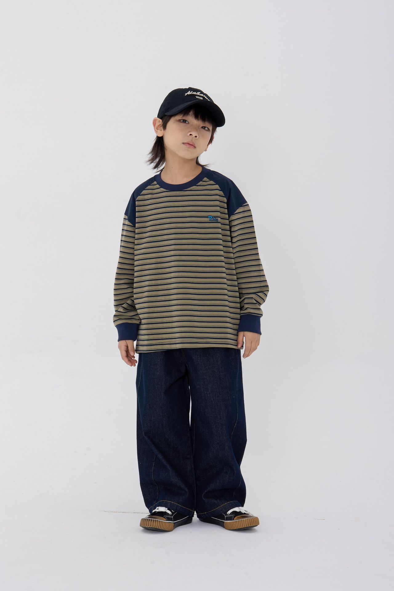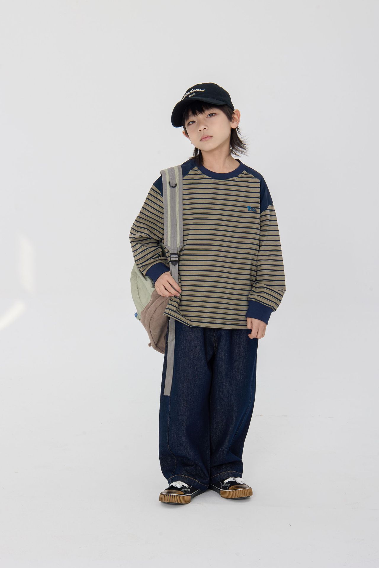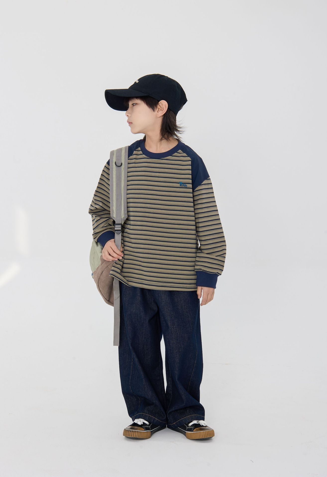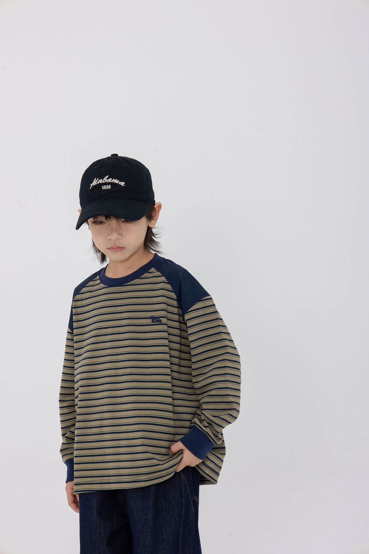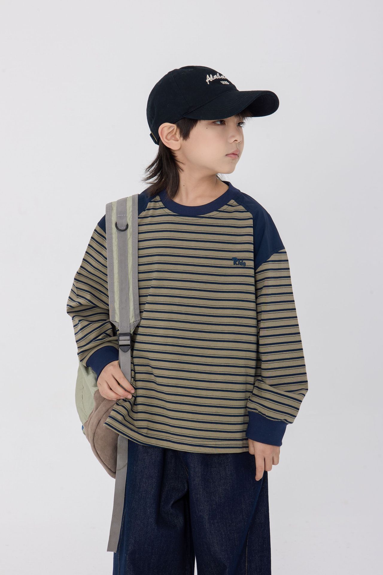 반품 및 교환 불가 특징 3D 엠보싱 어린이 스트라이프 티셔츠 어린이 스트라이프 배색 긴팔 티셔츠스토어 가기