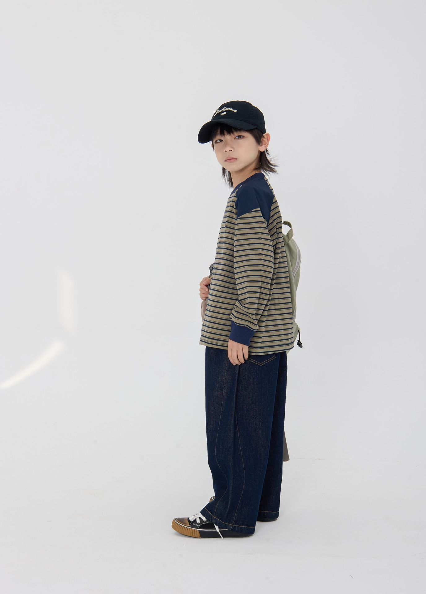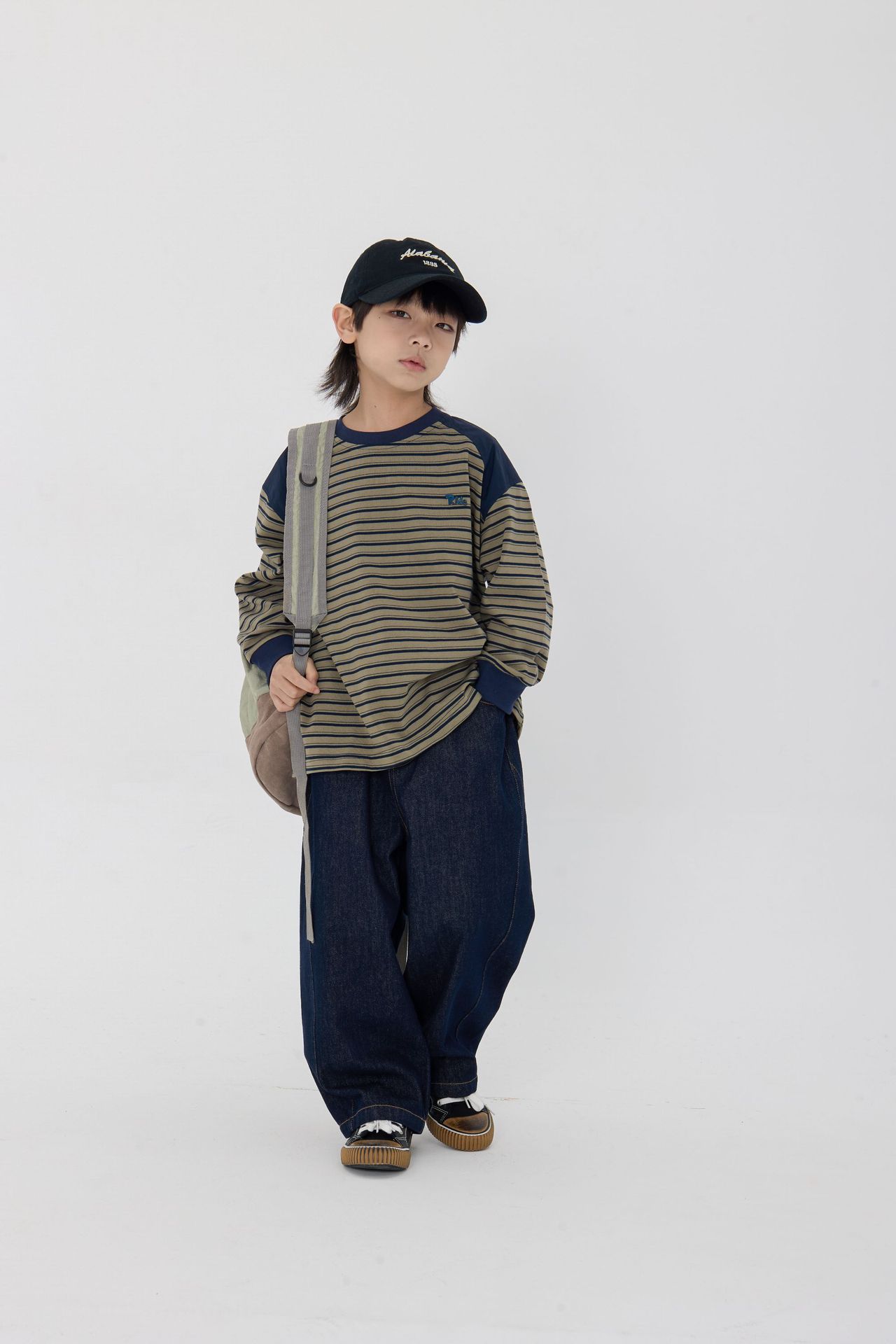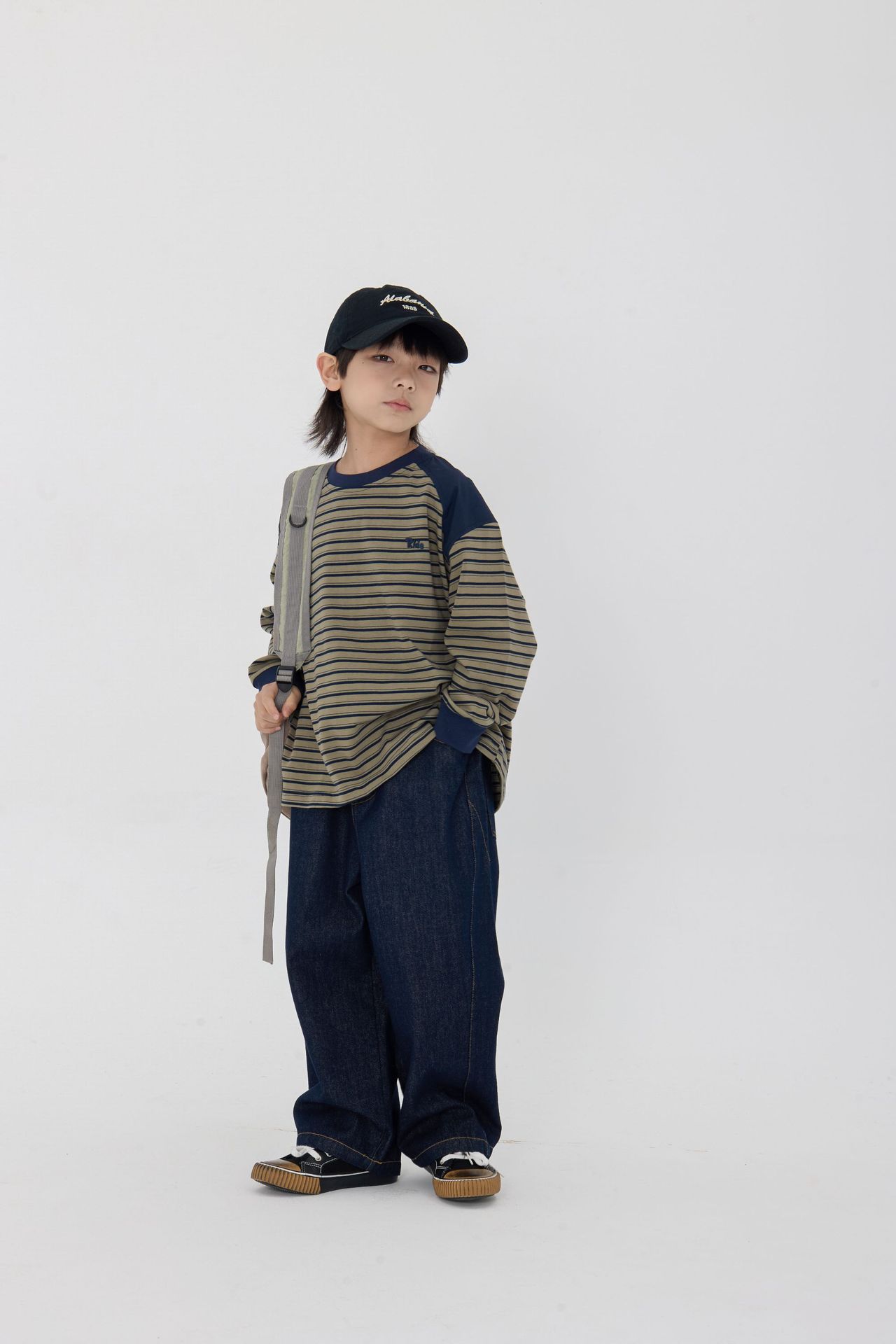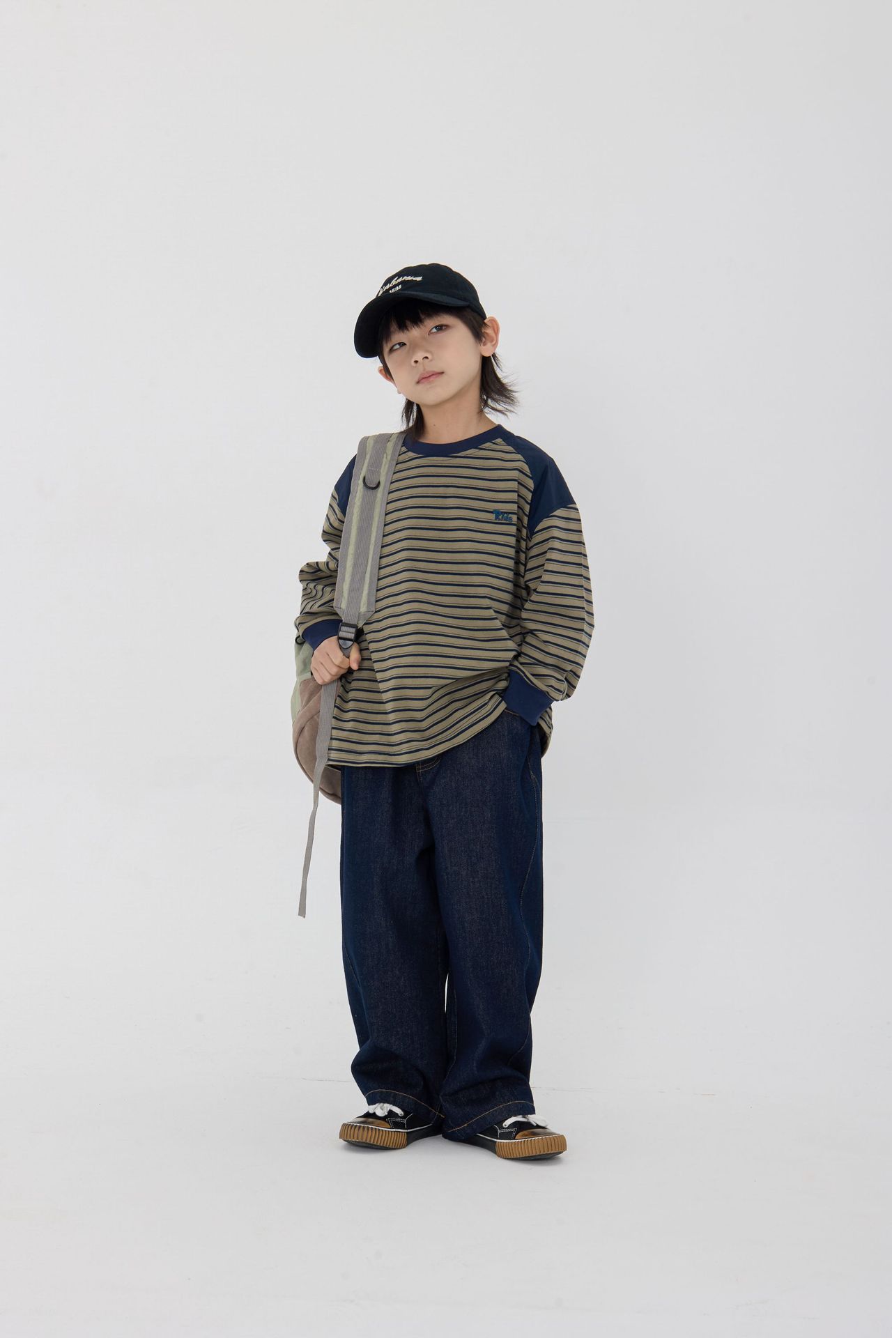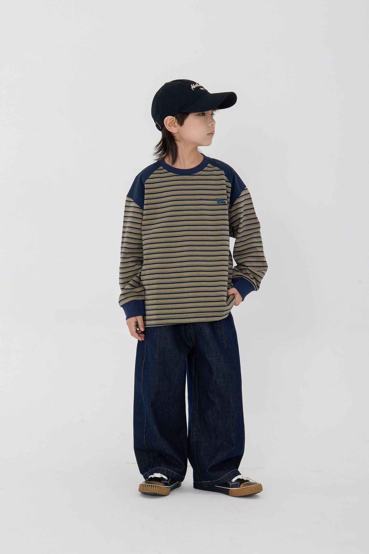 반품 및 교환 불가 특징 3D 엠보싱 어린이 스트라이프 티셔츠 어린이 스트라이프 배색 긴팔 티셔츠스토어 가기