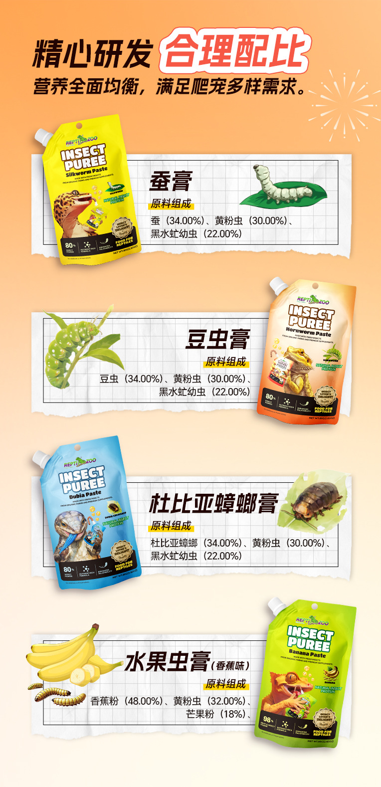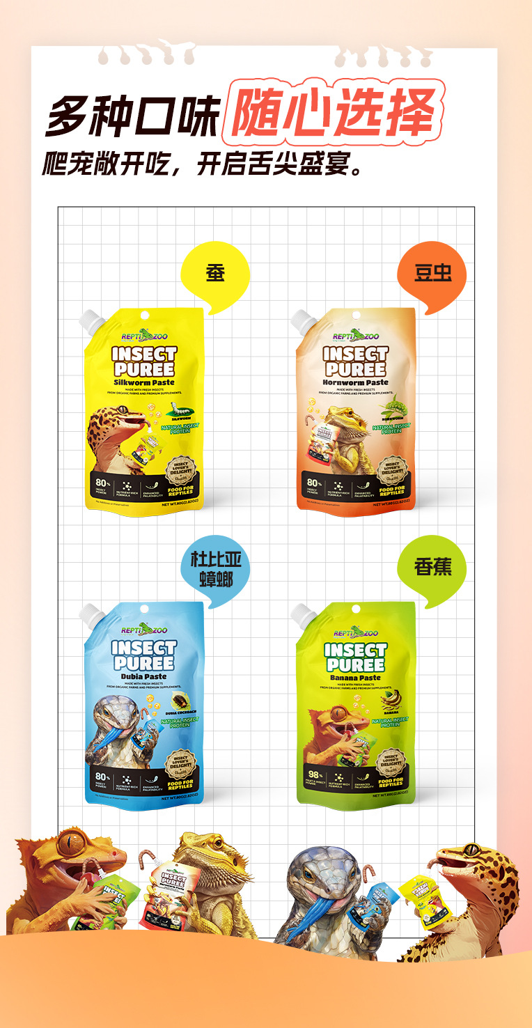 Reptizoo Ruipi 등반 애완 동물 사료 곤충 진흙 아이 엘리아 뿔 과일 진흙 사자갈기 블루 사료 Shougong Bug Mud