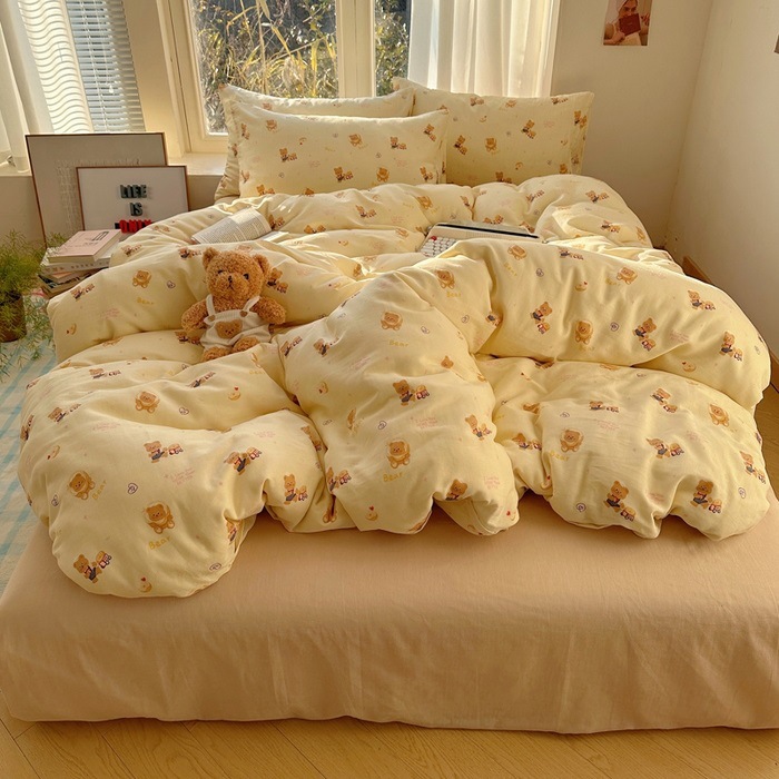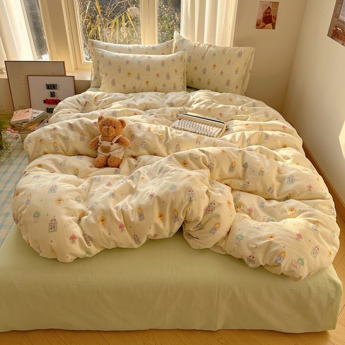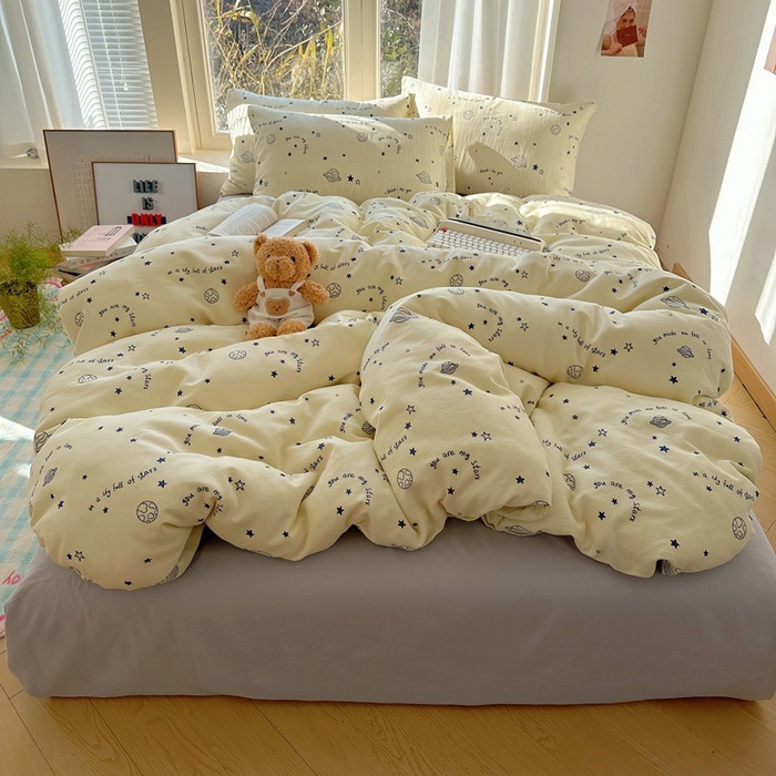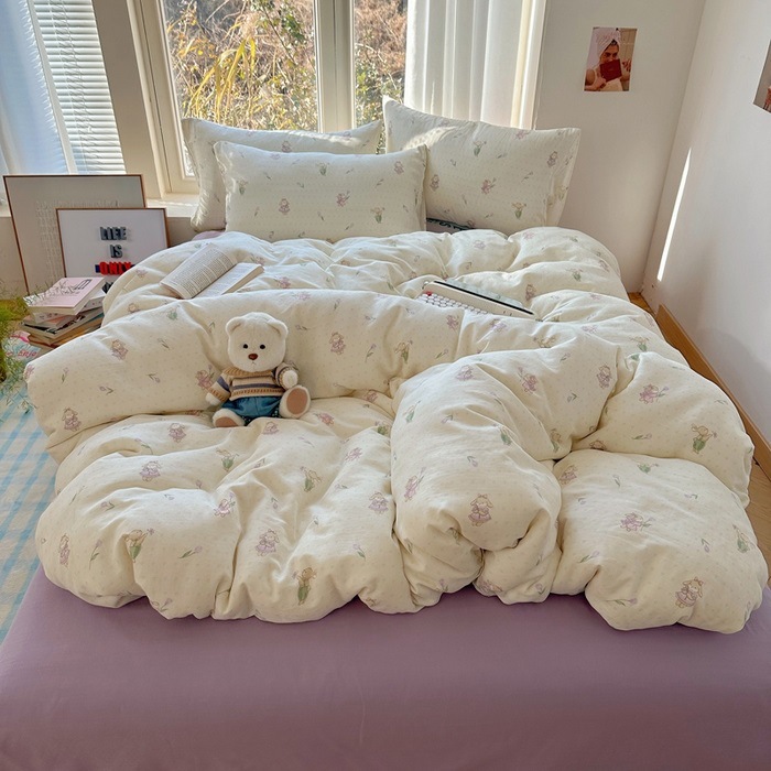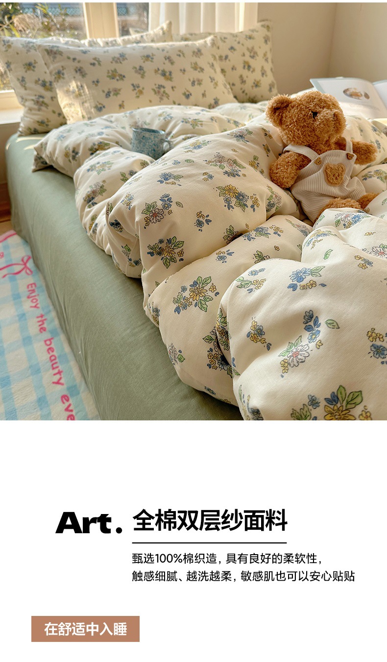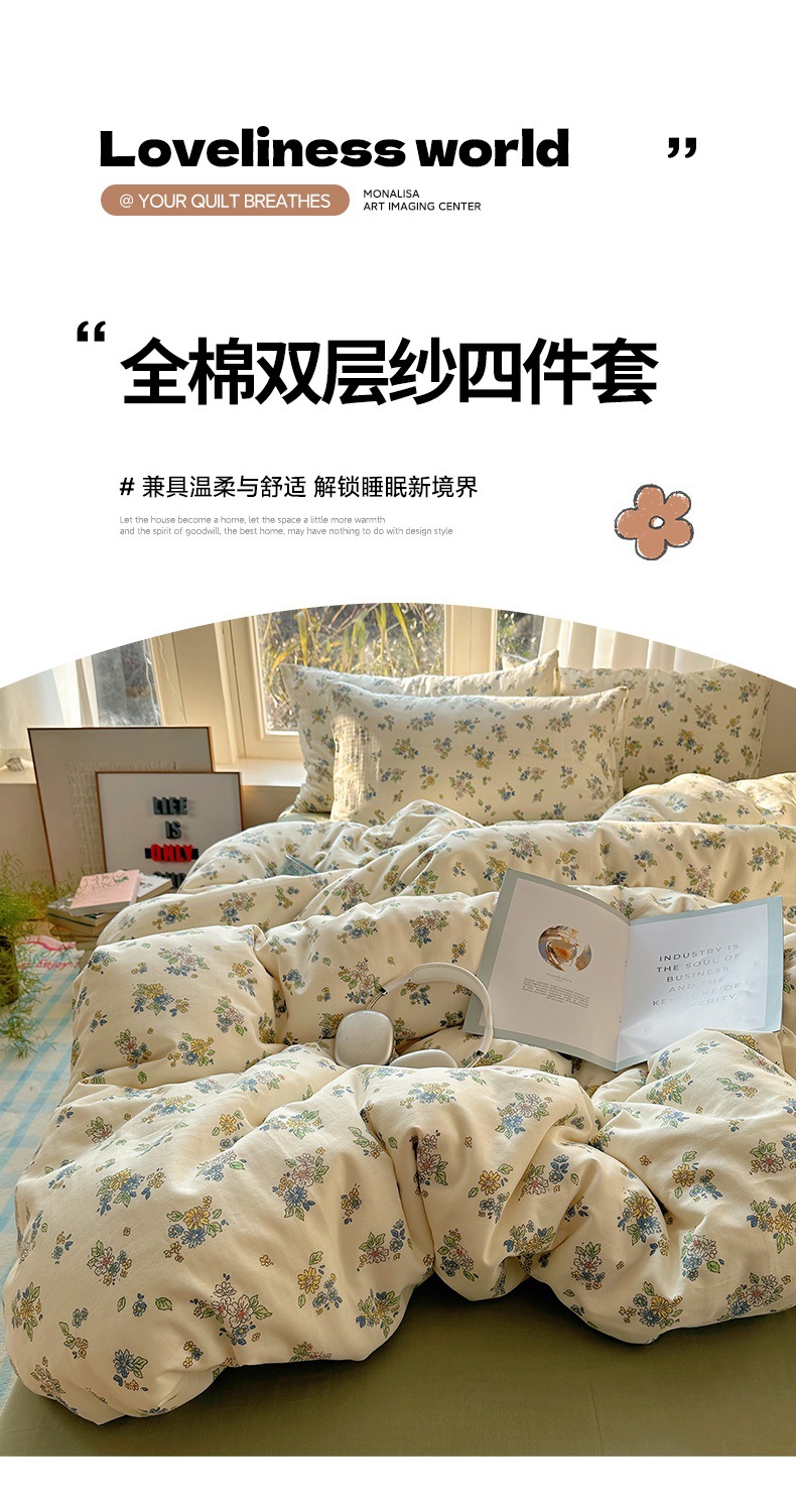 2025 새로운 면화 이중 층 실 커버 침대 시트 침구 4 종 세트스토어 가기
