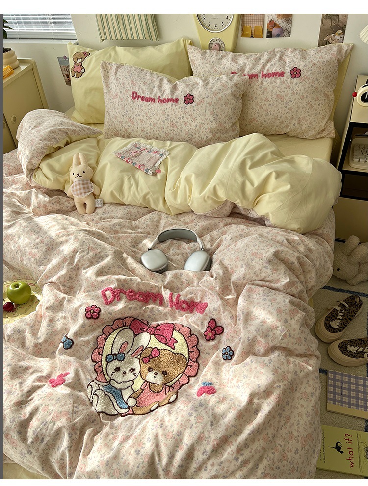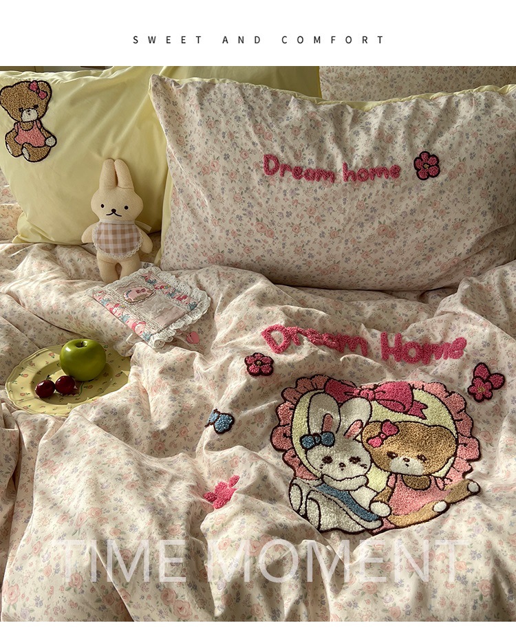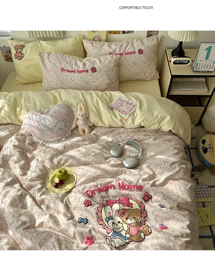 2025 새로운 귀여운 하트 둥지 타월 자수 4 피스 세트