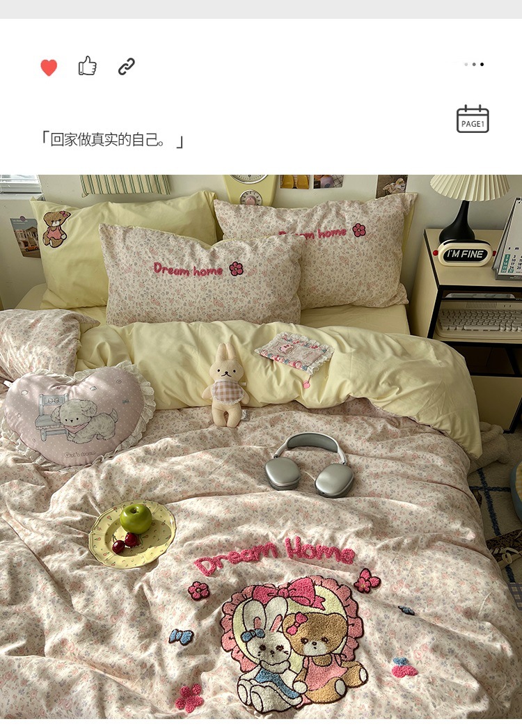 2025 새로운 귀여운 하트 둥지 타월 자수 4 피스 세트스토어 가기