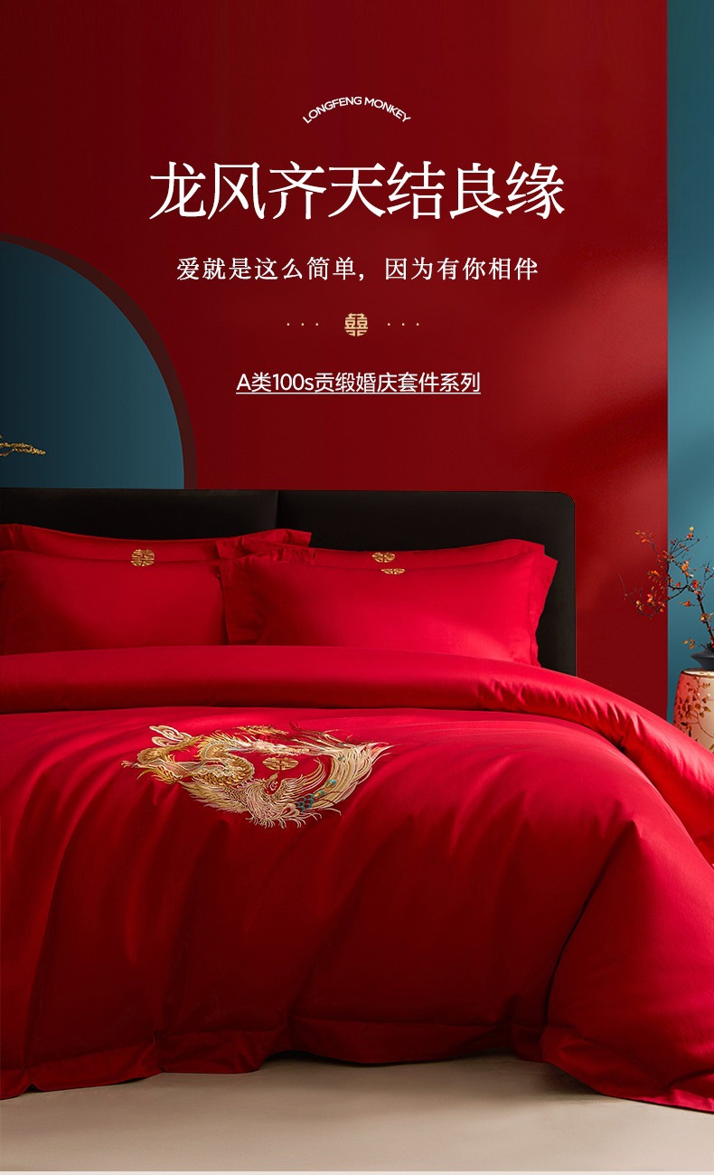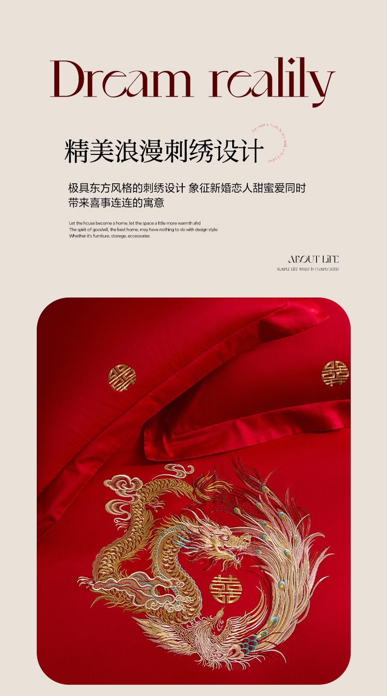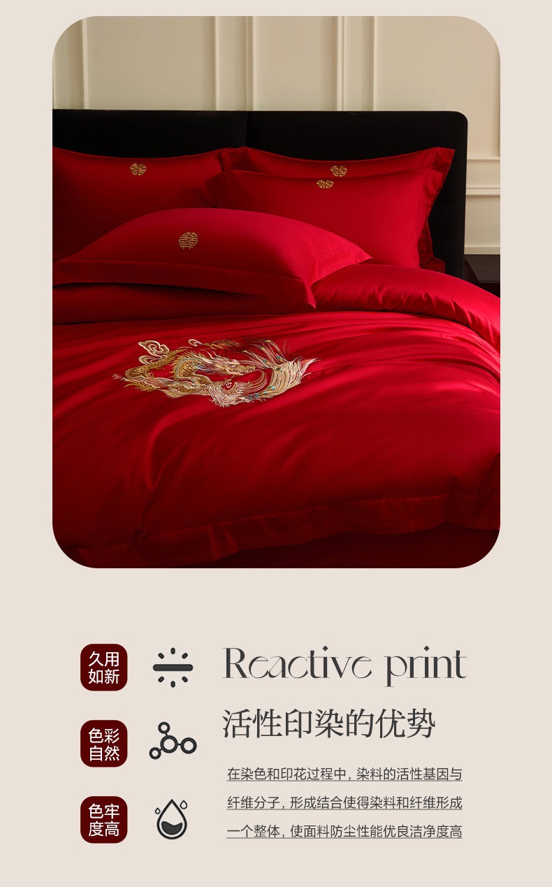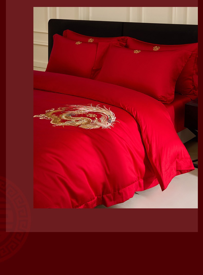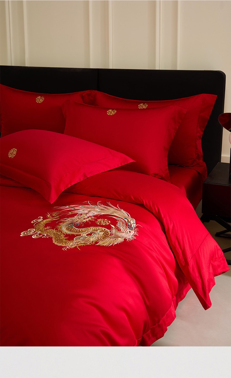 2025 새로운 클래스 웨딩 4 피스 축제 웨딩 드래곤과 피닉스 자수 퀼트 커버 퓨어 코튼