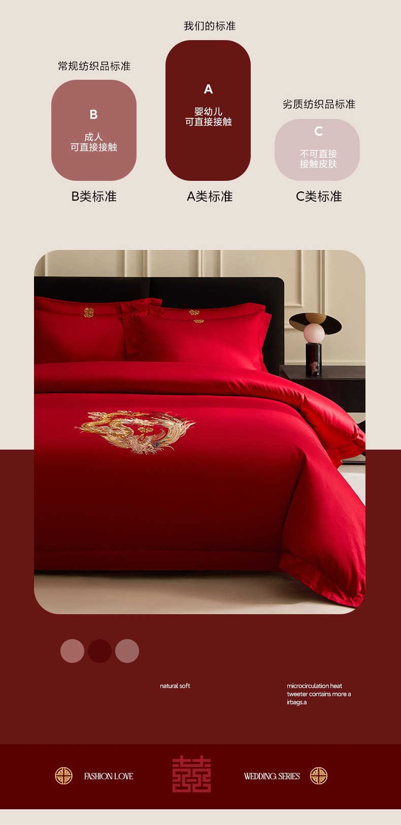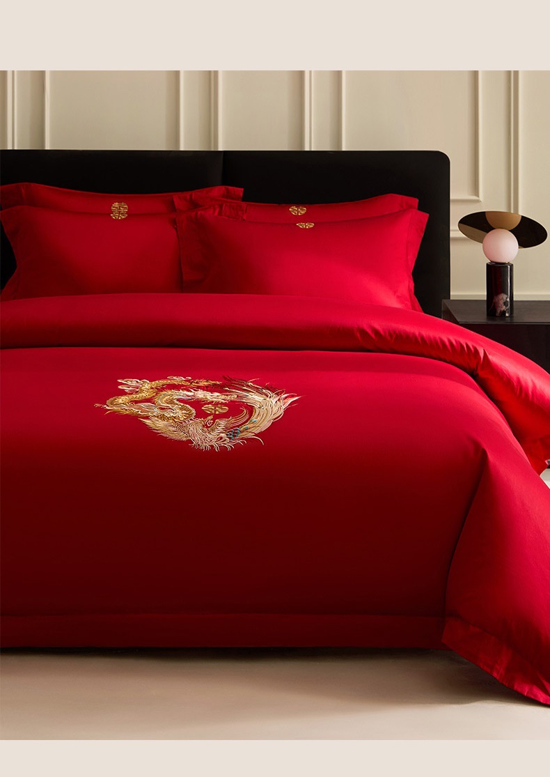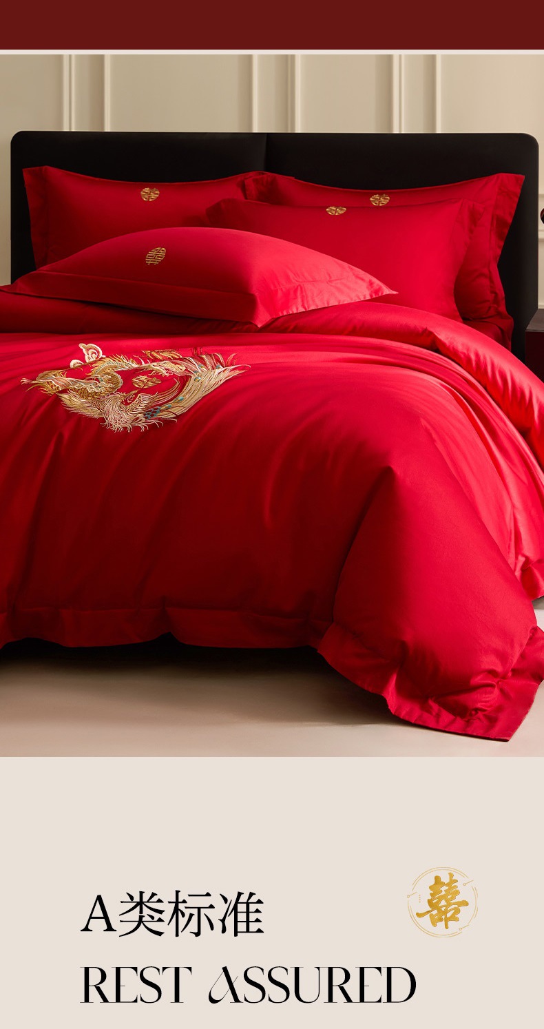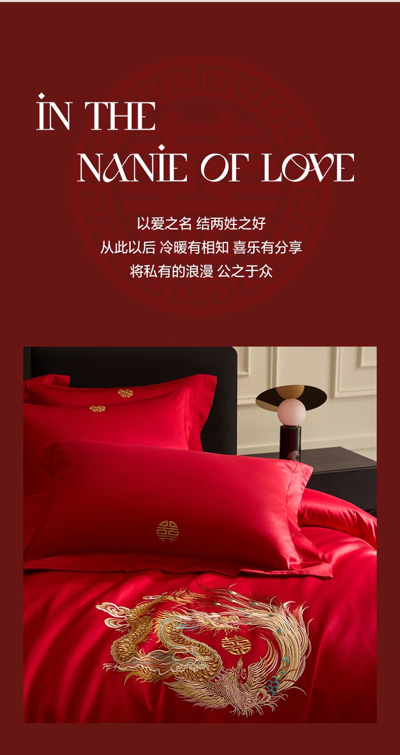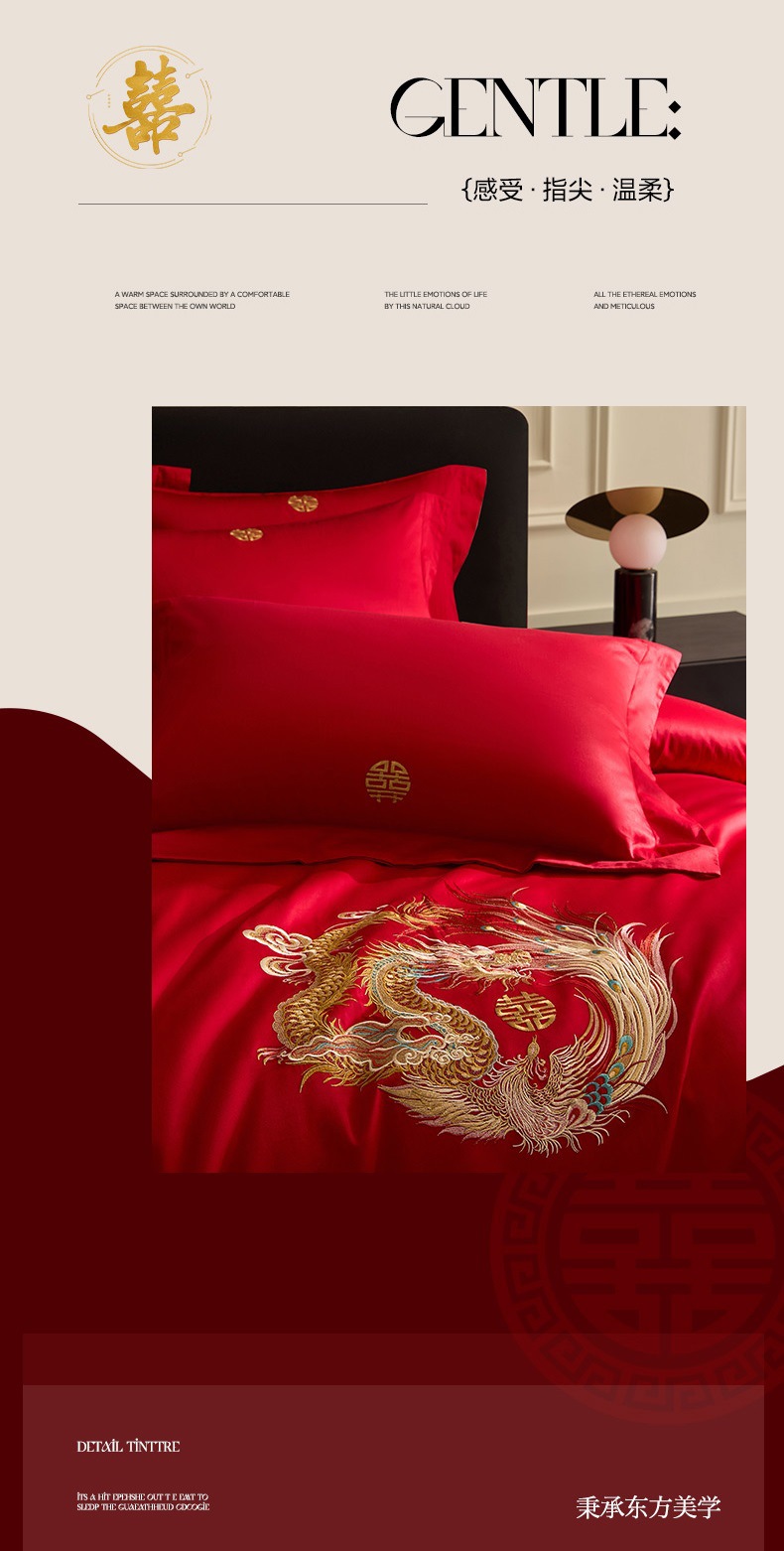 2025 새로운 클래스 웨딩 4 피스 축제 웨딩 드래곤과 피닉스 자수 퀼트 커버 퓨어 코튼