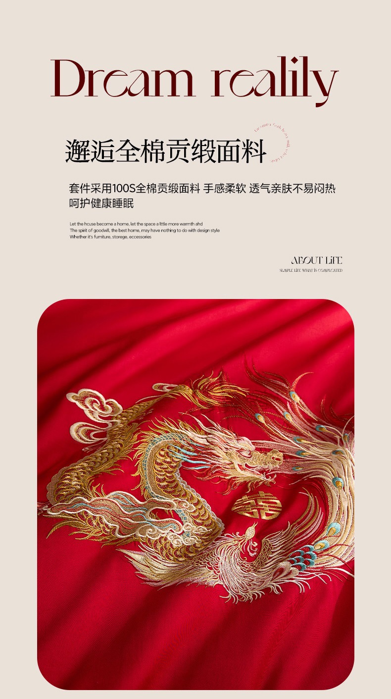 2025 새로운 클래스 웨딩 4 피스 축제 웨딩 드래곤과 피닉스 자수 퀼트 커버 퓨어 코튼스토어 가기