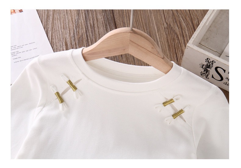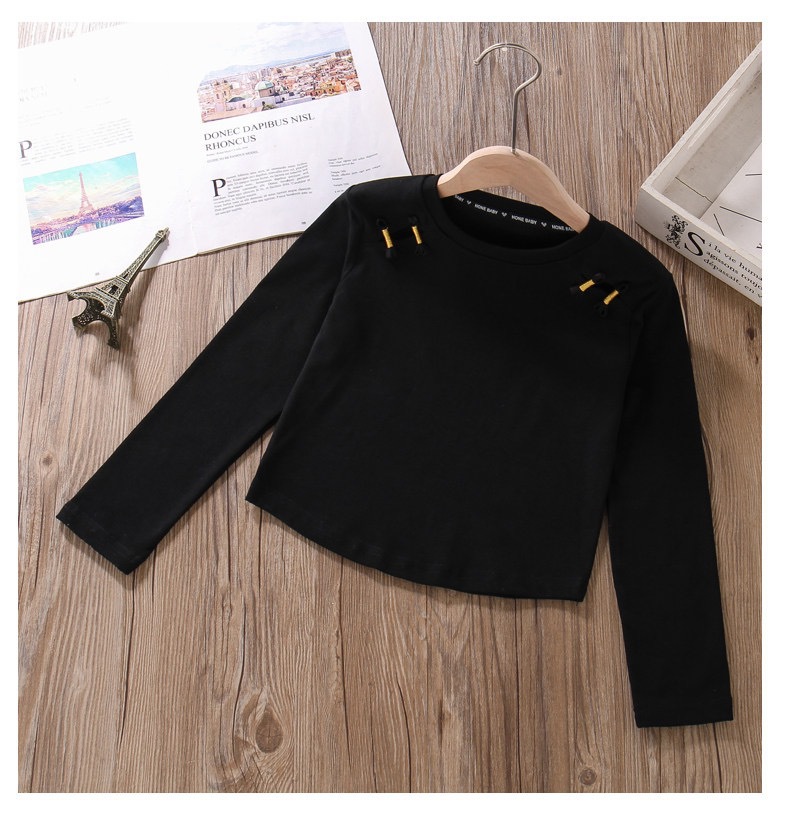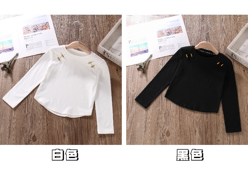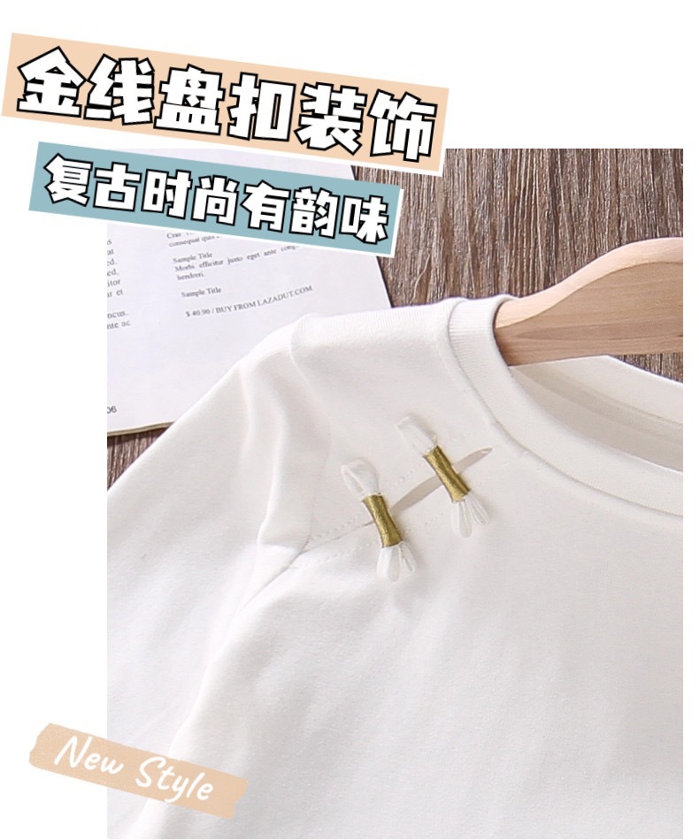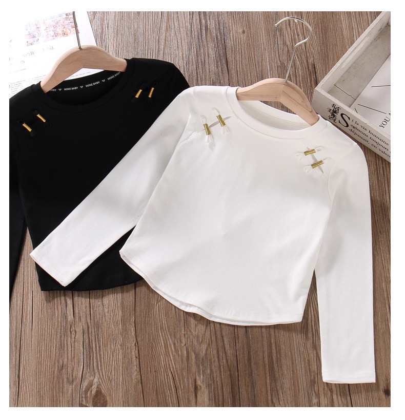 소녀들의 새로운 중국 스타일 탑 봄과 가을 국가 스타일 버클 긴팔 티셔츠 슬림핏 높은 허리 어린이 순면 흰색베이스 셔츠