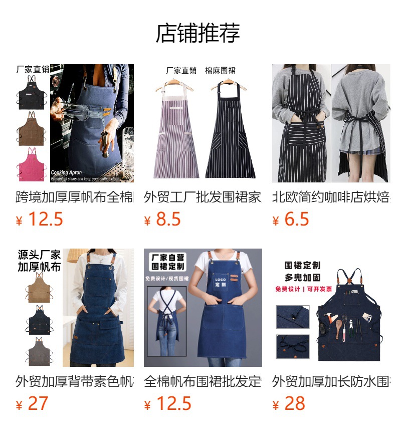 本厂是专业生产围裙20年的工厂,有着丰富的生产,定制经验,日产量8000+ 全套的生产设备,定制印字刺绣一站式服务 。 来样定制,代加工,一件代发,满足多样需求 跨境电商专属:opp包装,装箱,贴标等服务。 让您售后无忧,快速响应,贴心服务一路相伴。