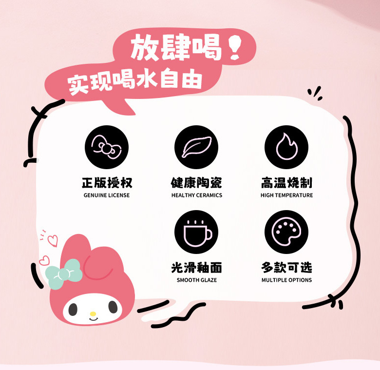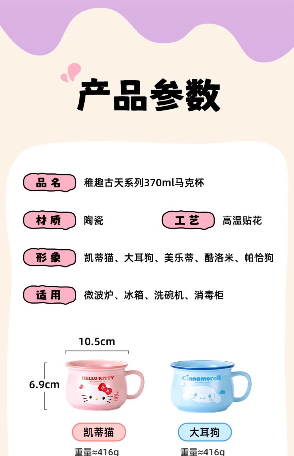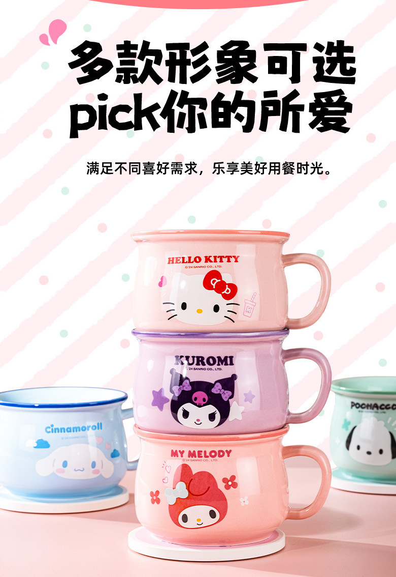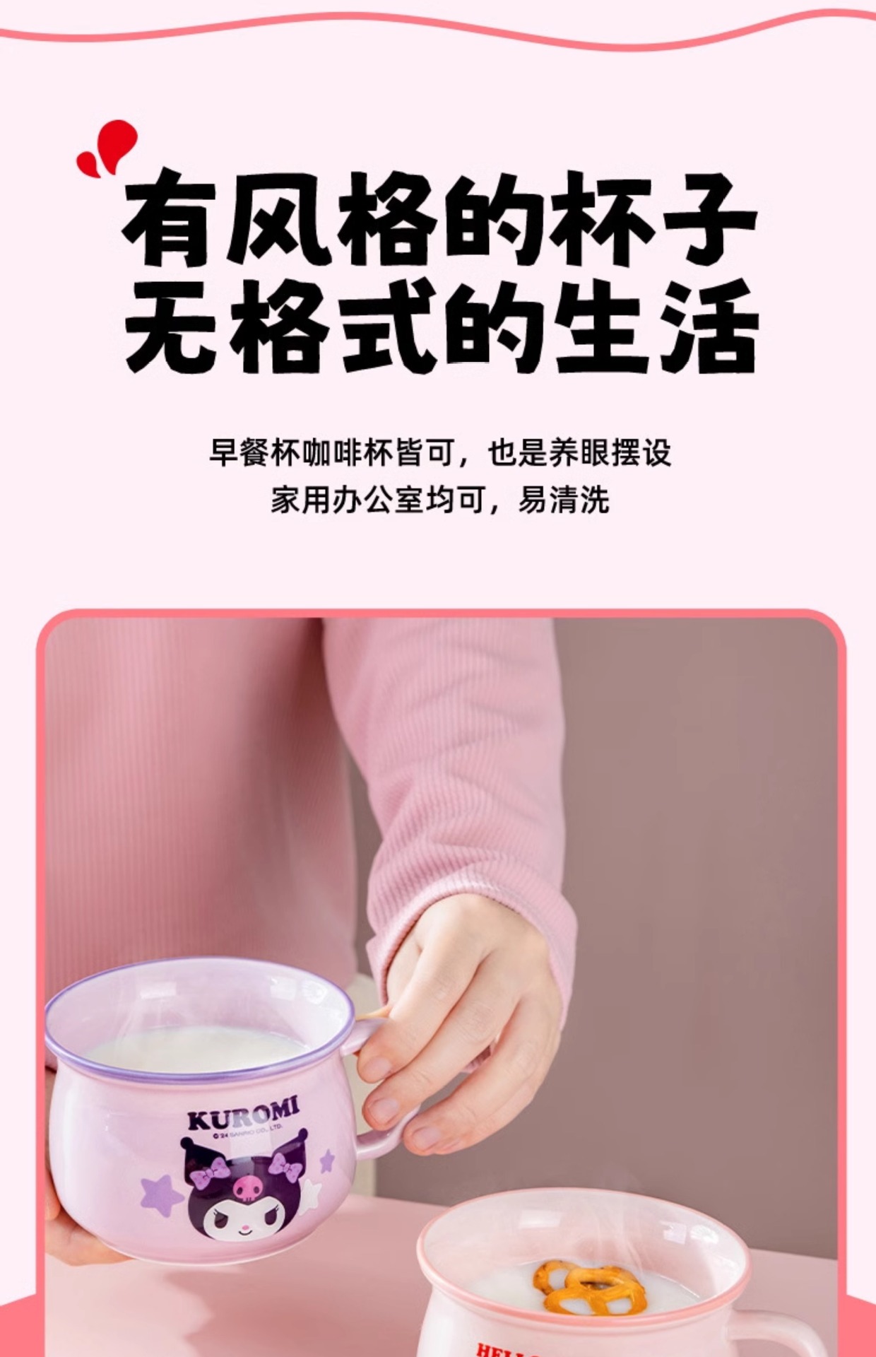 정품 산리오 세라믹 머그 아침 식사 컵 귀여운 우유 컵 높은 색 가치 주스 컵 만화 선물 컵스토어 가기