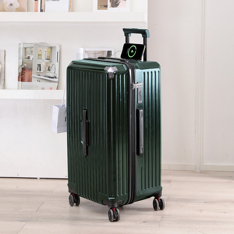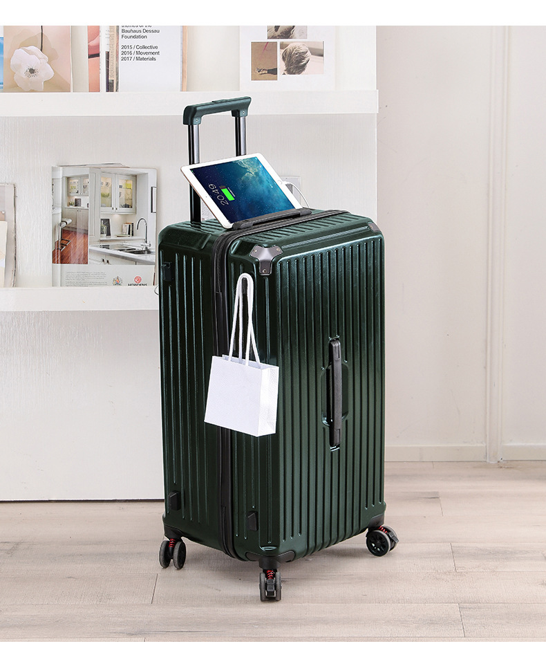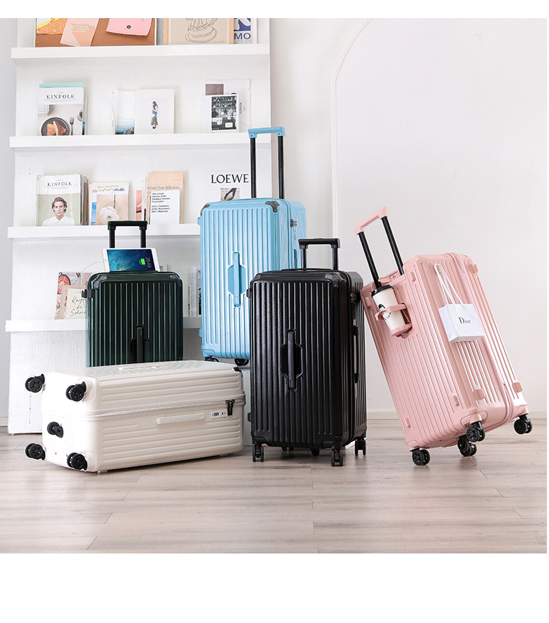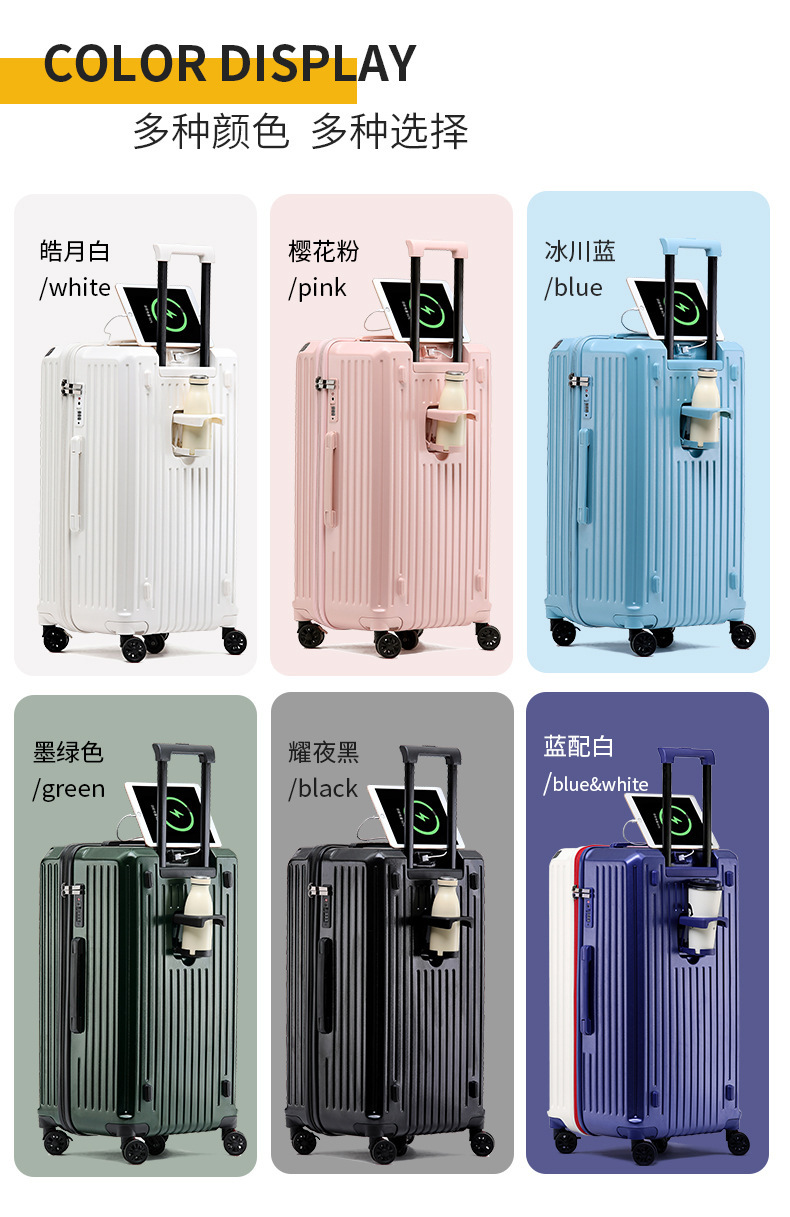 5 륜 고 가치 여성 유니버설 휠 브레이크 충격 흡수 남성용 여행 가방을 충전하는 컵 홀더가있는 대용량 지퍼 수하물