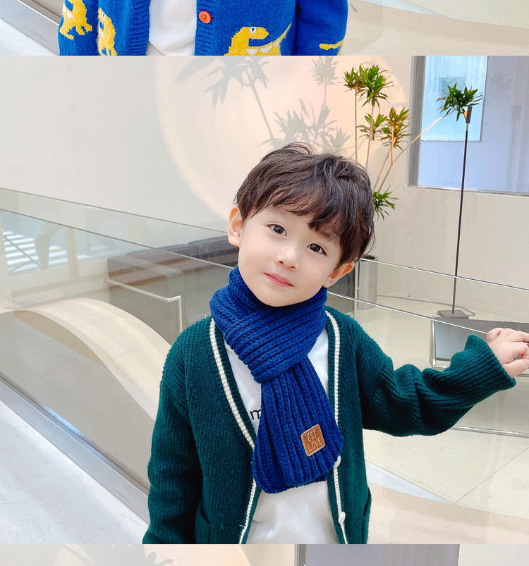 Ins 한국 스타일 어린이 니트 스카프 겨울 단색 따뜻한 양모 한국 소년 소녀를위한 아기 스카프