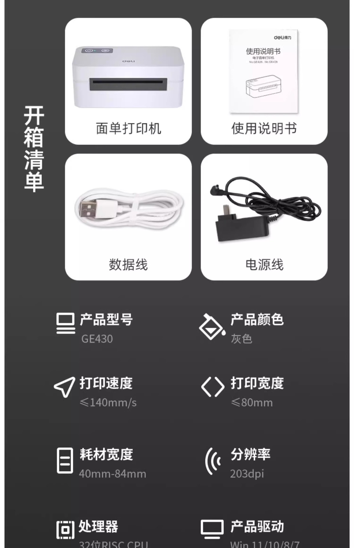 Deli GE430 익스프레스 프린터 휴대용 Taobao 전자 주문 단일 기계 상업용 열 블루투스 자체 접착스토어 가기