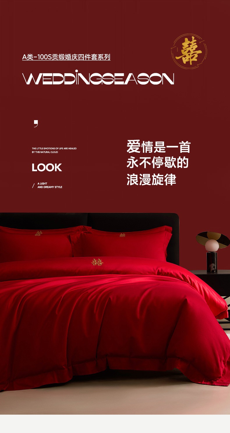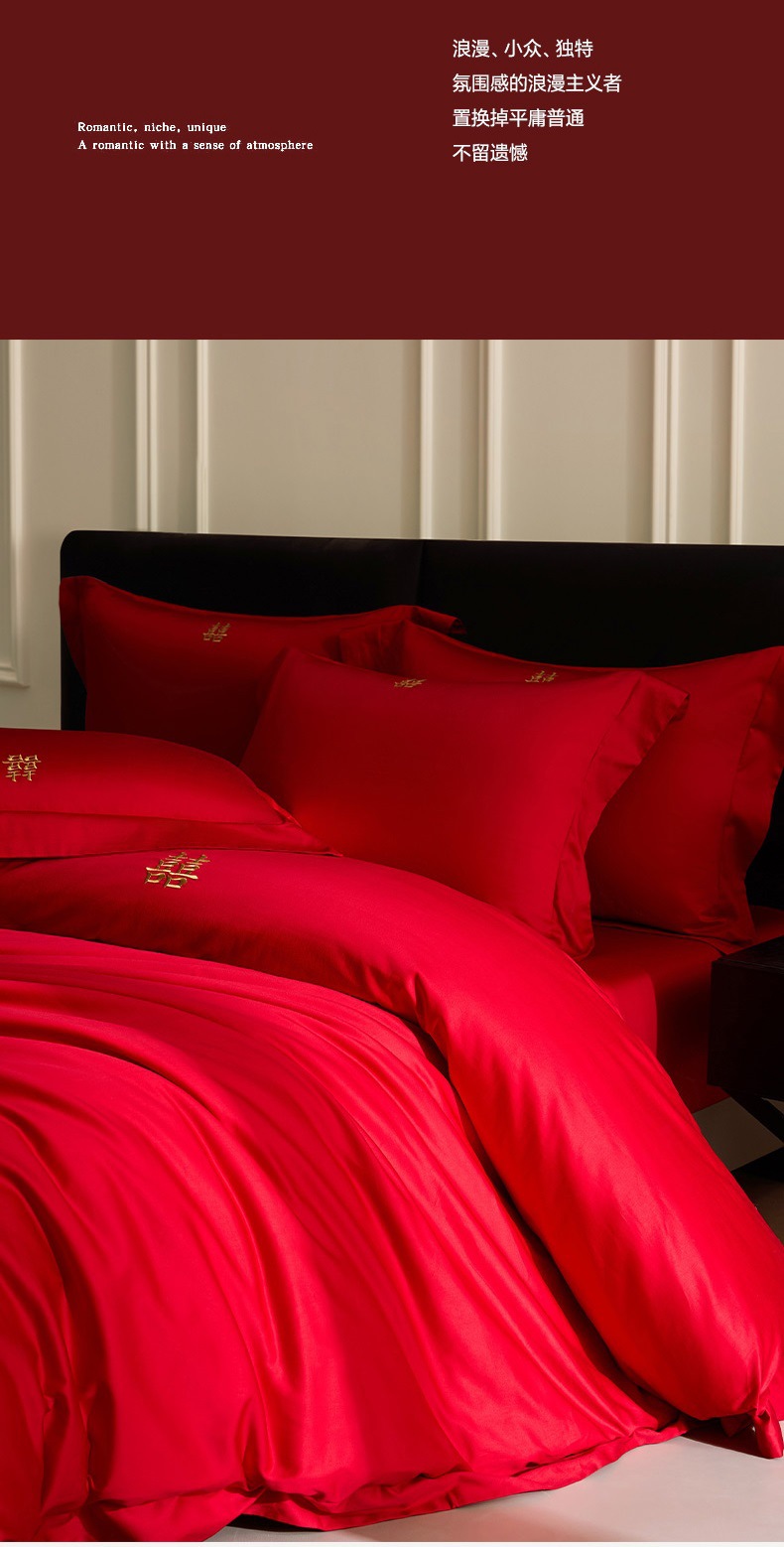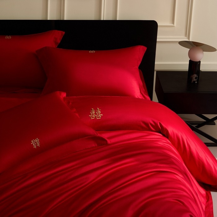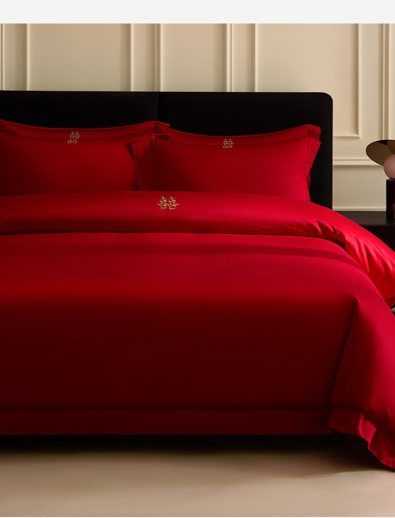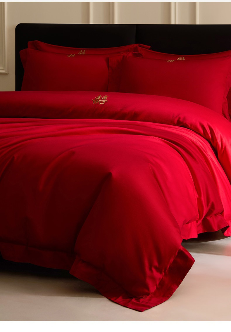 2025 새로운 100 년대 신장 긴 스테이플 코튼 웨딩 4 피스 세트 코튼은 빨간색