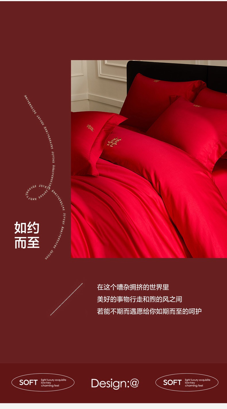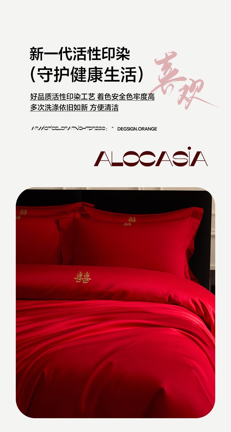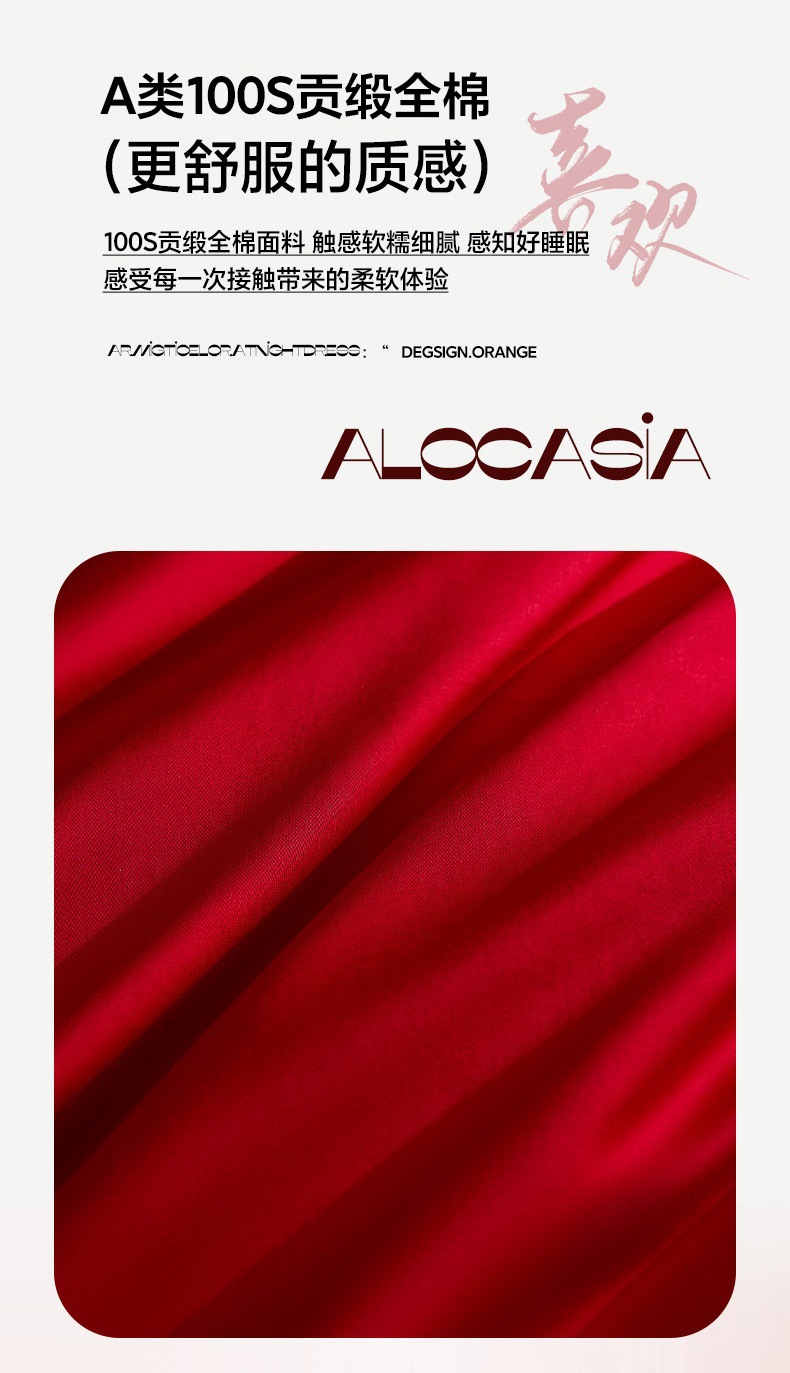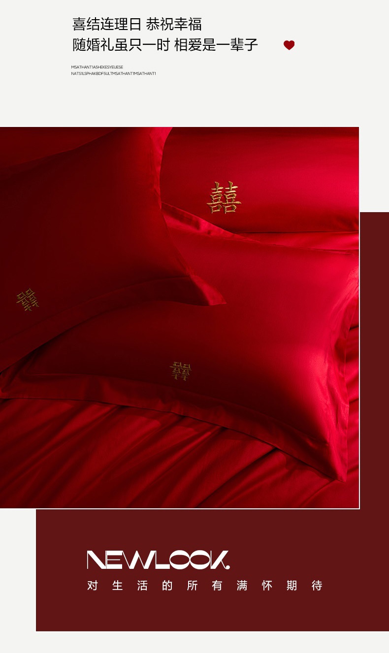 2025 새로운 100 년대 신장 긴 스테이플 코튼 웨딩 4 피스 세트 코튼은 빨간색