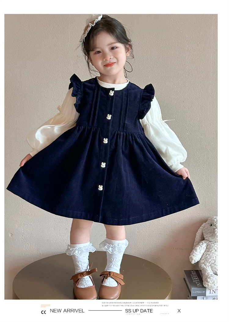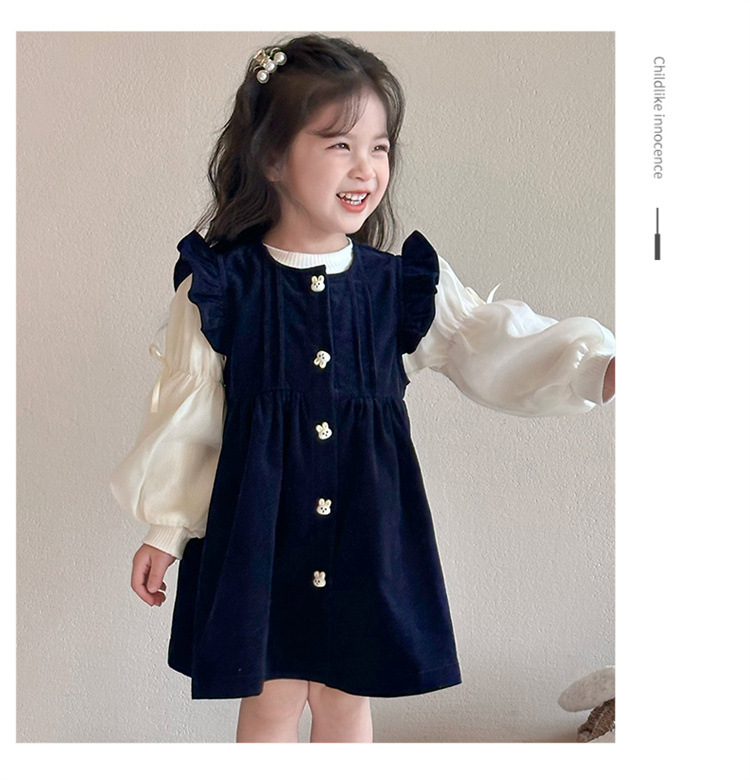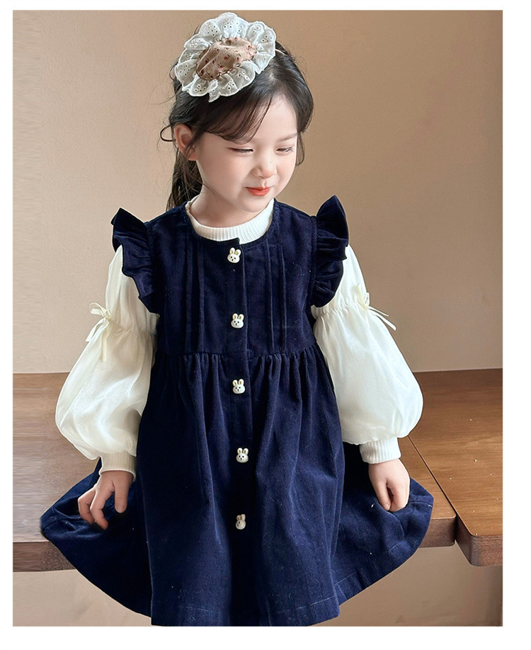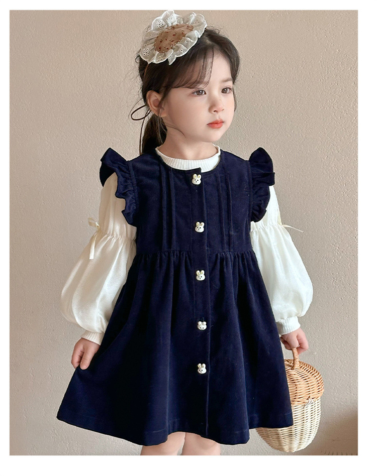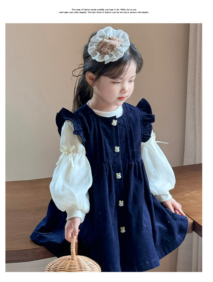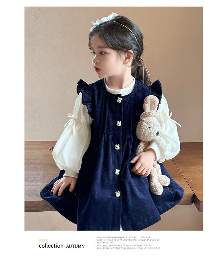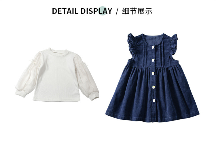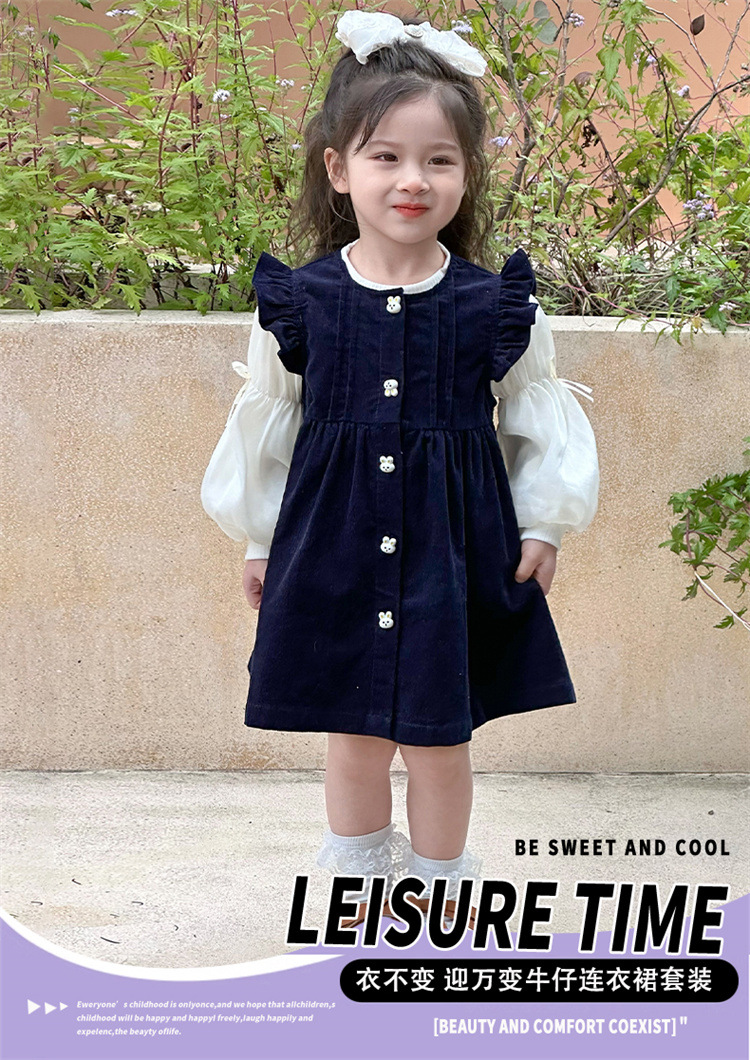여자 데님 플라잉 슬리브 베이스 셔츠 캐주얼 세트 2025 새로운 스타일 작은 소녀 토끼 스커트 투피스 세트스토어 가기