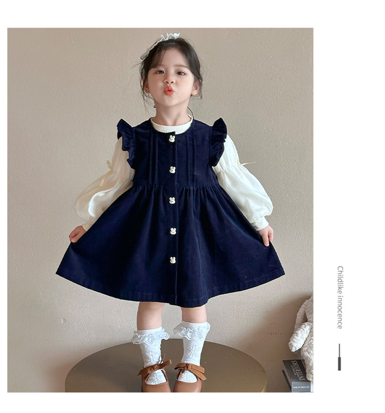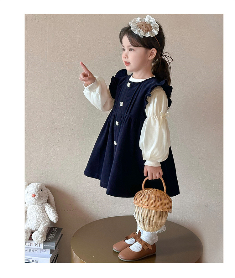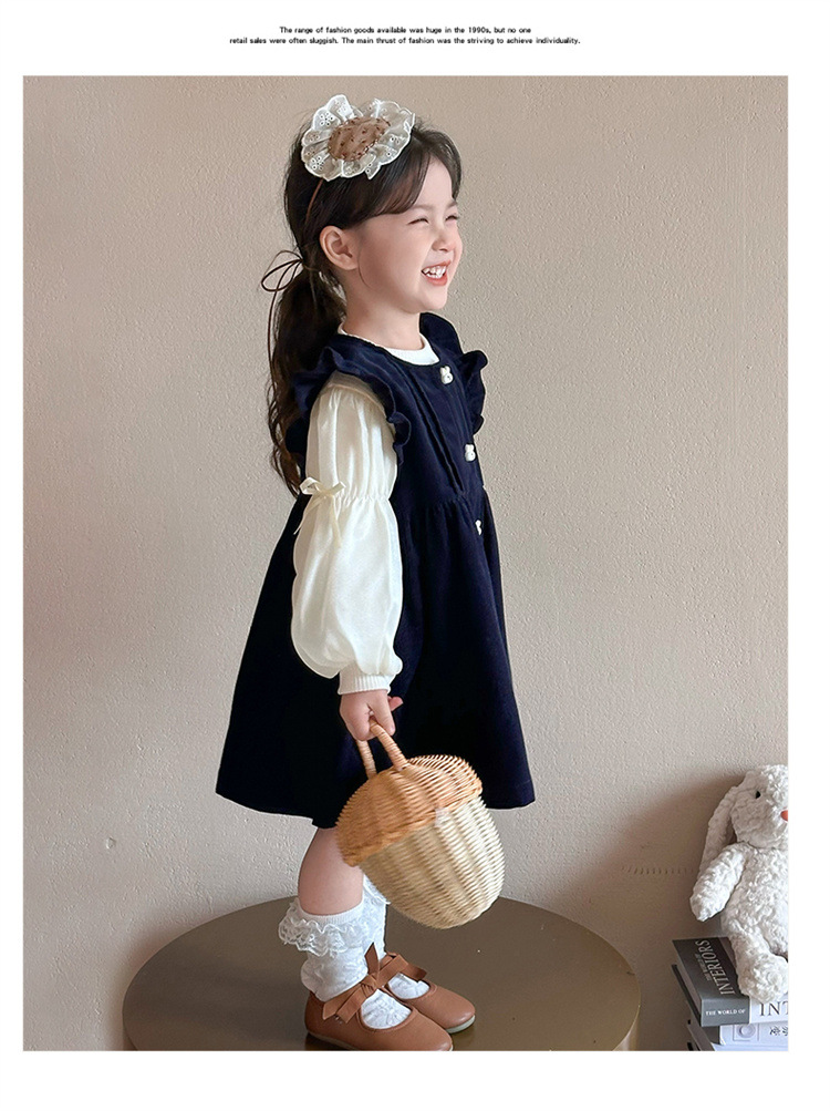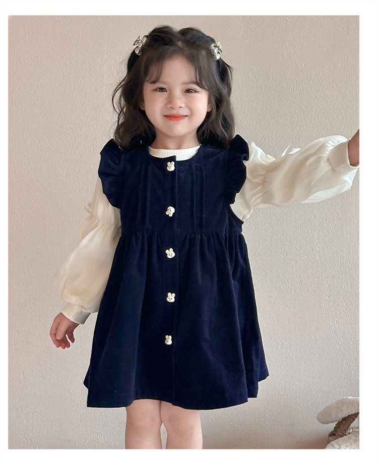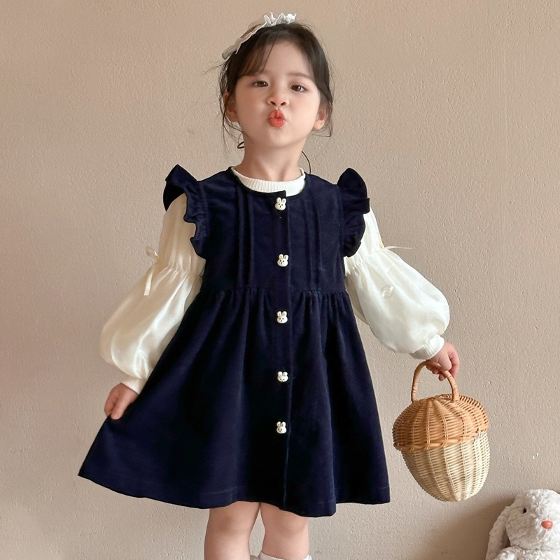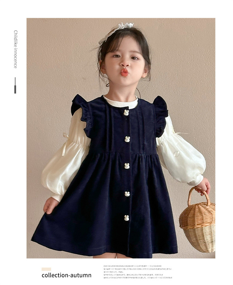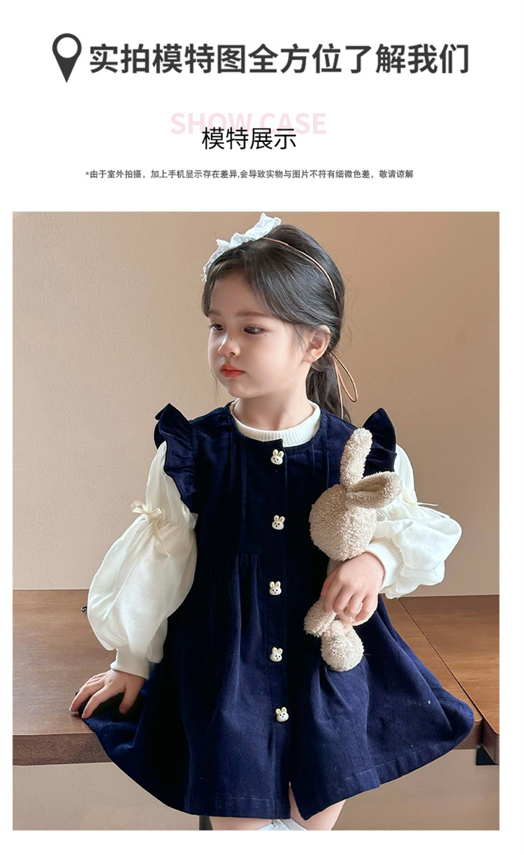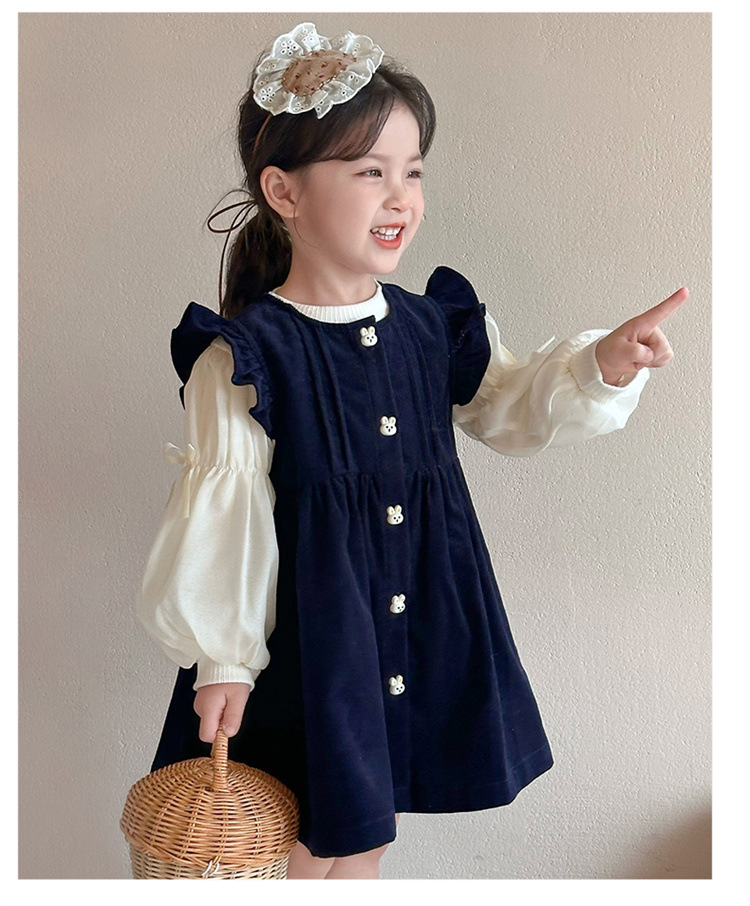 여자 데님 플라잉 슬리브 베이스 셔츠 캐주얼 세트 2025 새로운 스타일 작은 소녀 토끼 스커트 투피스 세트스토어 가기