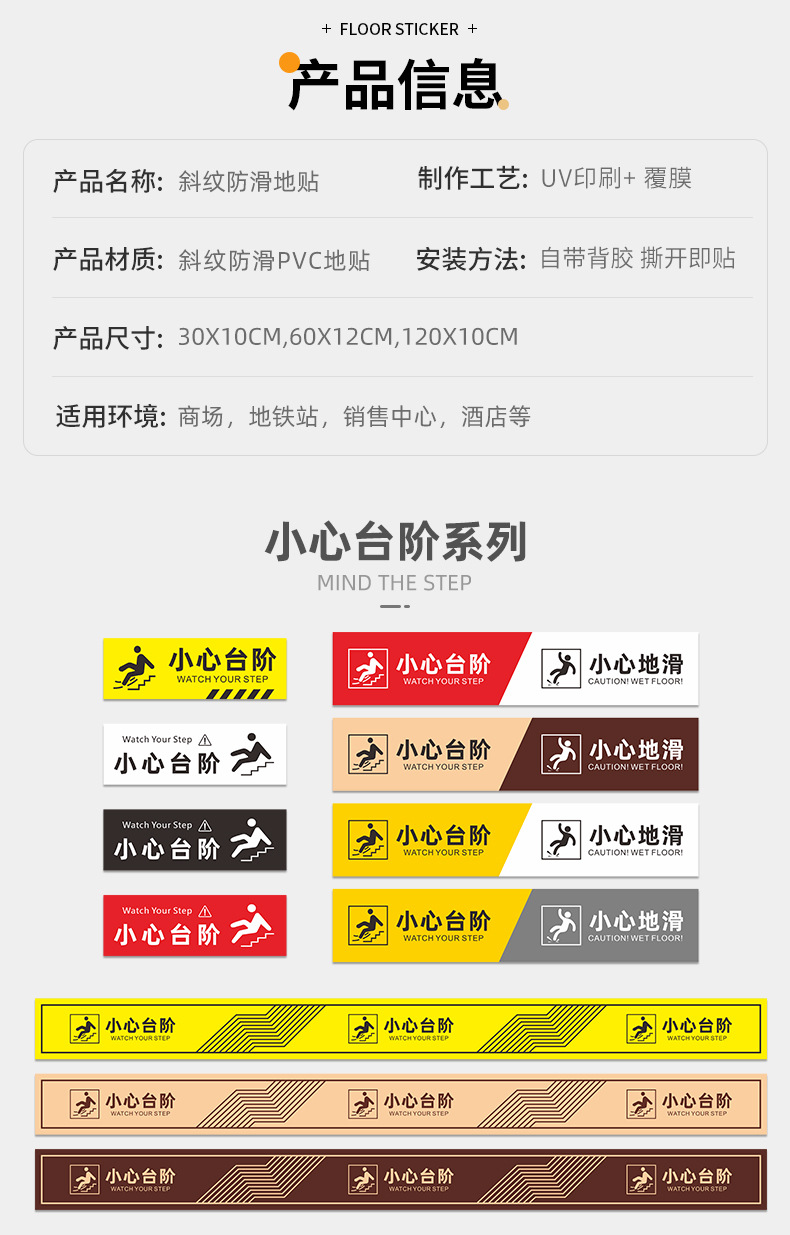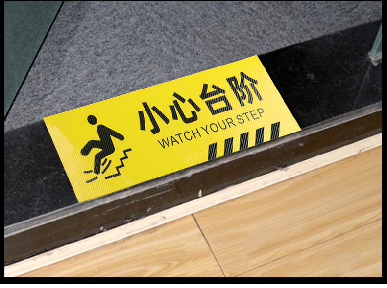 조심스럽게 단계에 붙이십시오. 조심스러운 유리 경고 스티커. PVC 내마모성 트윌. 미끄럼 방지. 조심스럽게 슬라이드 경고 스티커.