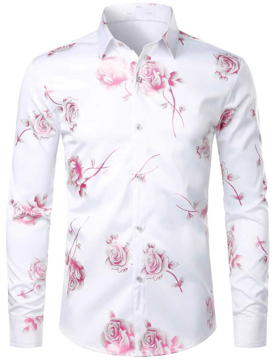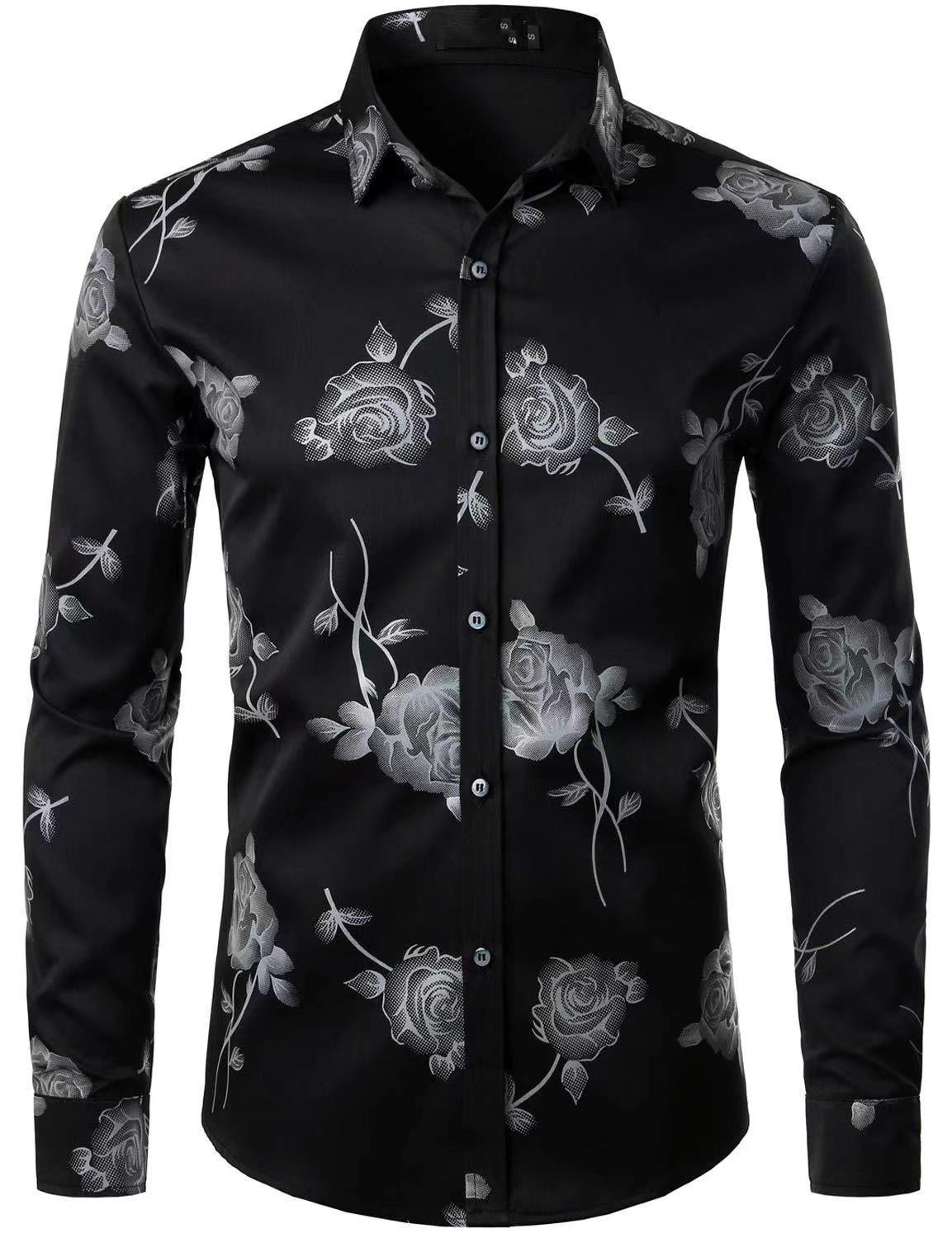 국경 간 간단한 남성 긴 소매 셔츠 하와이 셔츠 봄과 가을 3D 디지털 인쇄 꽃 탑 외부 착용스토어 가기
