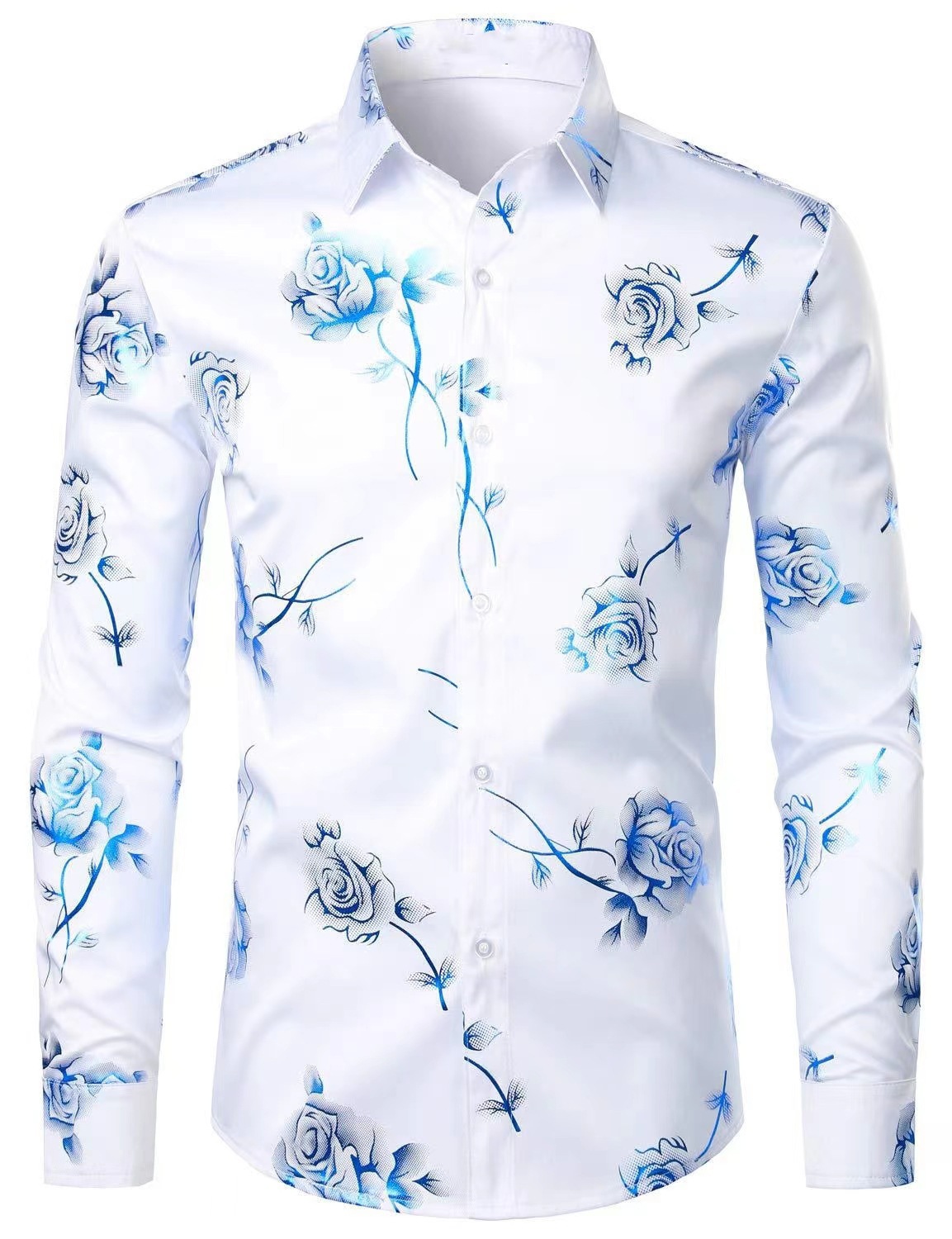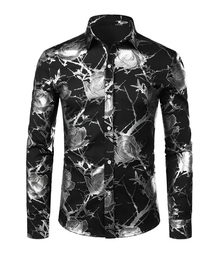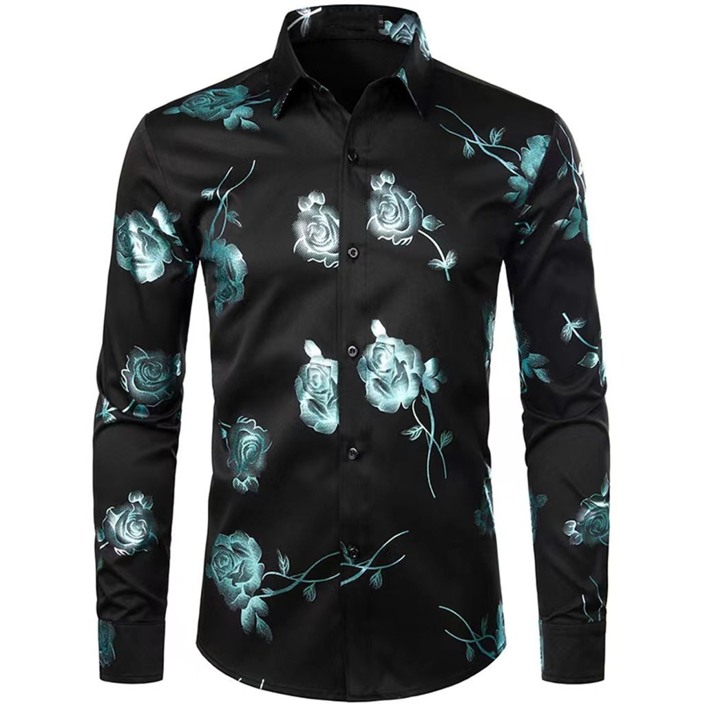 국경 간 간단한 남성 긴 소매 셔츠 하와이 셔츠 봄과 가을 3D 디지털 인쇄 꽃 탑 외부 착용