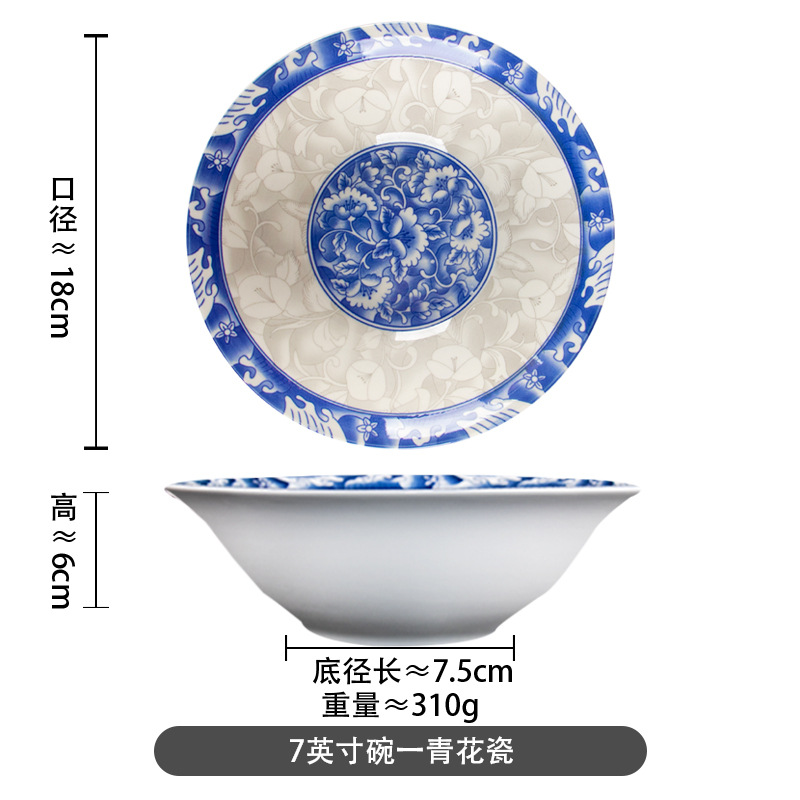 파란색과 흰색 도자기 그릇 가정용 수프 그릇 국수 그릇 큰 수프 그릇 식사 그릇 높은 아름다움 가치 세라믹 상업용 식기 국수 그릇스토어 가기